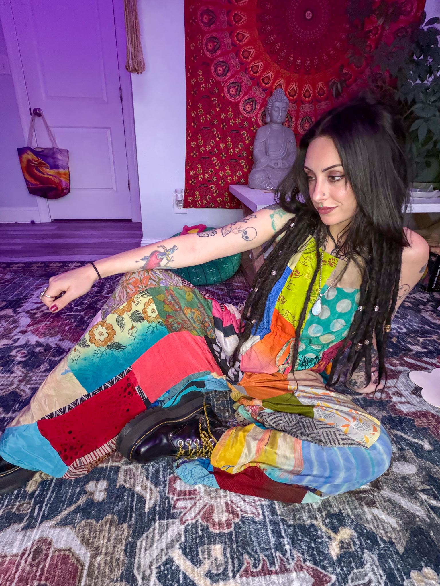I ADORE my Love🩷Protect🩷Sustain kantha brown tie- dye pants! They are so comfortable and cute! They bring me joy and as you can see, Juniper, loves them too! I have three pairs and each pair makes me happy when I wear them! People stop me to tell me how cute they are, and I always show interested them how they can be worn inside-out. It brings me joy to share the love with others. My pants are wearable art!