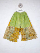 Bottom silk frills pants green and yellow