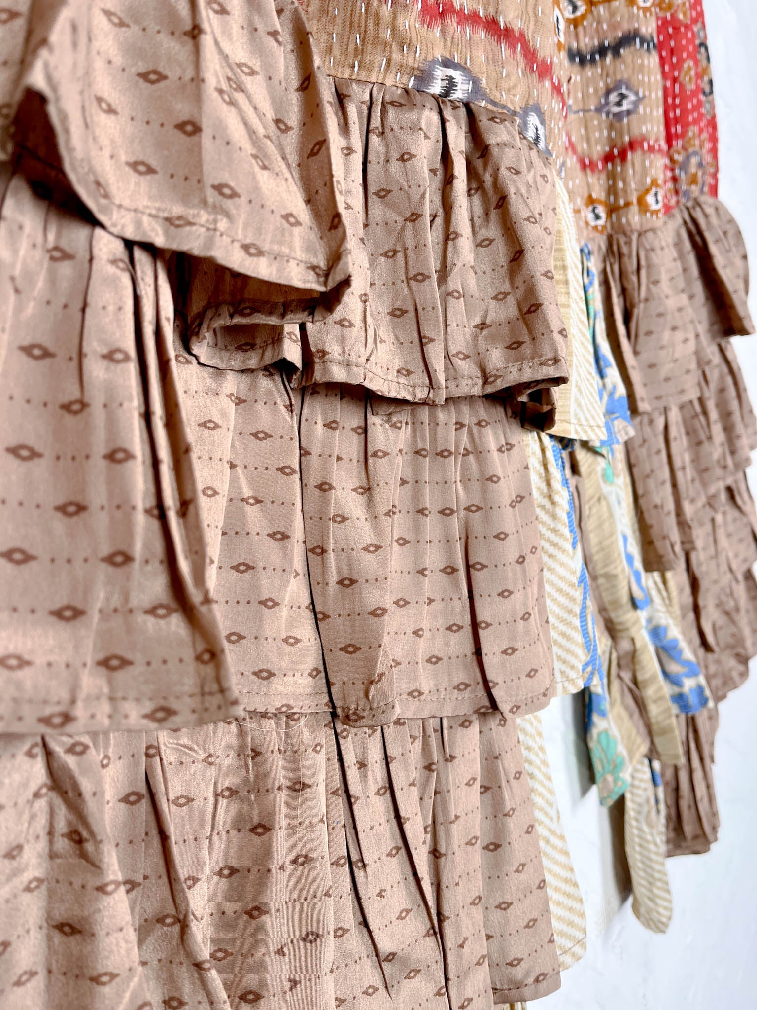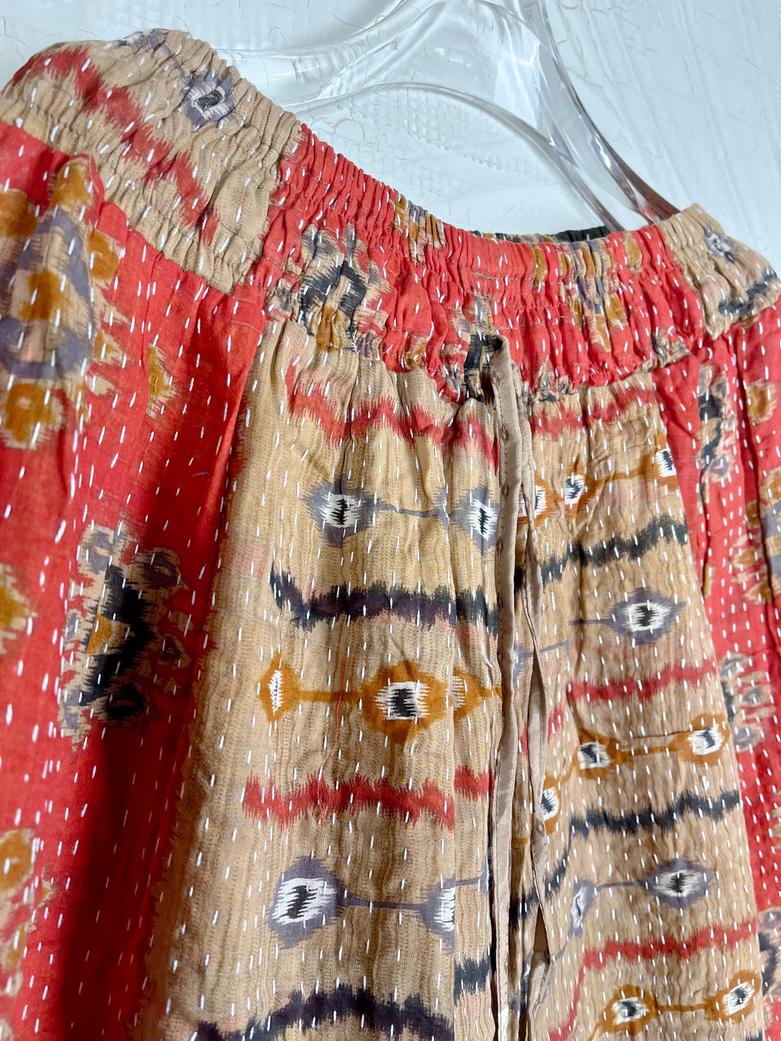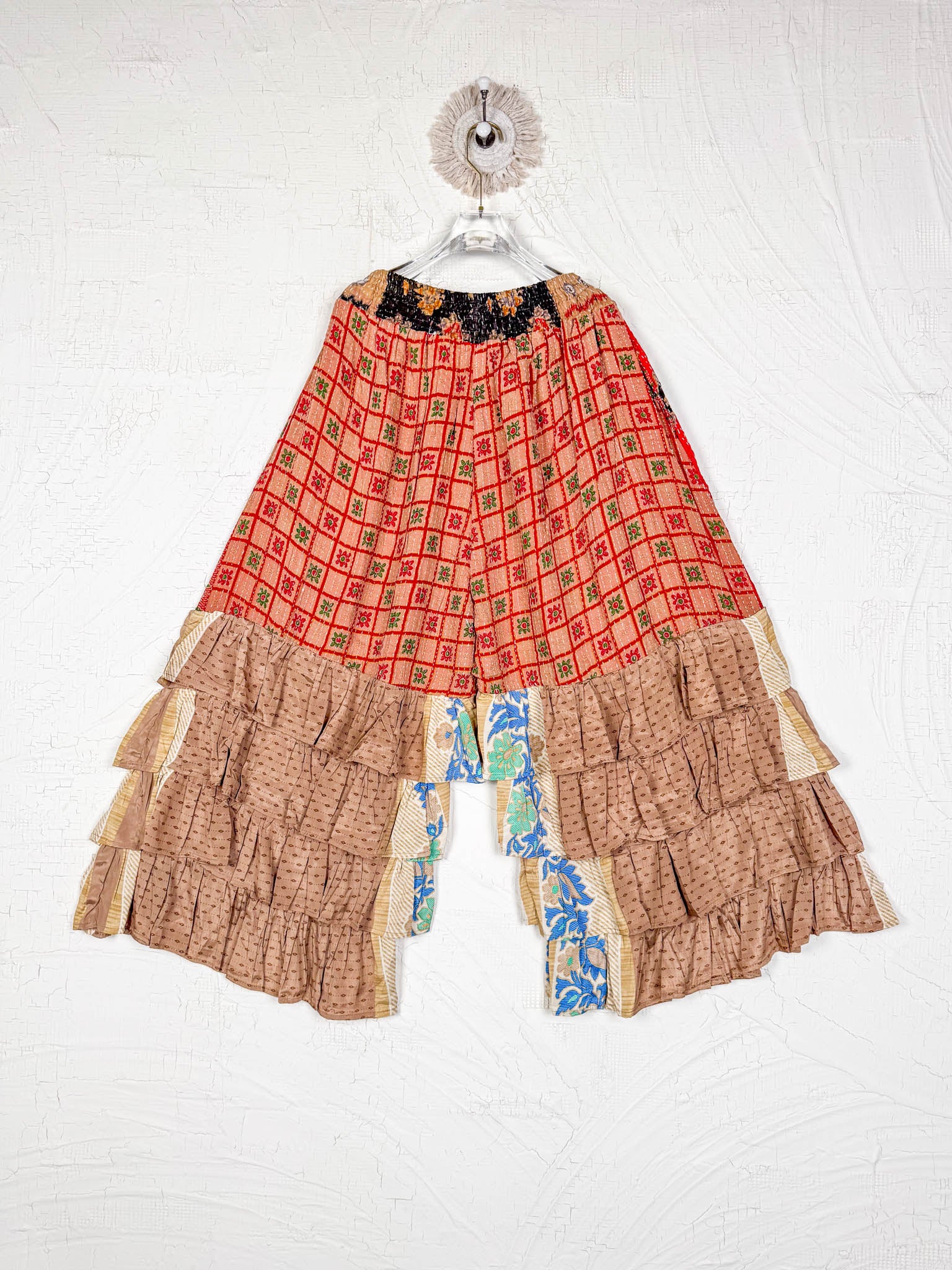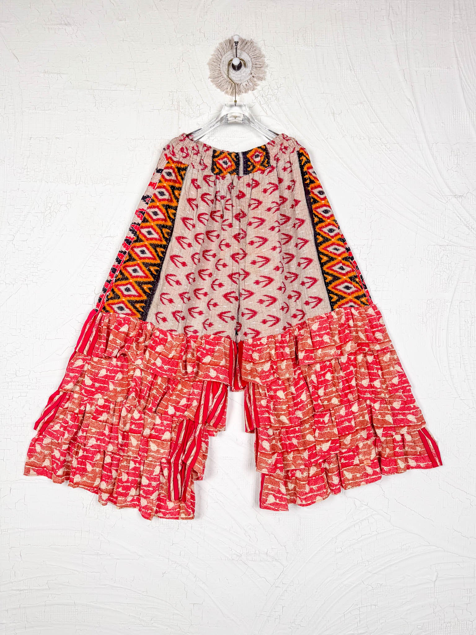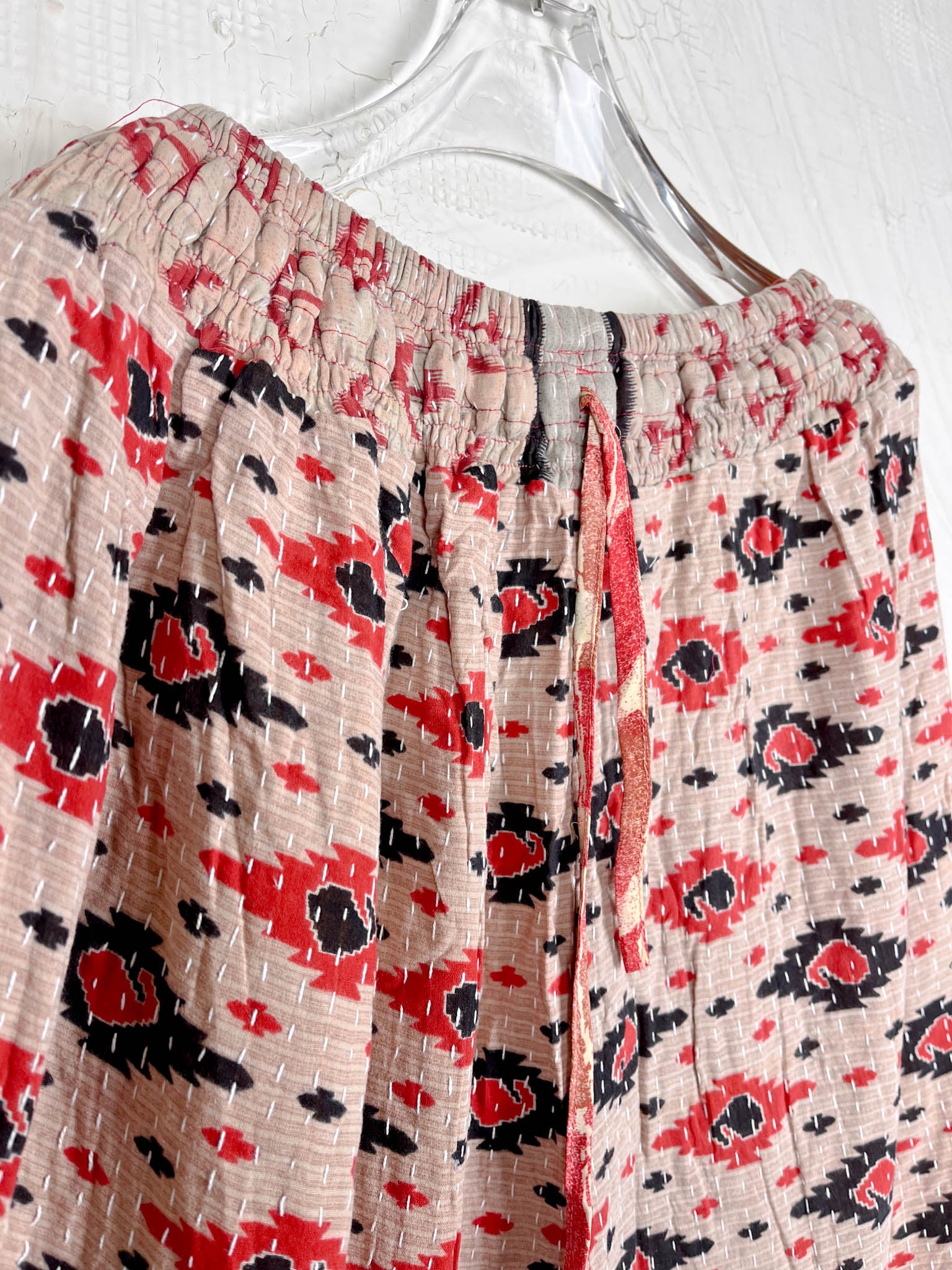 Designed for movement, comfort, and effortless style, our bottoms are more than just wardrobe essentials—they're wearable art. Handcrafted from pre-loved textiles, each pair of pants and shorts tells a unique story through intricate Kantha stitching and bold patchwork patterns.