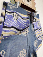 With the unique wrap style, they offer a perfect, adjustable fit that flatters every shape and size, secured with a stylish tie belt. The delightful combination of different prints and patchwork creates a fresh and playful look, ready for sunny adventures. Available in three sizes, these shorts are a celebration of individuality and joyful style