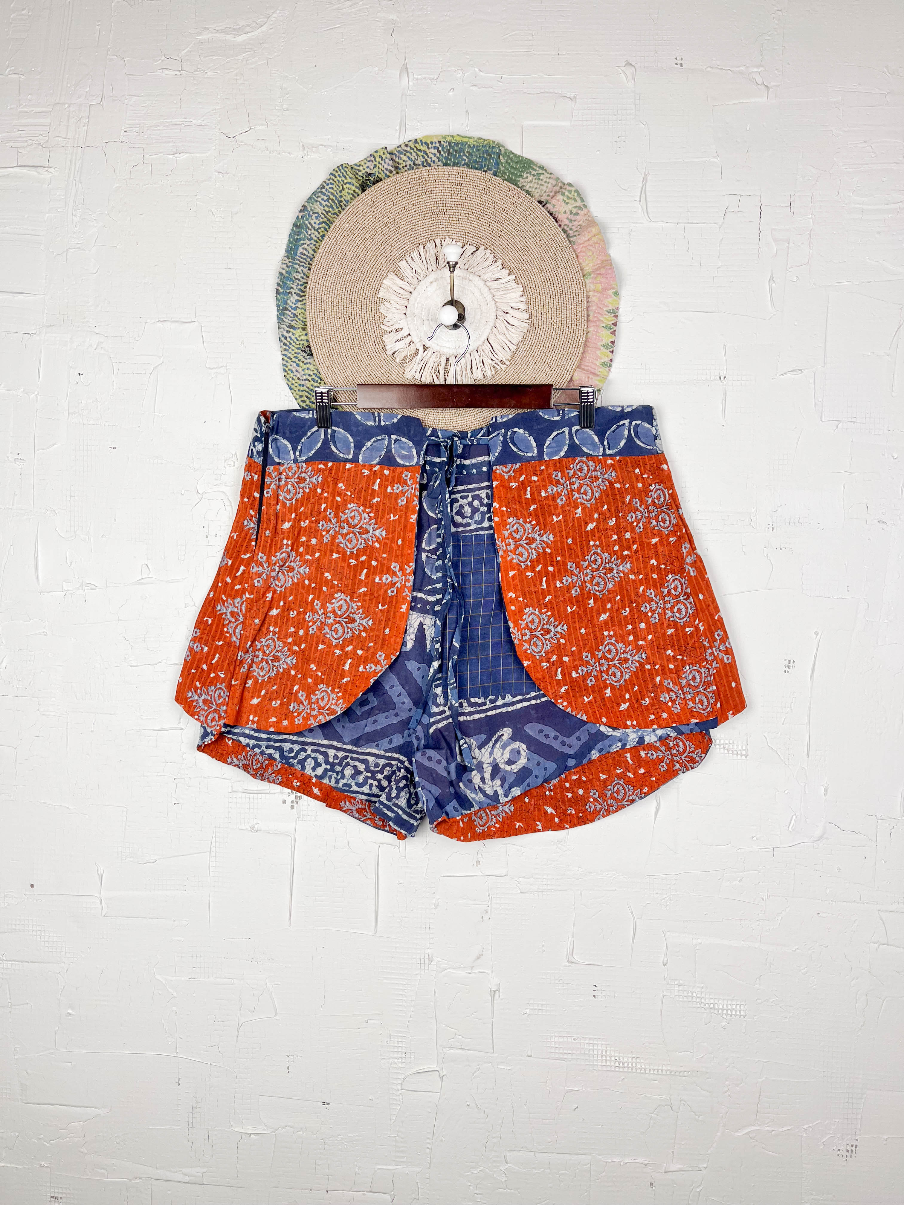 Imagine slipping into shorts that feel like a summer dream, crafted from unique vintage cotton with the charm of traditional Indian floral prints. These creatively designed, breezy shorts boast a special texture and softness, unlike anything new.