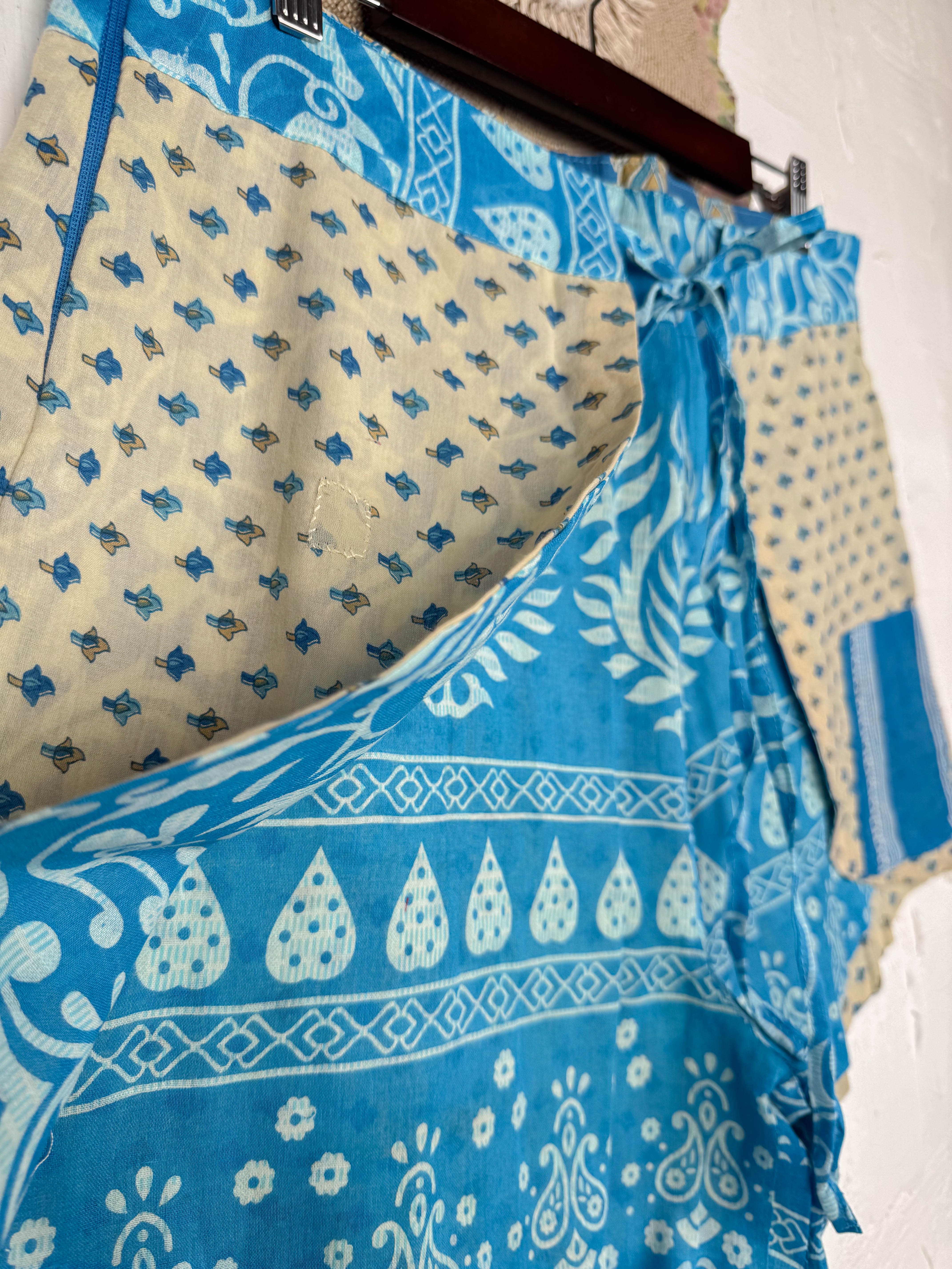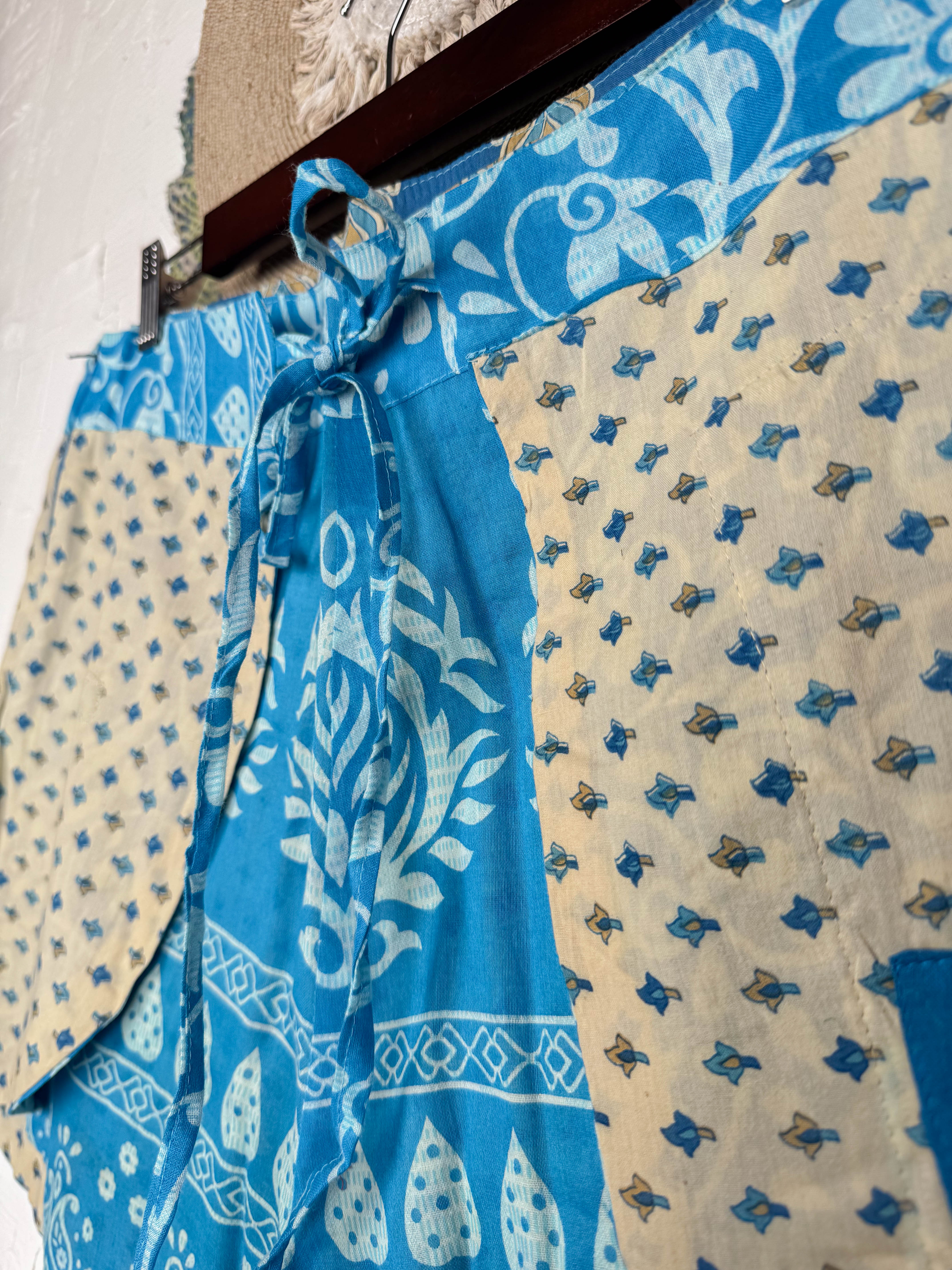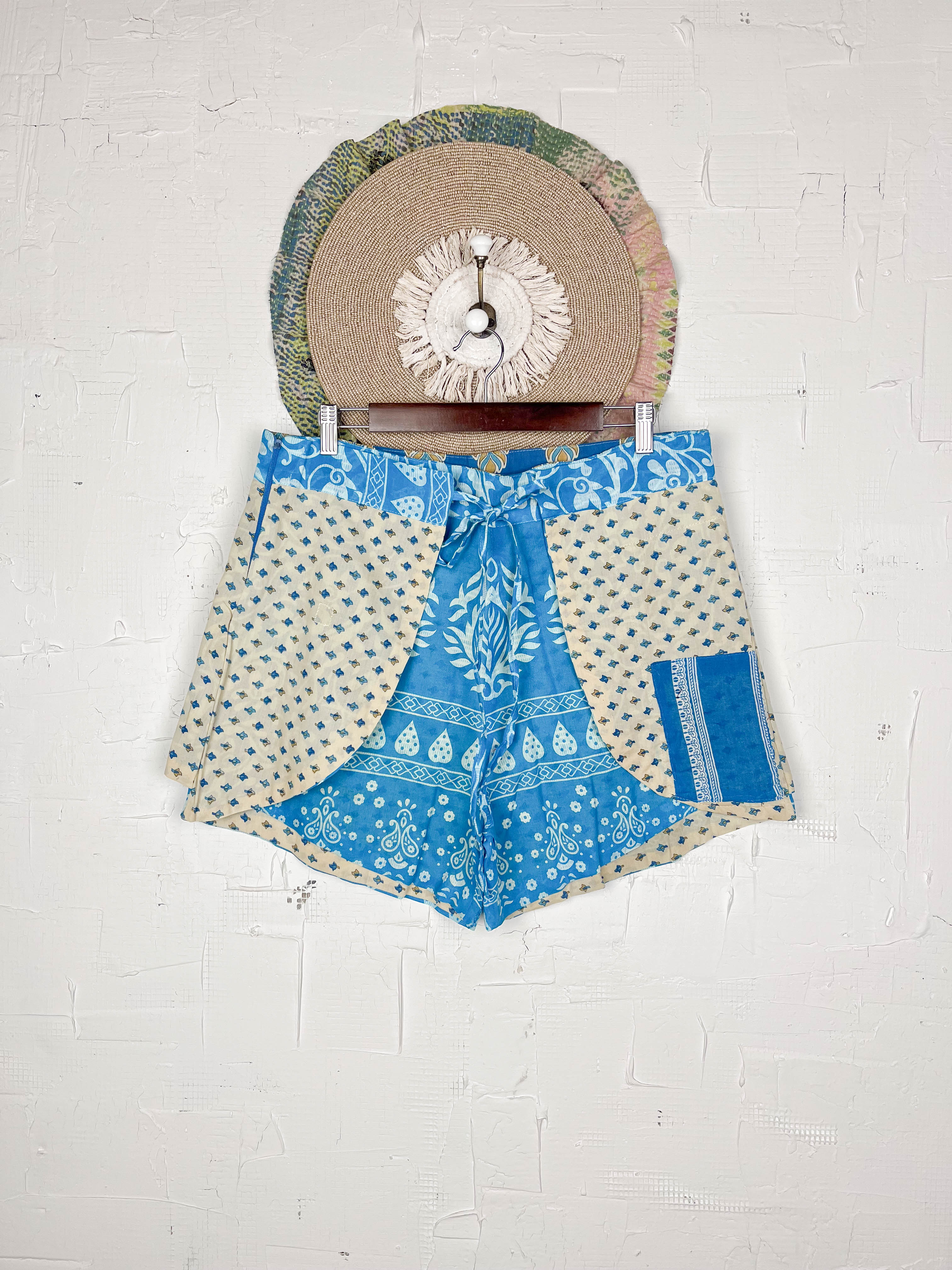 With the unique wrap style, they offer a perfect, adjustable fit that flatters every shape and size, secured with a stylish tie belt. The delightful combination of different prints and patchwork creates a fresh and playful look, ready for sunny adventures. Available in three sizes, these shorts are a celebration of individuality and joyful style