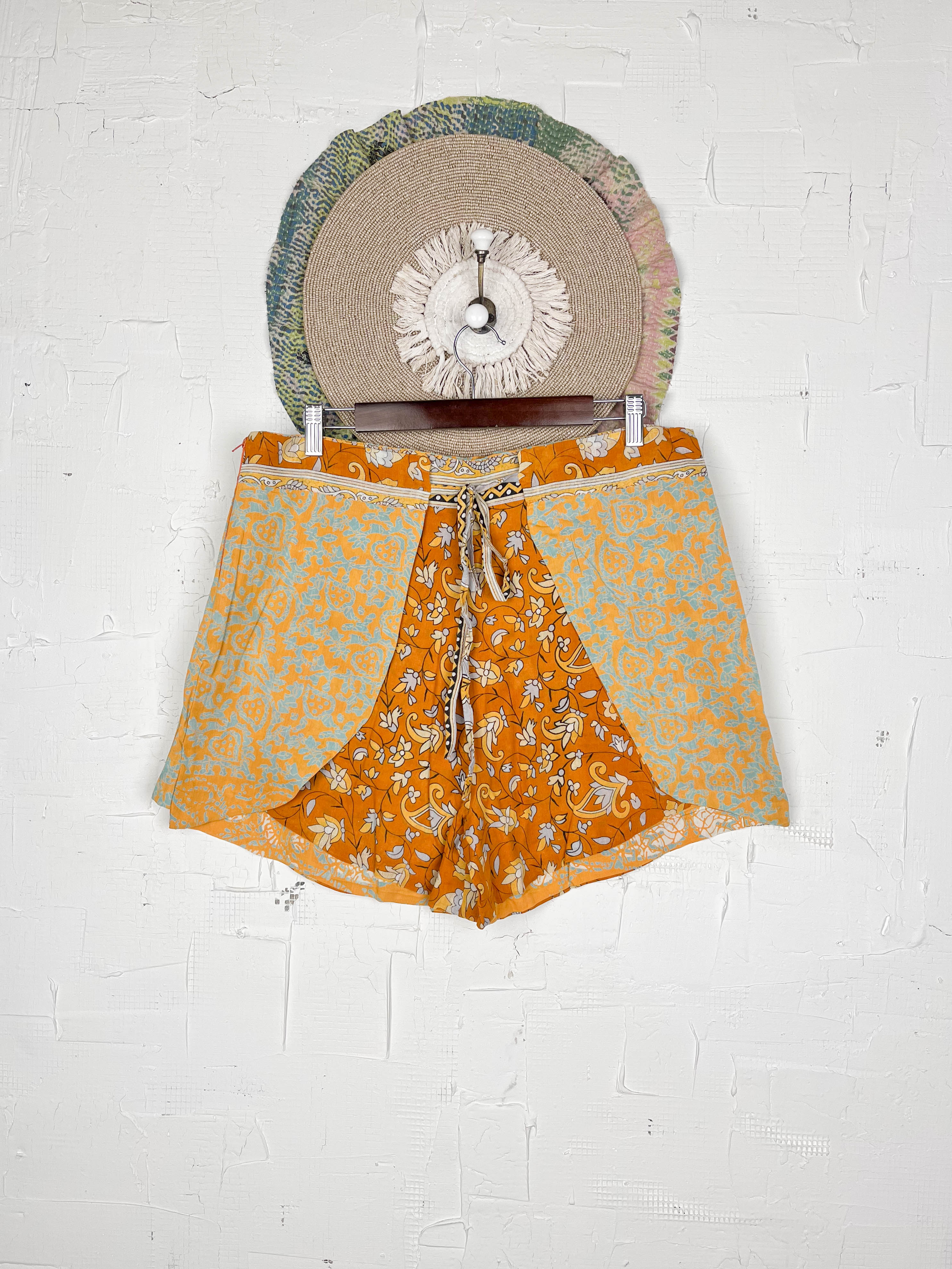 With the unique wrap style, they offer a perfect, adjustable fit that flatters every shape and size, secured with a stylish tie belt. The delightful combination of different prints and patchwork creates a fresh and playful look, ready for sunny adventures. Available in three sizes, these shorts are a celebration of individuality and joyful style
