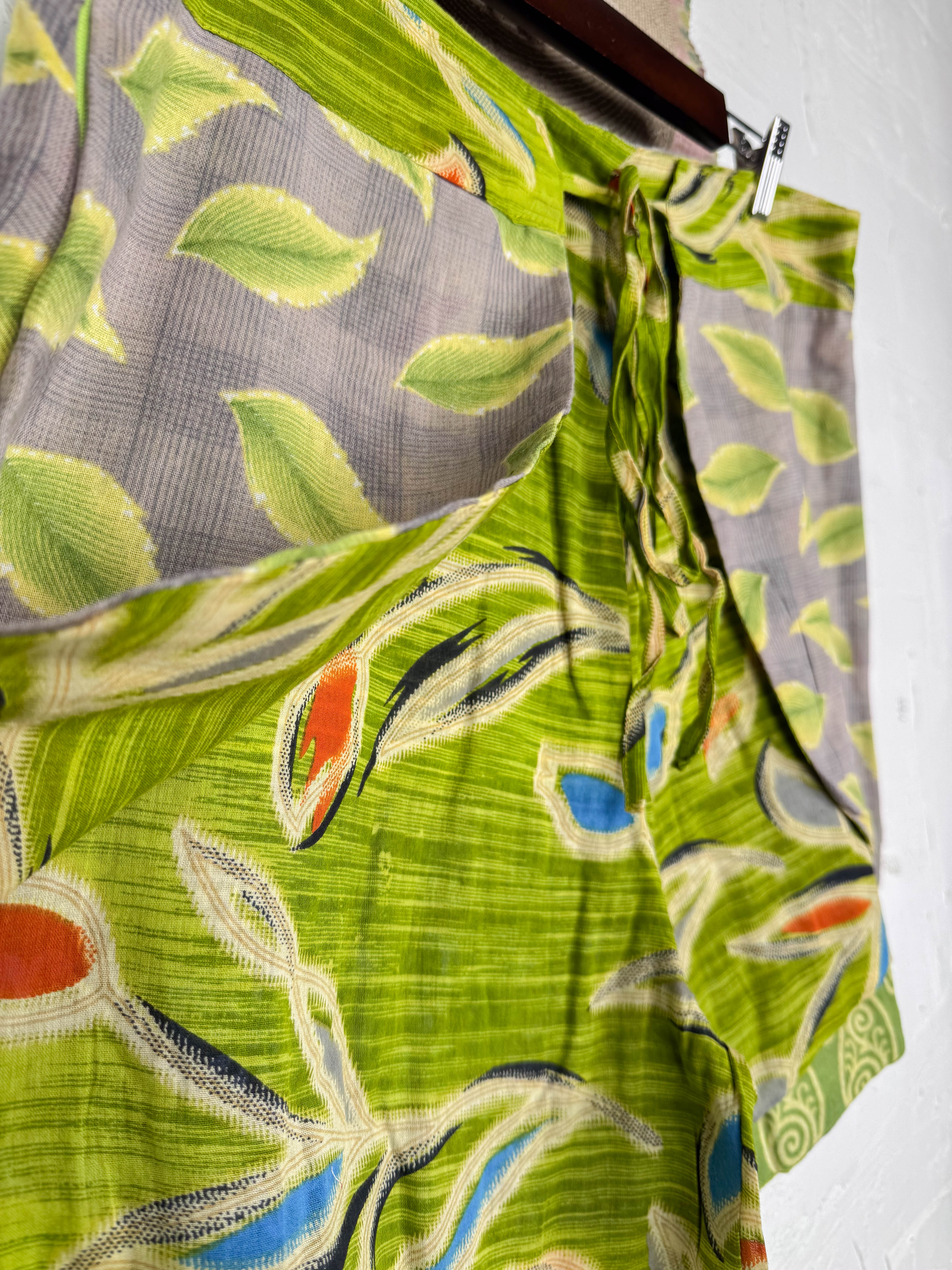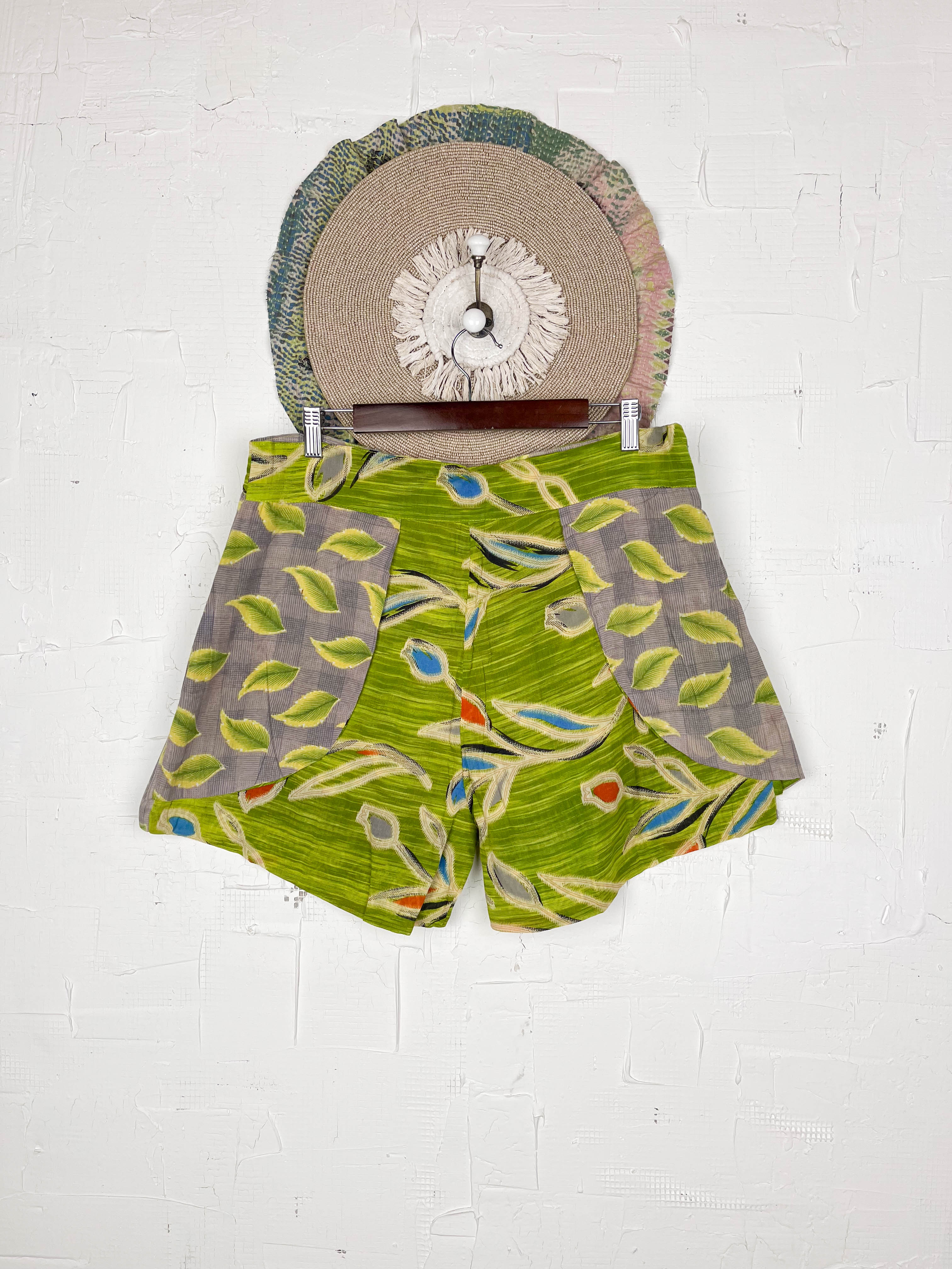 With the unique wrap style, they offer a perfect, adjustable fit that flatters every shape and size, secured with a stylish tie belt. The delightful combination of different prints and patchwork creates a fresh and playful look, ready for sunny adventures. Available in three sizes, these shorts are a celebration of individuality and joyful style