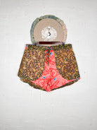 Imagine slipping into shorts that feel like a summer dream, crafted from unique vintage cotton with the charm of traditional Indian floral prints. These creatively designed, breezy shorts boast a special texture and softness, unlike anything new.