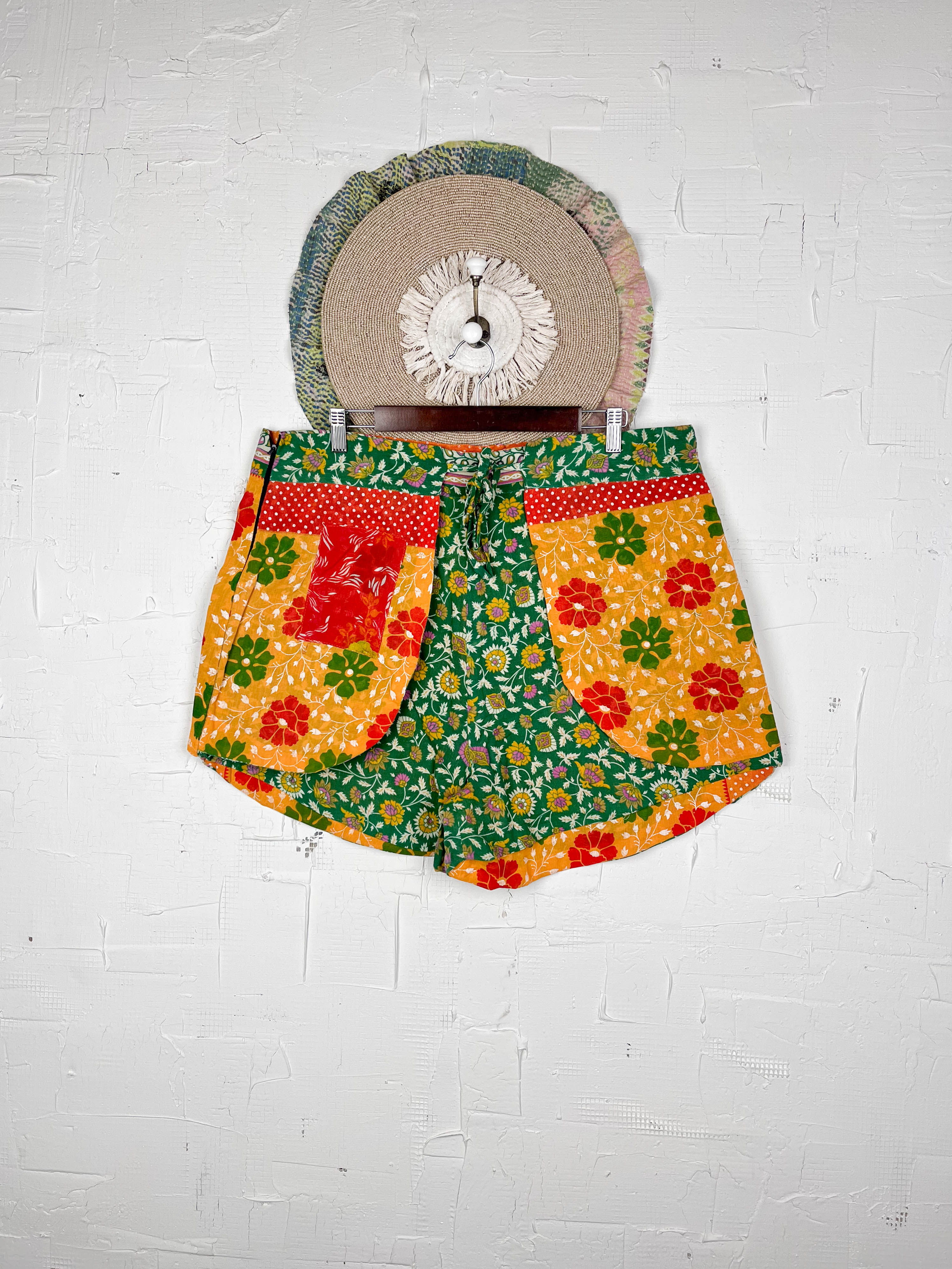 Imagine slipping into shorts that feel like a summer dream, crafted from unique vintage cotton with the charm of traditional Indian floral prints. These creatively designed, breezy shorts boast a special texture and softness, unlike anything new.