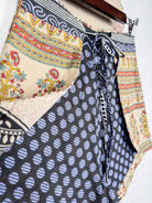 With the unique wrap style, they offer a perfect, adjustable fit that flatters every shape and size, secured with a stylish tie belt. The delightful combination of different prints and patchwork creates a fresh and playful look, ready for sunny adventures. Available in three sizes, these shorts are a celebration of individuality and joyful style