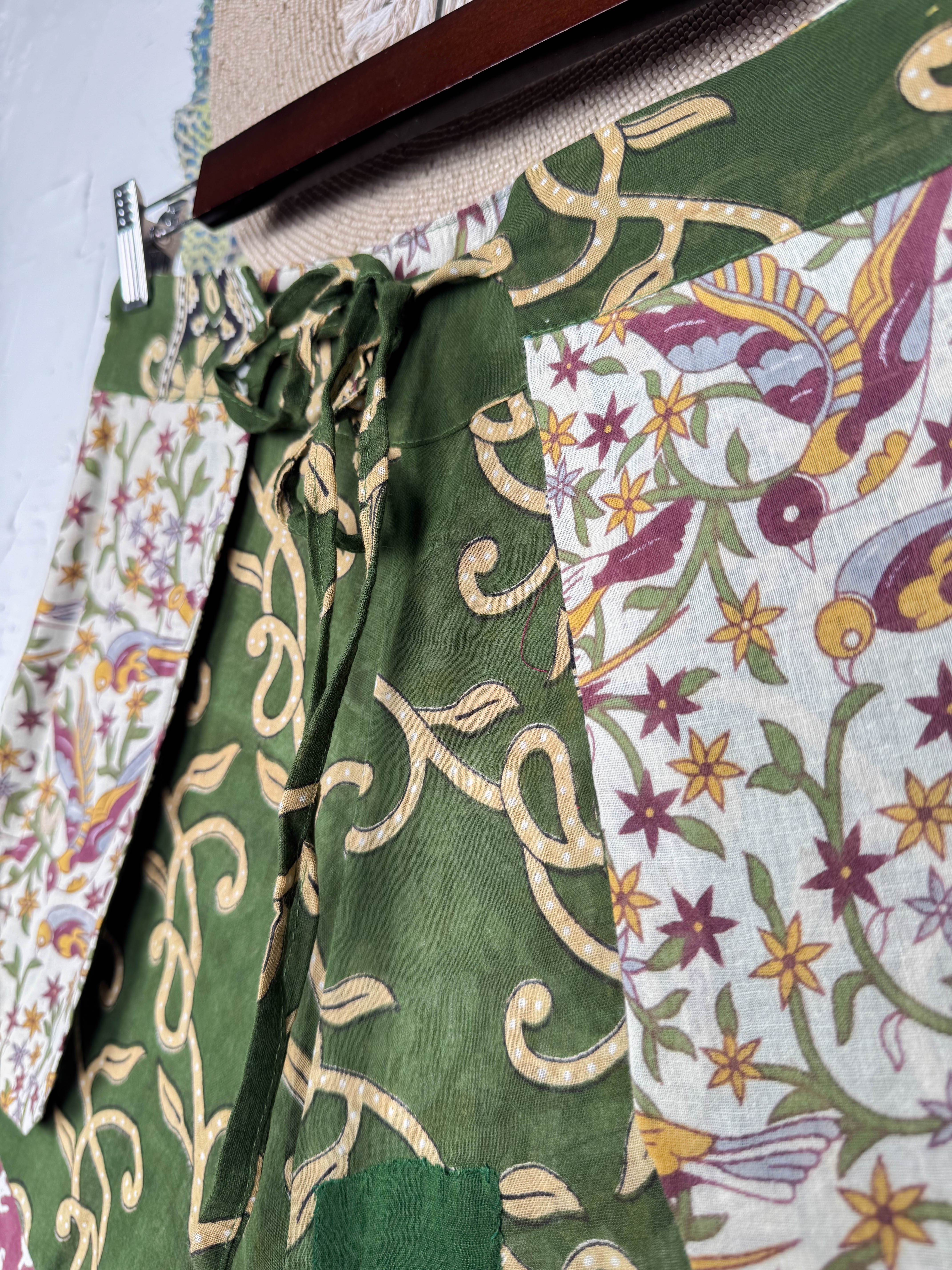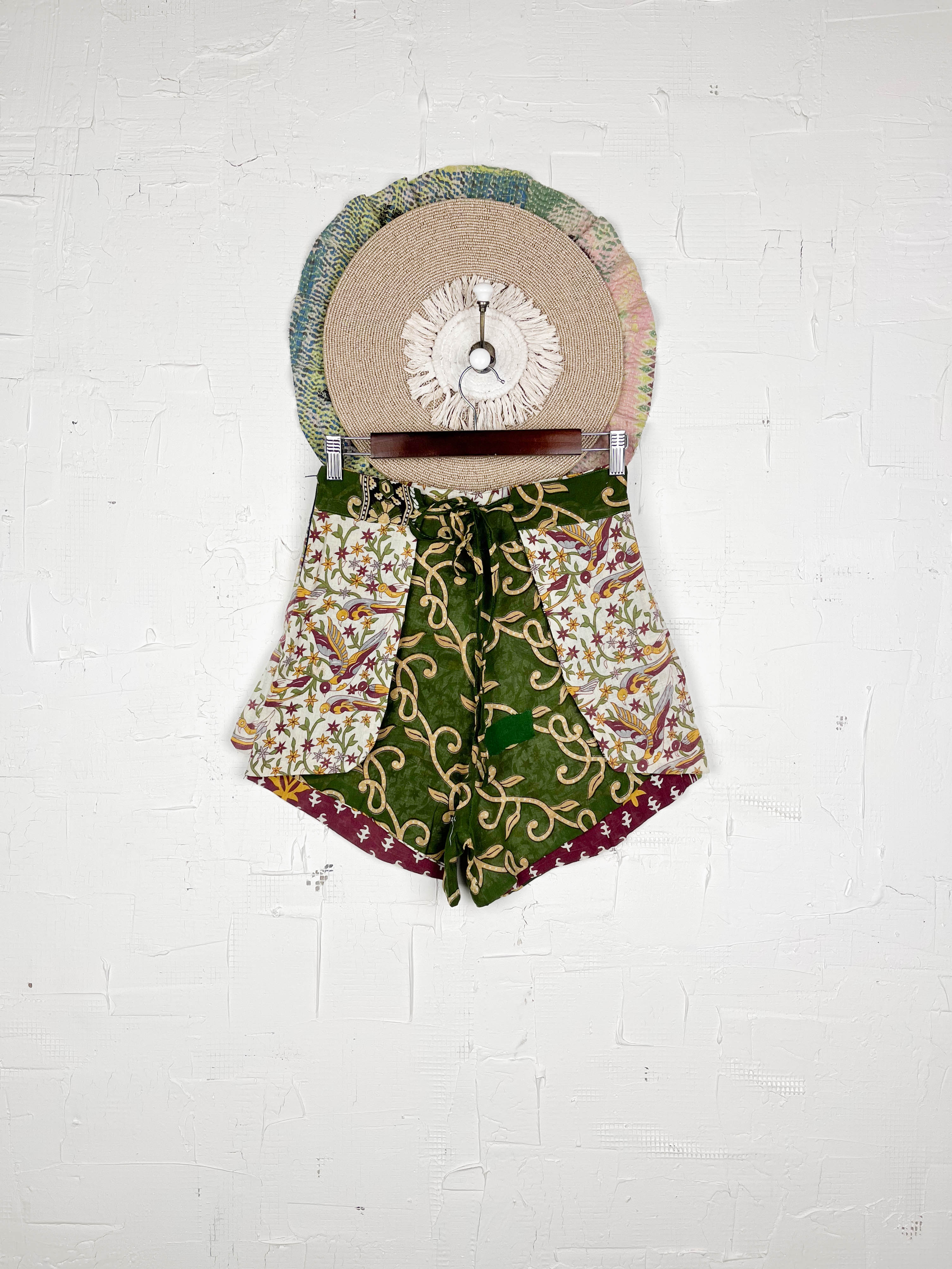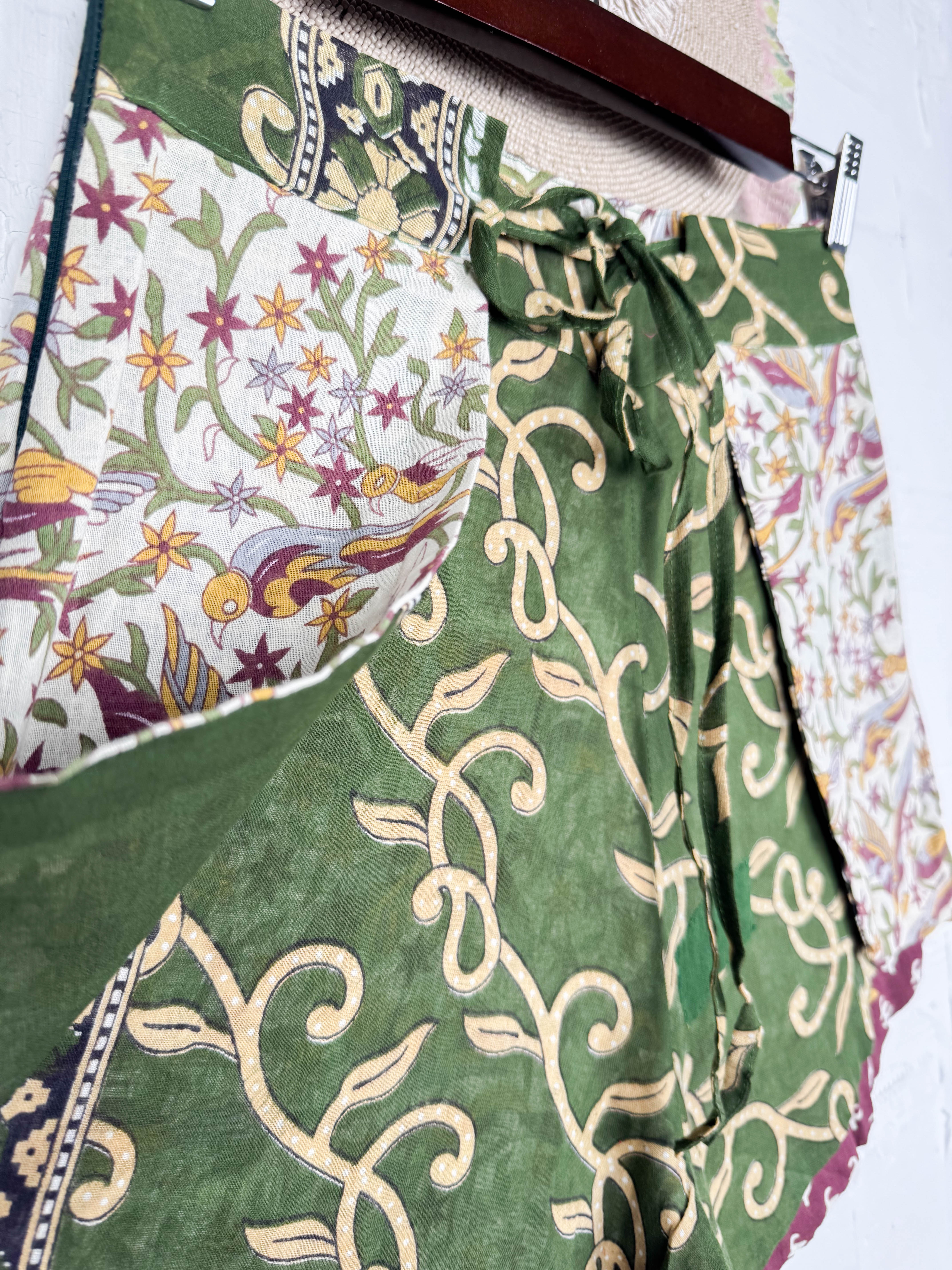 With the unique wrap style, they offer a perfect, adjustable fit that flatters every shape and size, secured with a stylish tie belt. The delightful combination of different prints and patchwork creates a fresh and playful look, ready for sunny adventures. Available in three sizes, these shorts are a celebration of individuality and joyful style
