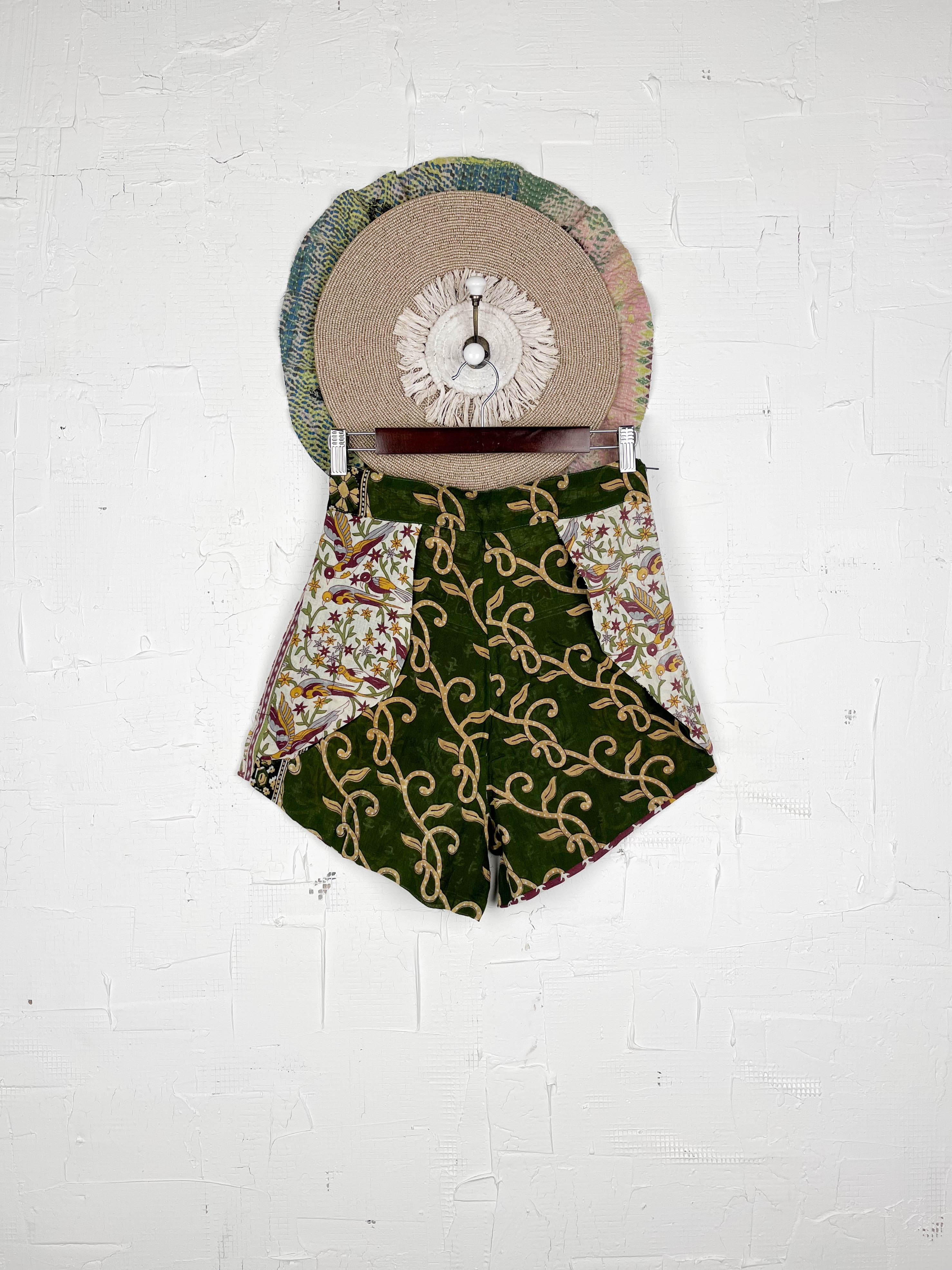 Imagine slipping into shorts that feel like a summer dream, crafted from unique vintage cotton with the charm of traditional Indian floral prints. These creatively designed, breezy shorts boast a special texture and softness, unlike anything new.