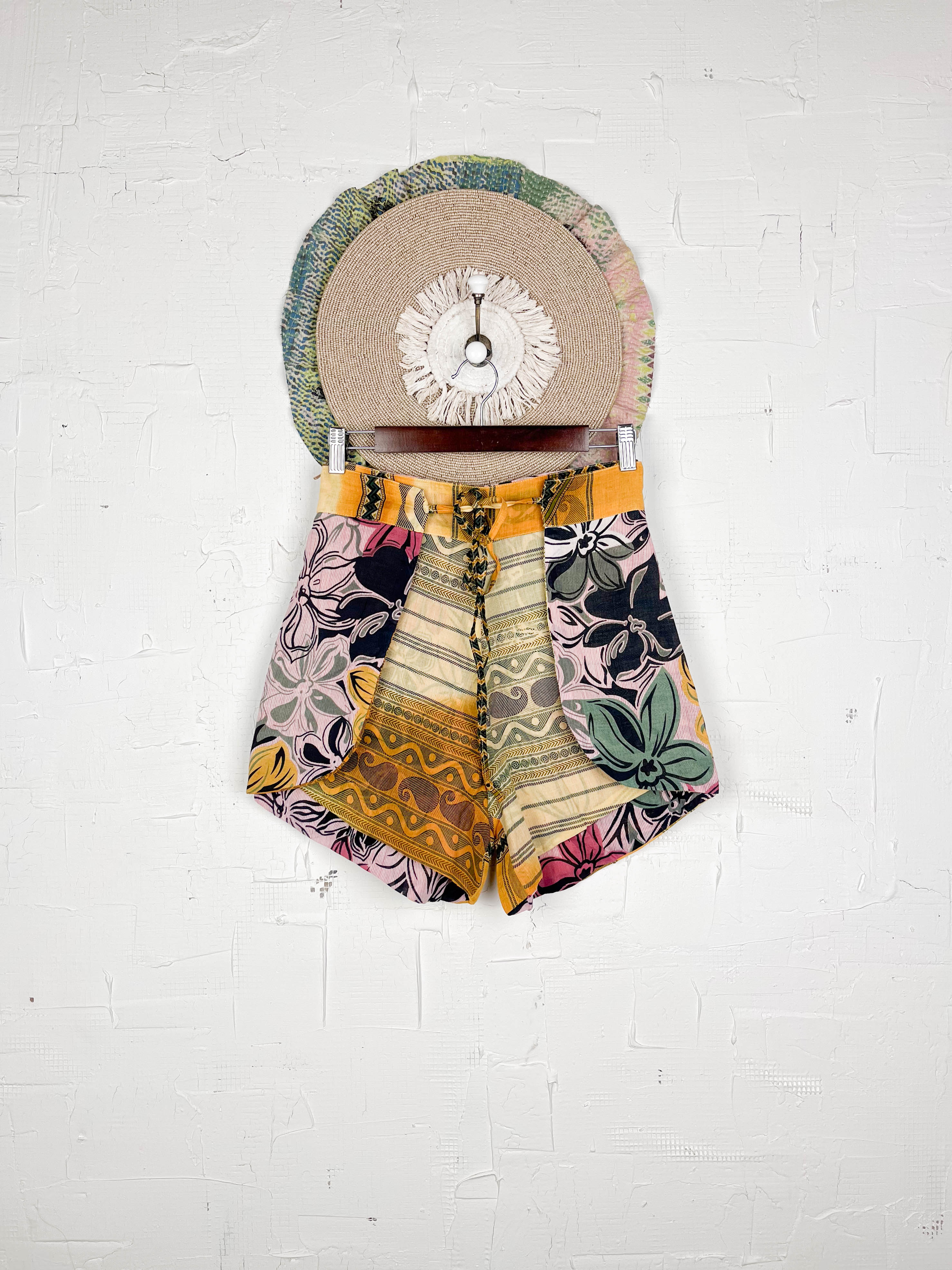 Imagine slipping into shorts that feel like a summer dream, crafted from unique vintage cotton with the charm of traditional Indian floral prints. These creatively designed, breezy shorts boast a special texture and softness, unlike anything new.