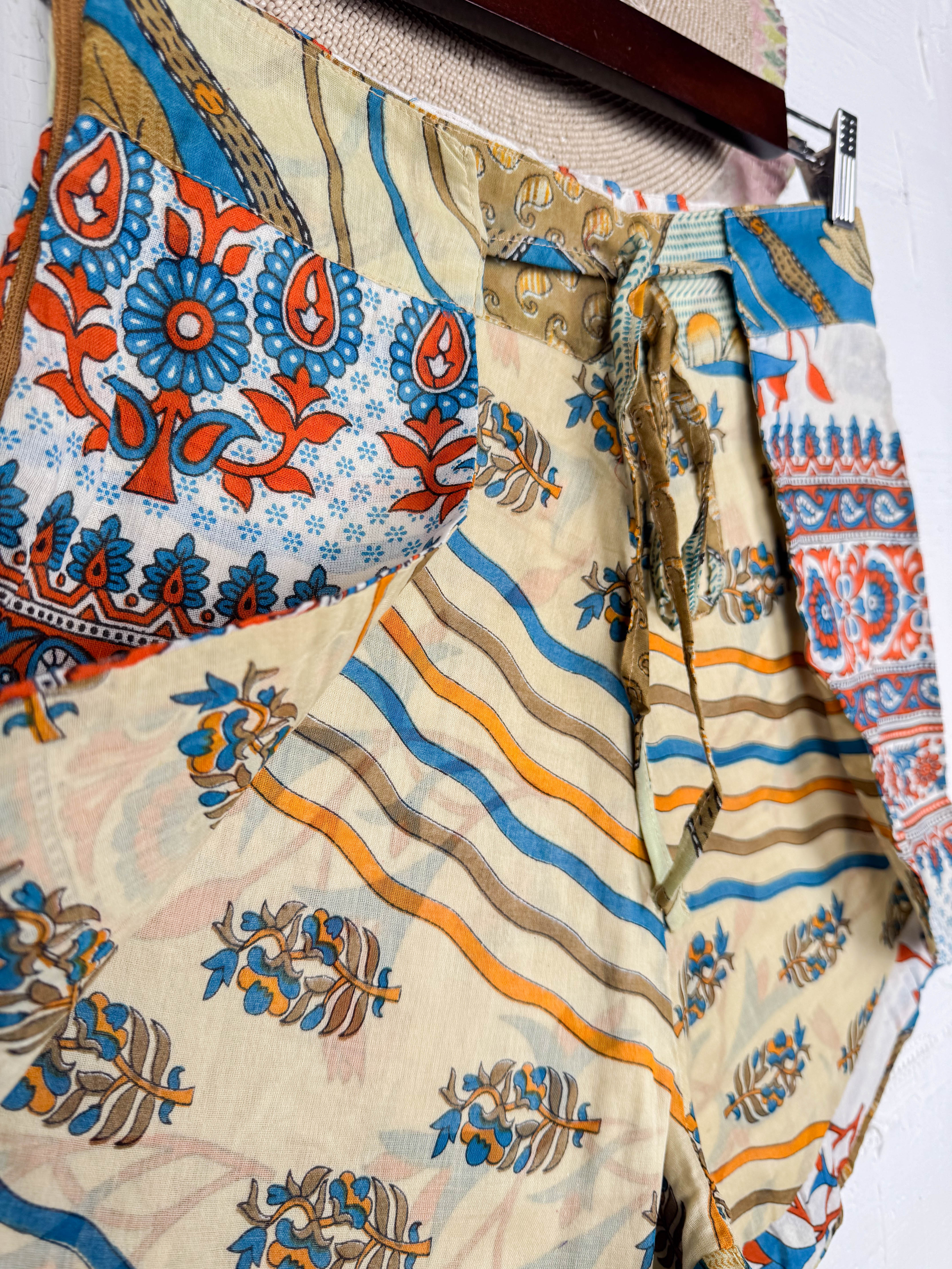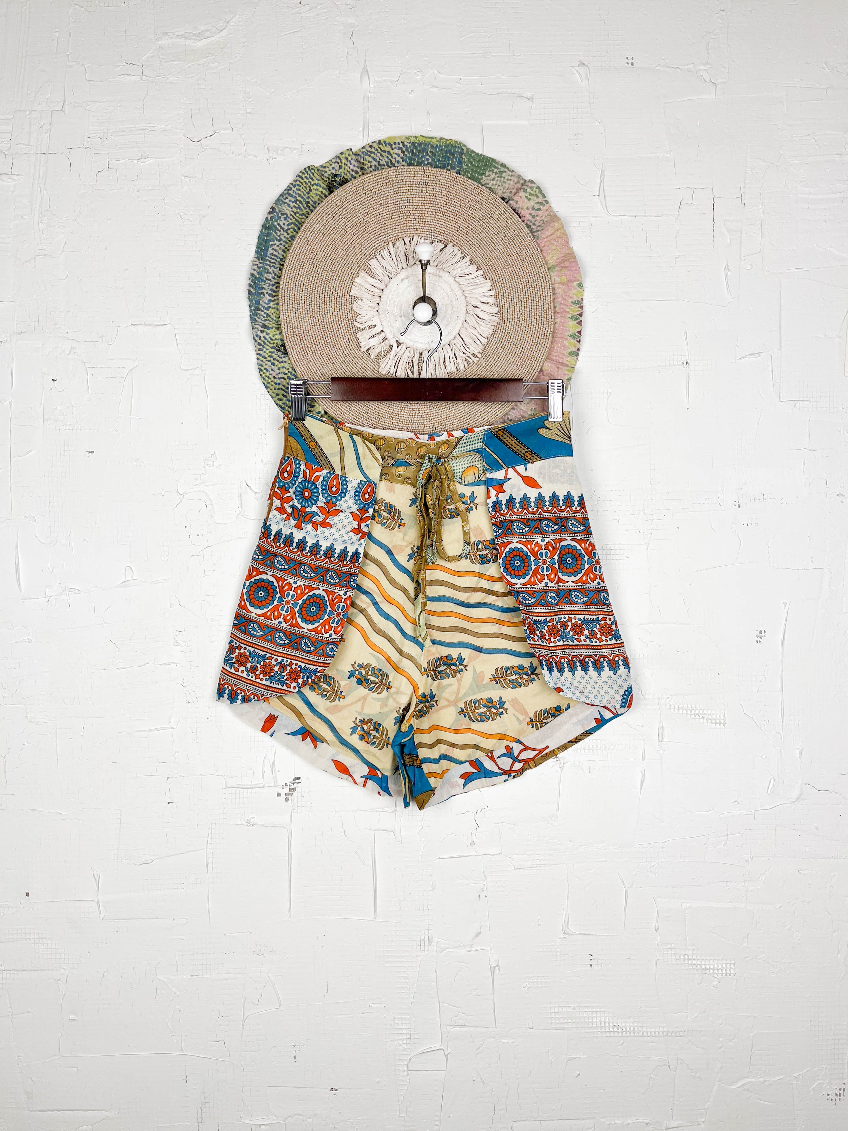 Imagine slipping into shorts that feel like a summer dream, crafted from unique vintage cotton with the charm of traditional Indian floral prints. These creatively designed, breezy shorts boast a special texture and softness, unlike anything new.