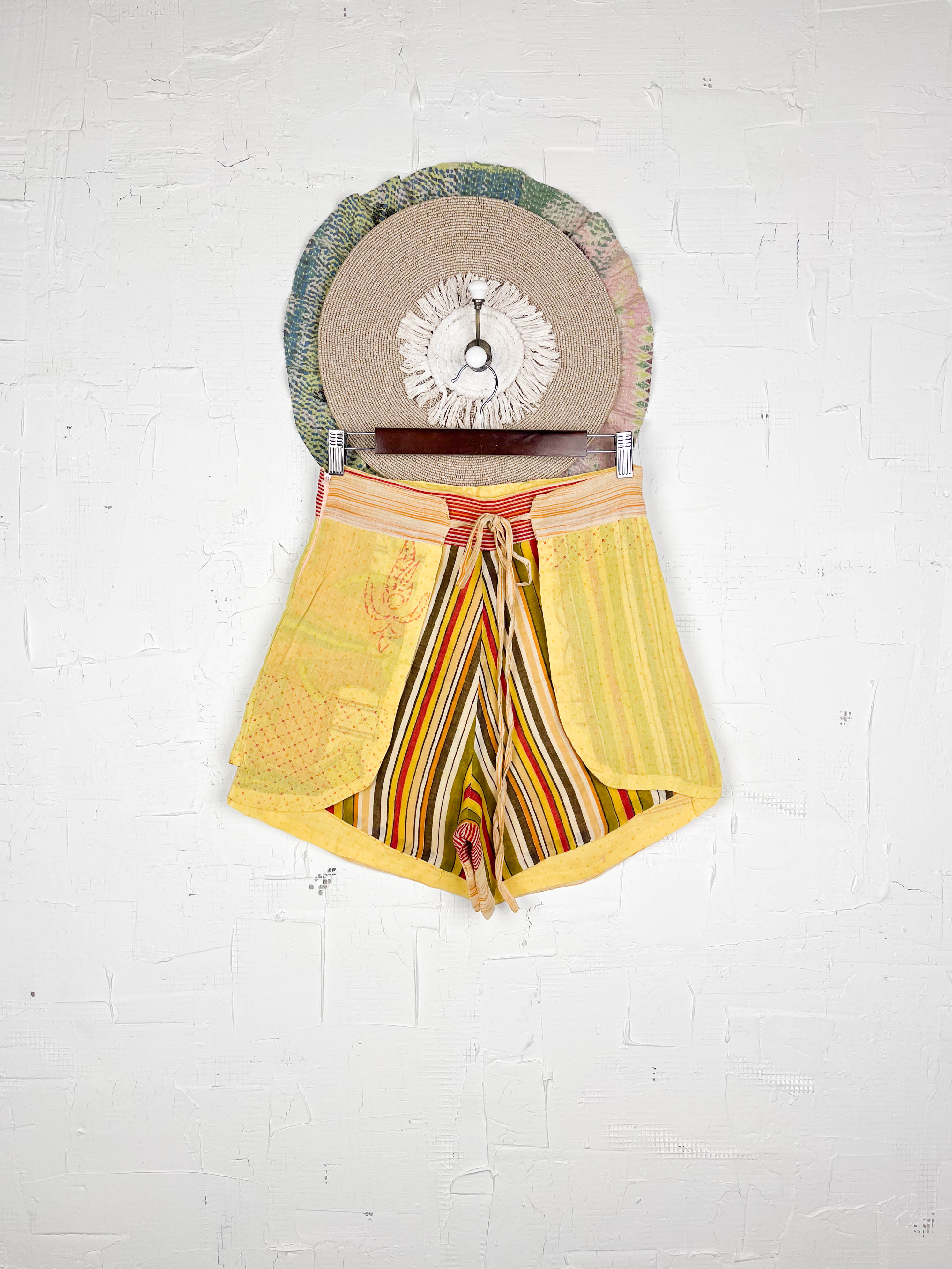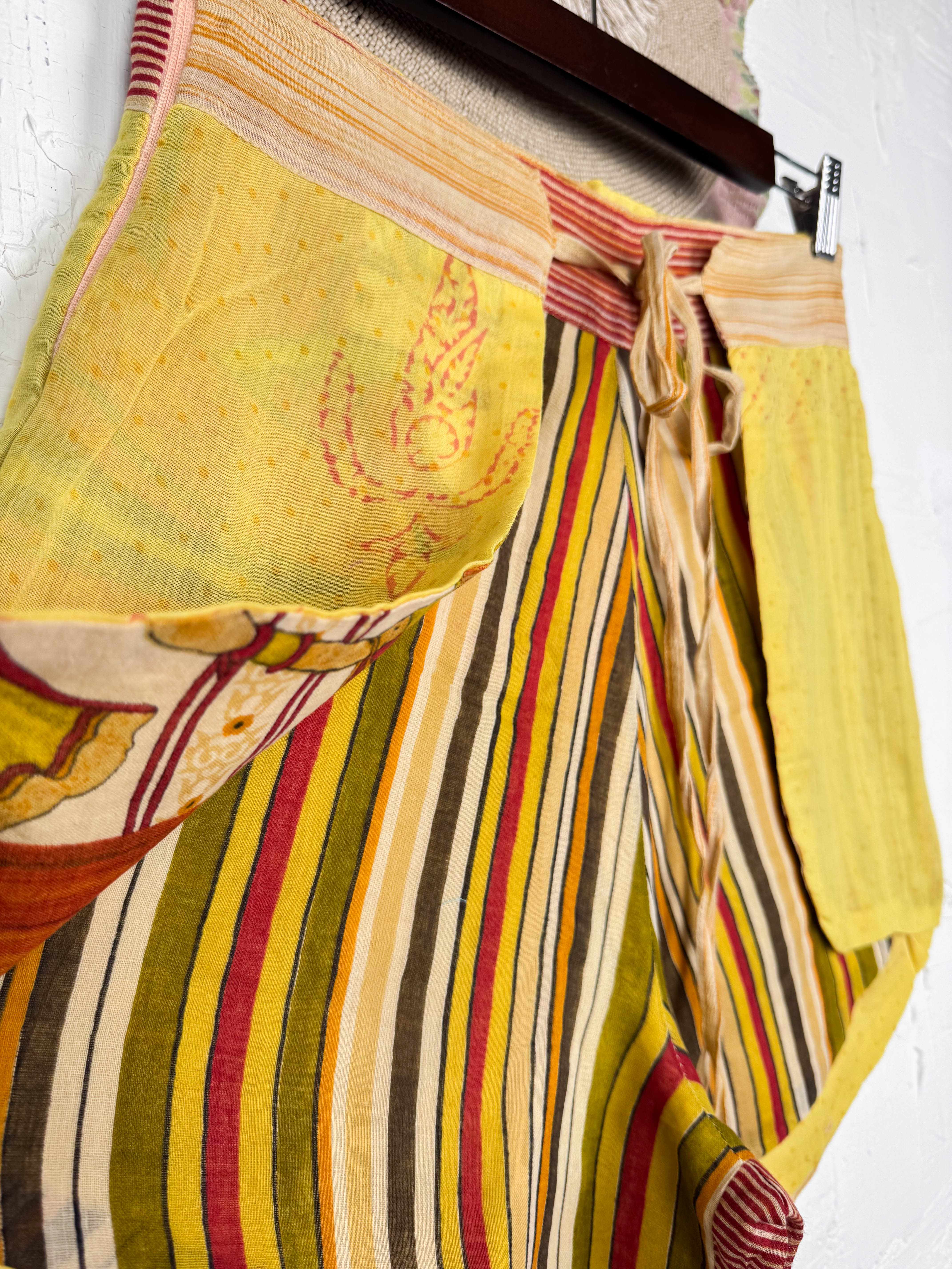 With the unique wrap style, they offer a perfect, adjustable fit that flatters every shape and size, secured with a stylish tie belt. The delightful combination of different prints and patchwork creates a fresh and playful look, ready for sunny adventures. Available in three sizes, these shorts are a celebration of individuality and joyful style