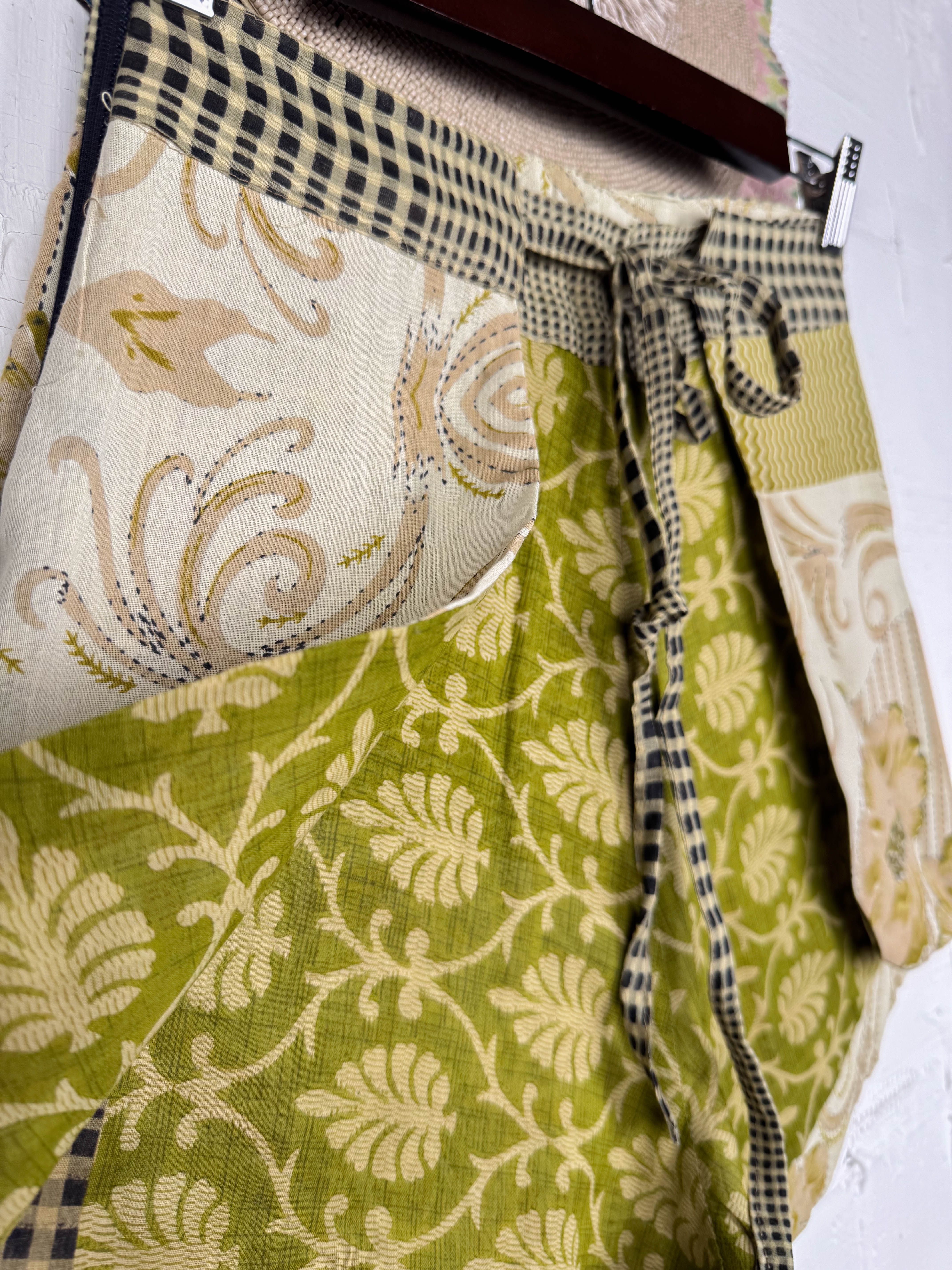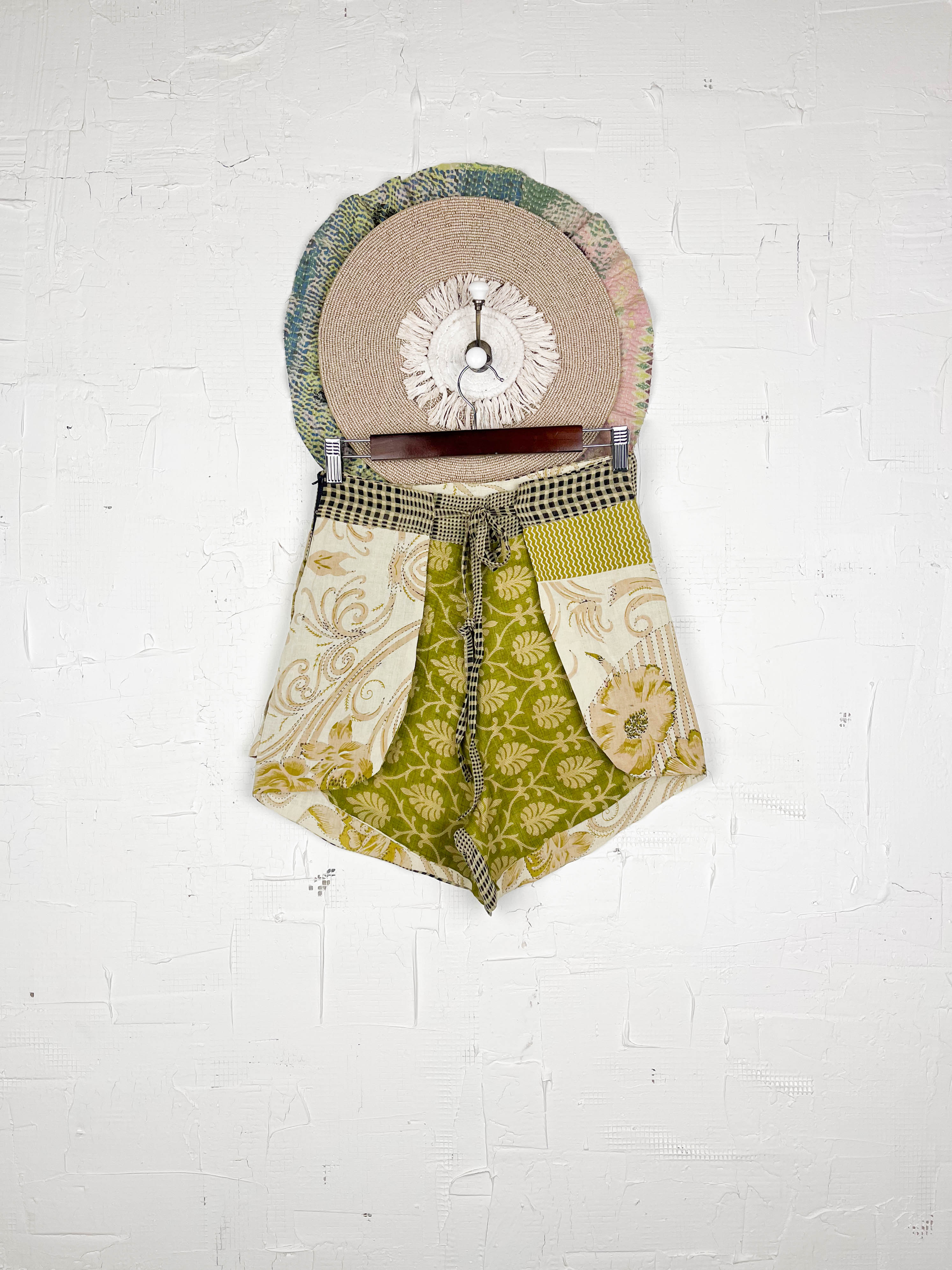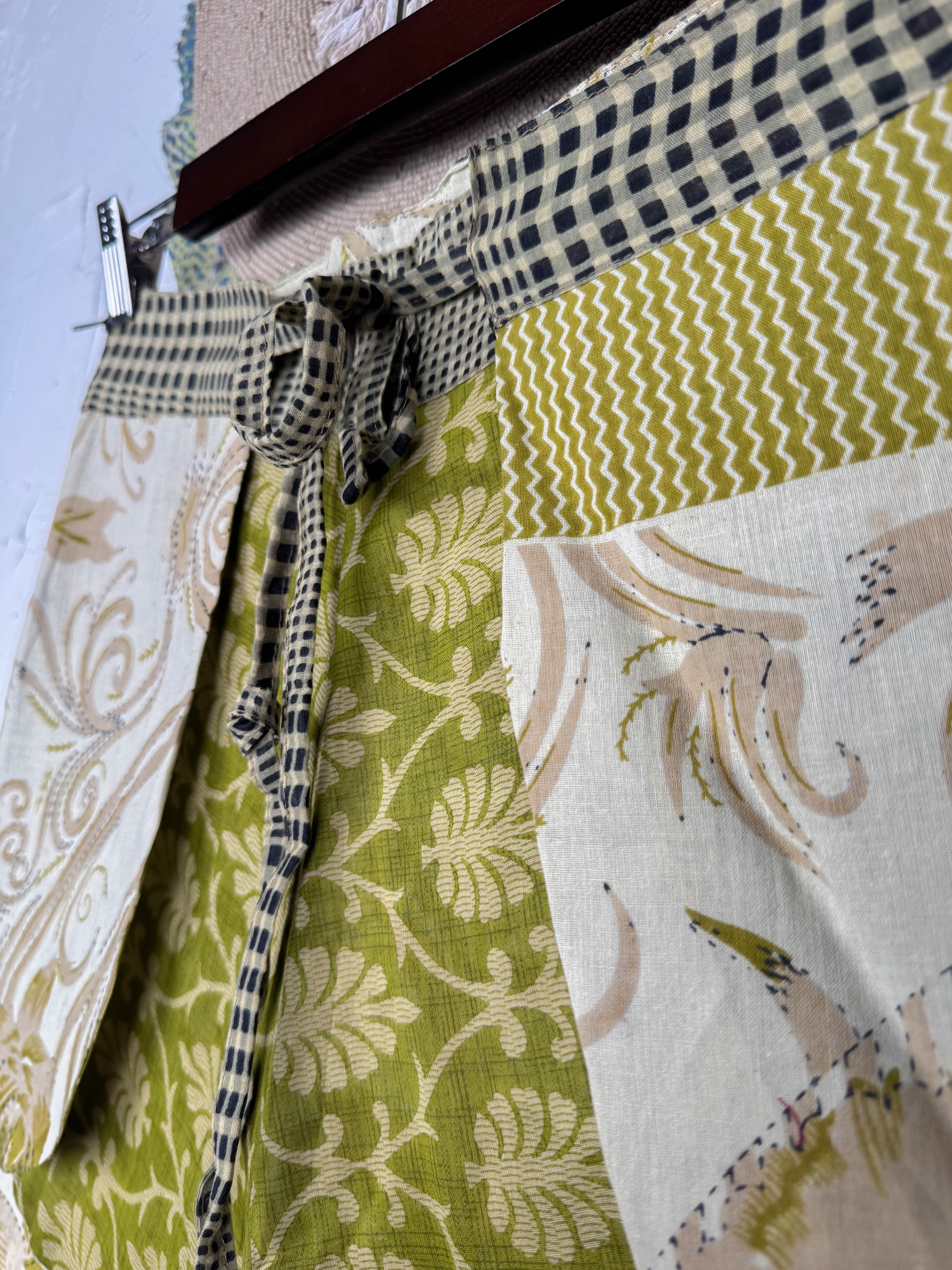 With the unique wrap style, they offer a perfect, adjustable fit that flatters every shape and size, secured with a stylish tie belt. The delightful combination of different prints and patchwork creates a fresh and playful look, ready for sunny adventures. Available in three sizes, these shorts are a celebration of individuality and joyful style