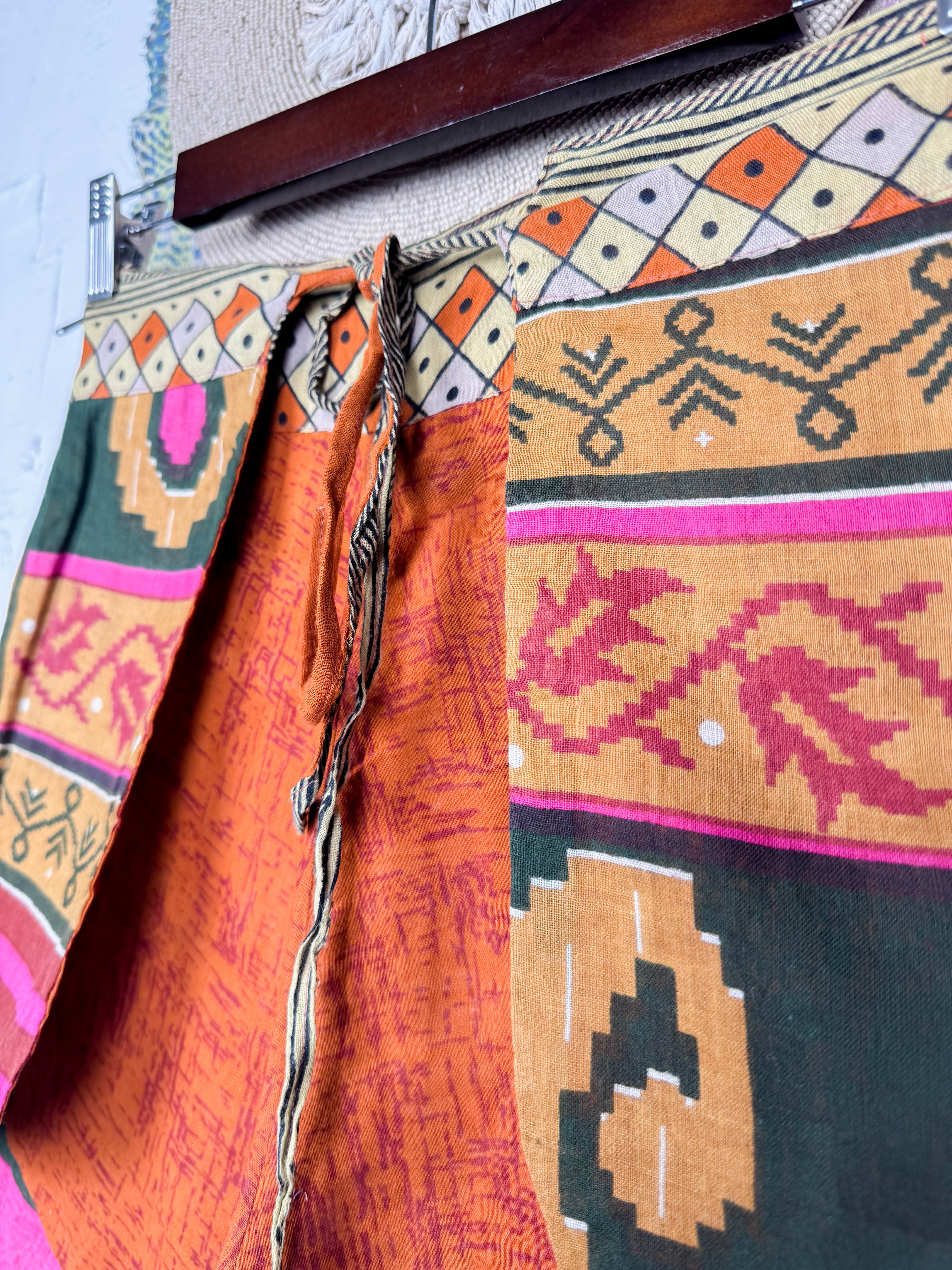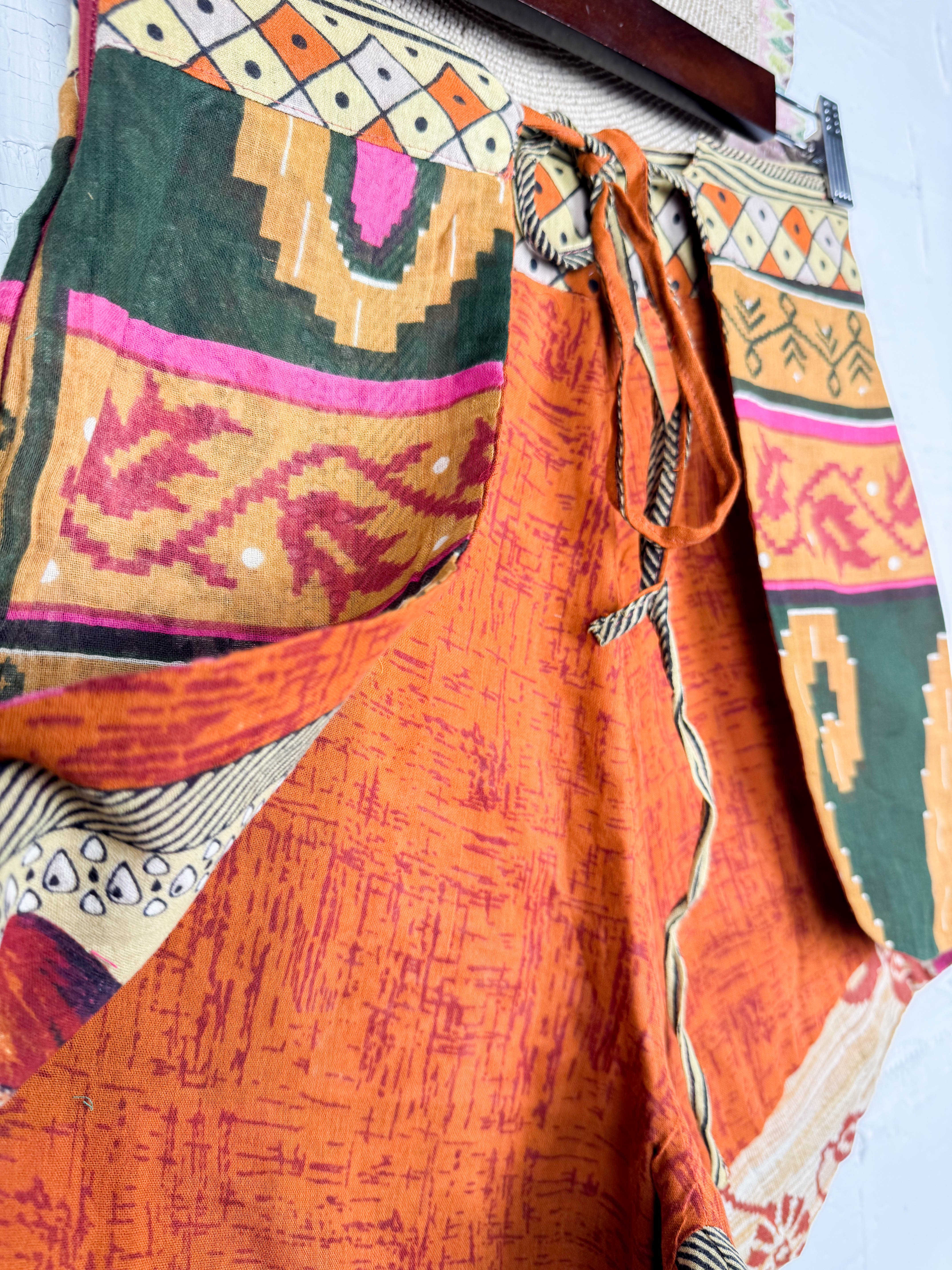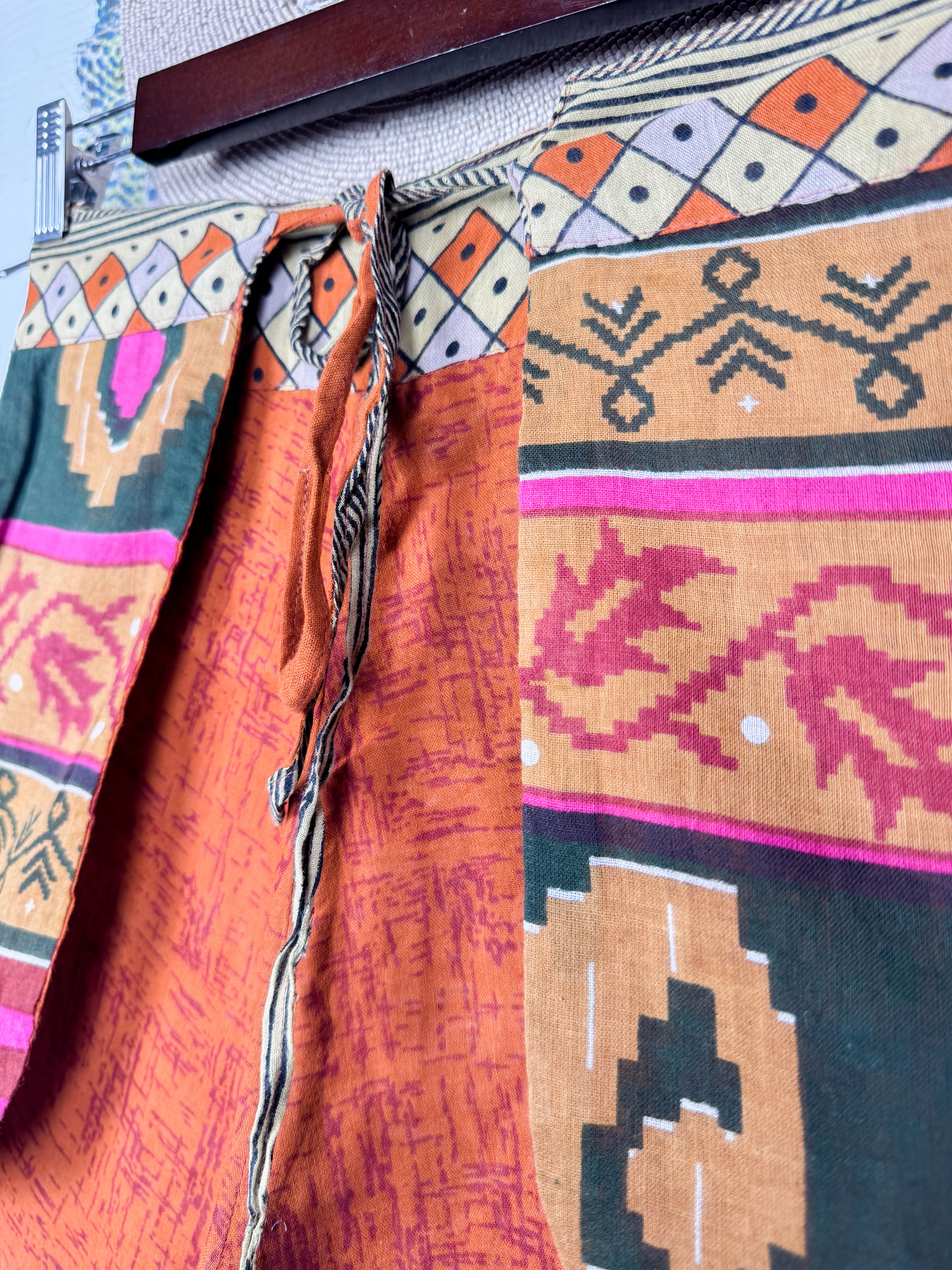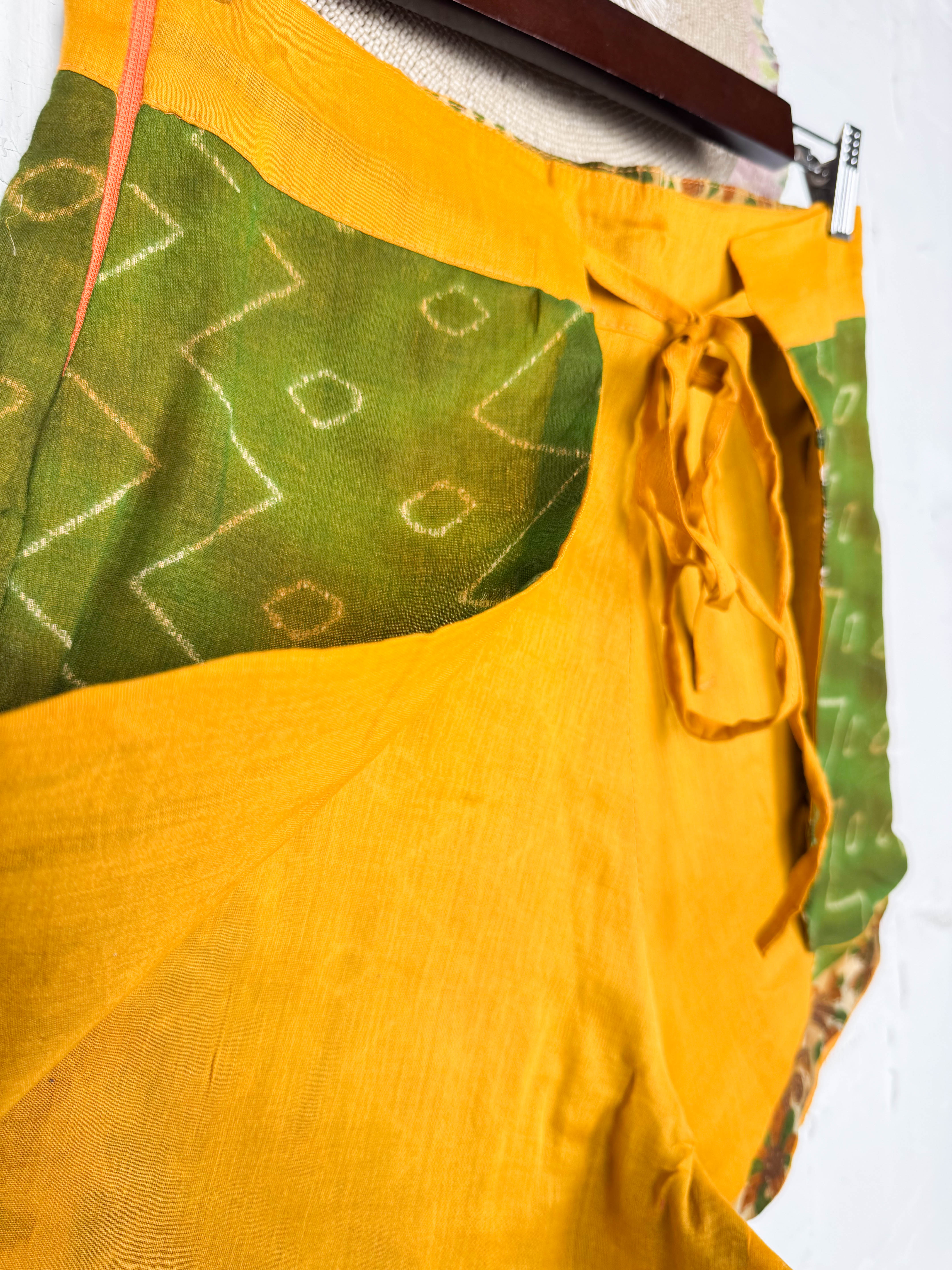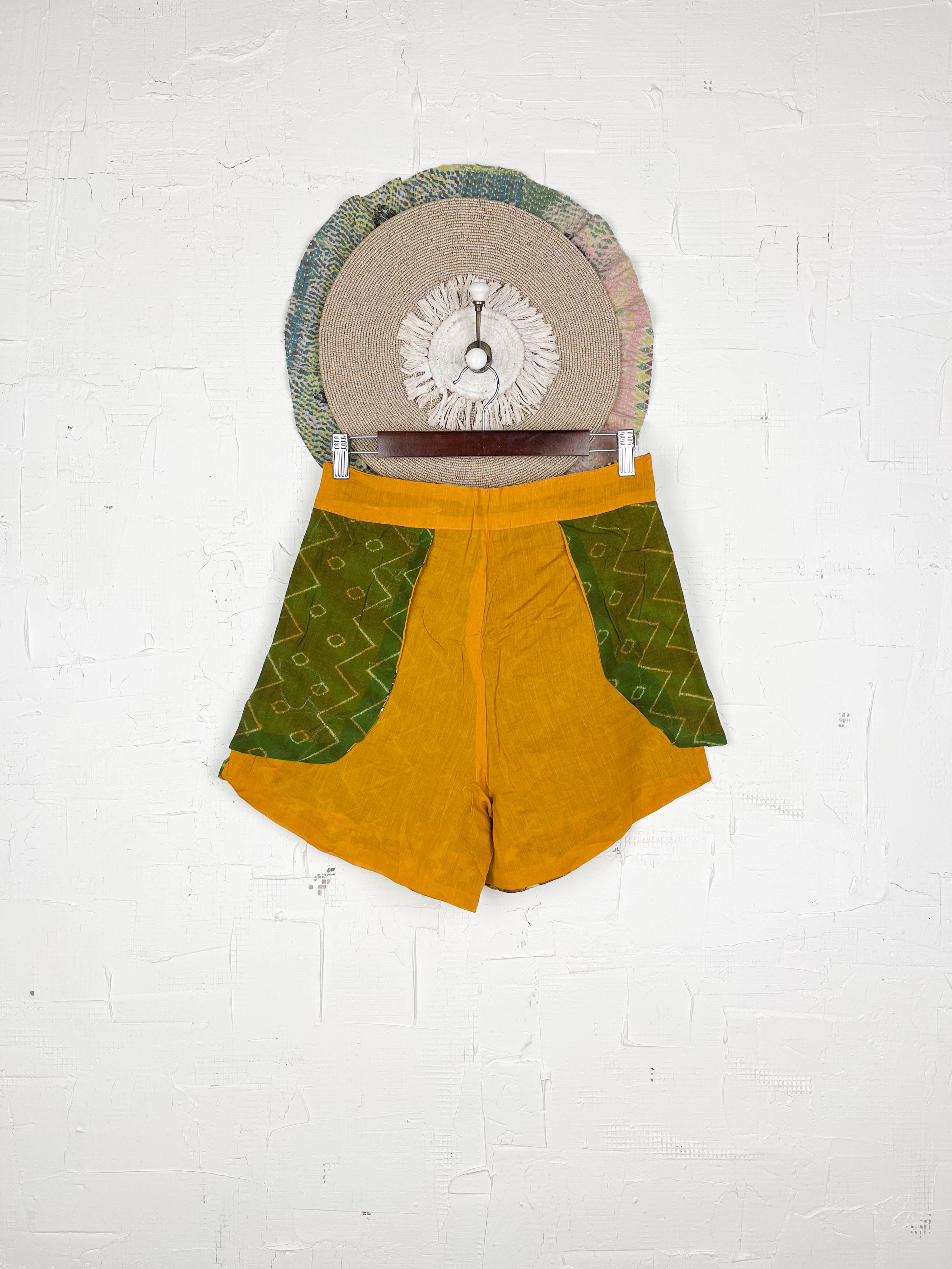 With the unique wrap style, they offer a perfect, adjustable fit that flatters every shape and size, secured with a stylish tie belt. The delightful combination of different prints and patchwork creates a fresh and playful look, ready for sunny adventures. Available in three sizes, these shorts are a celebration of individuality and joyful style