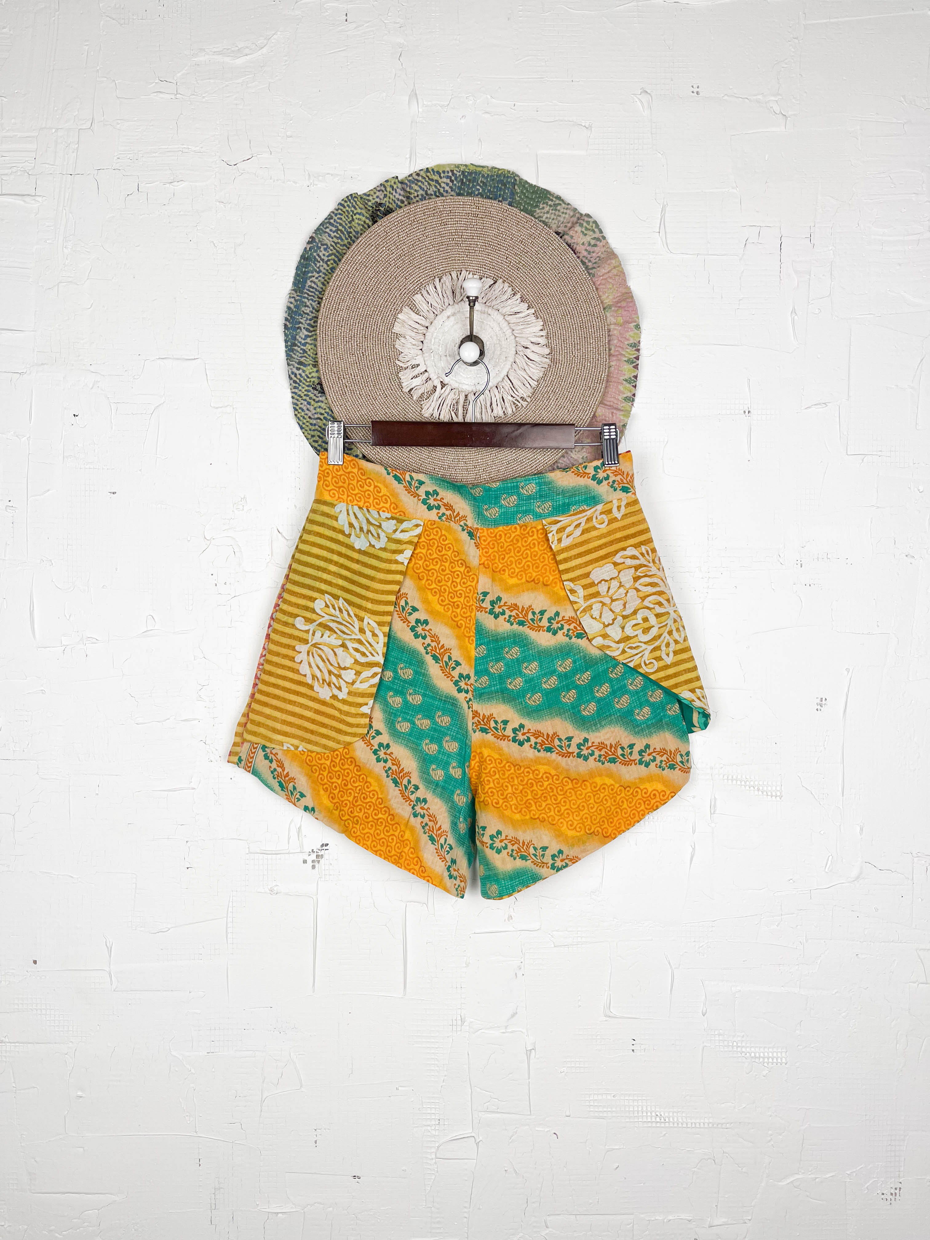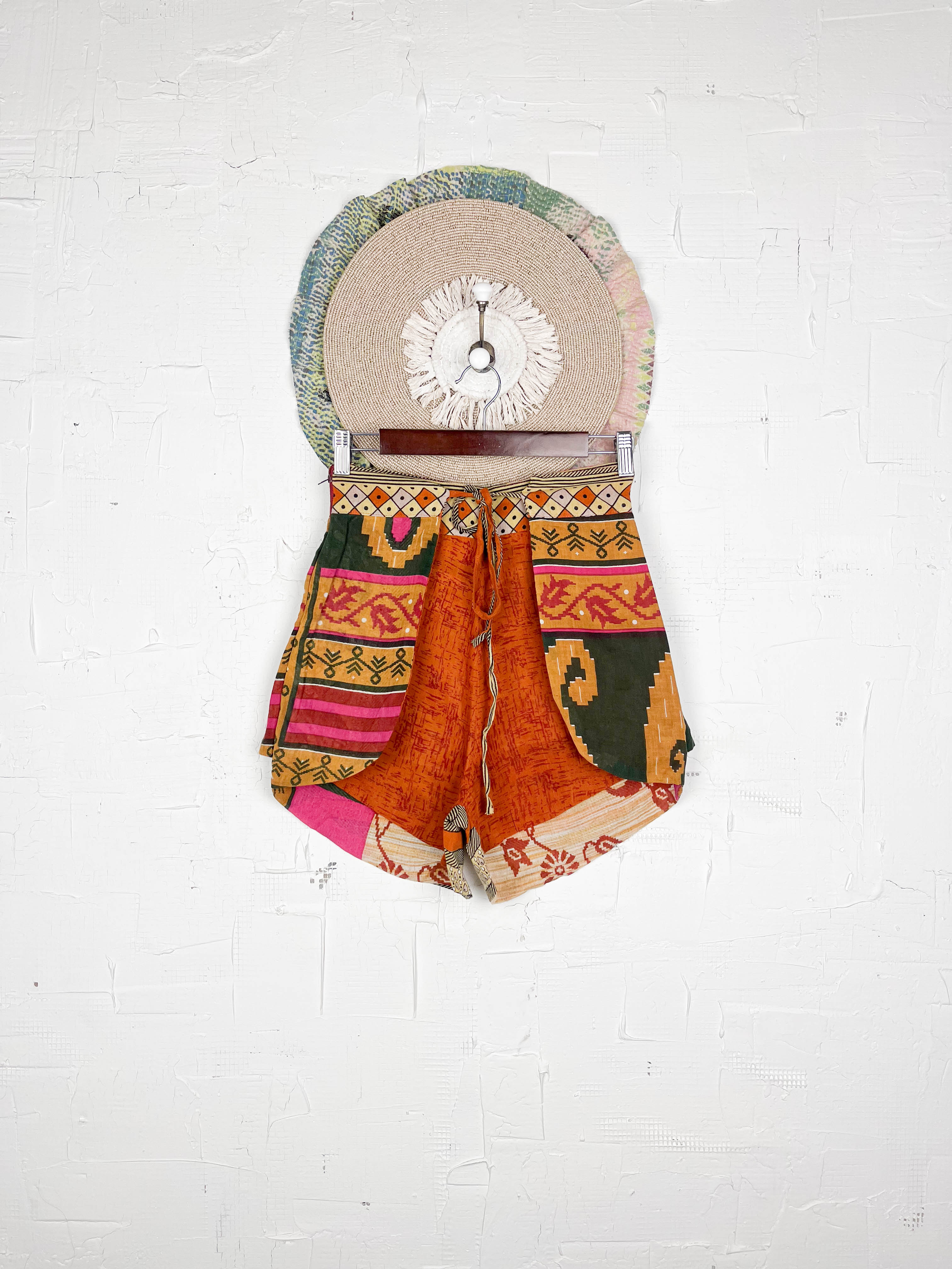 Imagine slipping into shorts that feel like a summer dream, crafted from unique vintage cotton with the charm of traditional Indian floral prints. These creatively designed, breezy shorts boast a special texture and softness, unlike anything new.