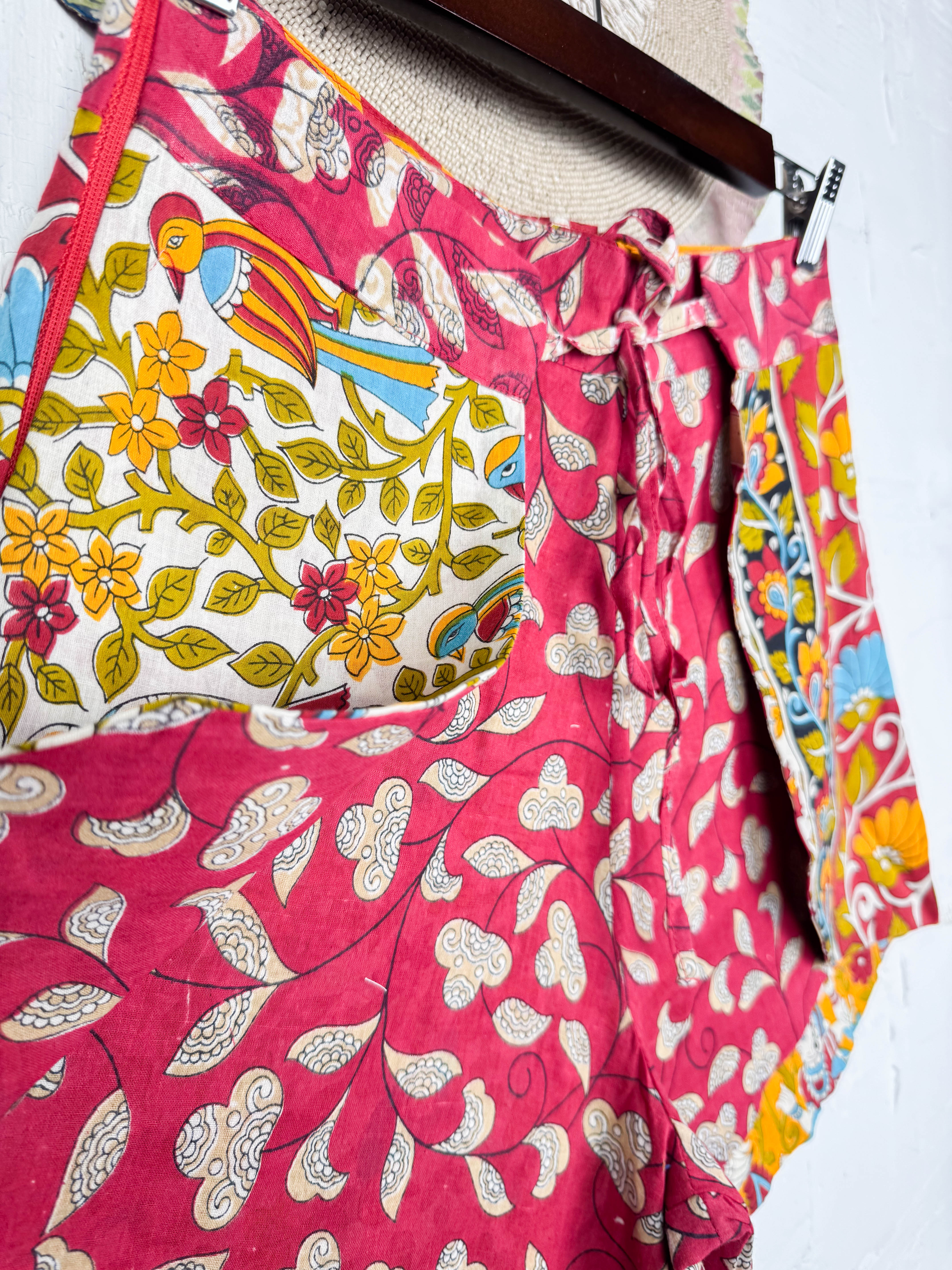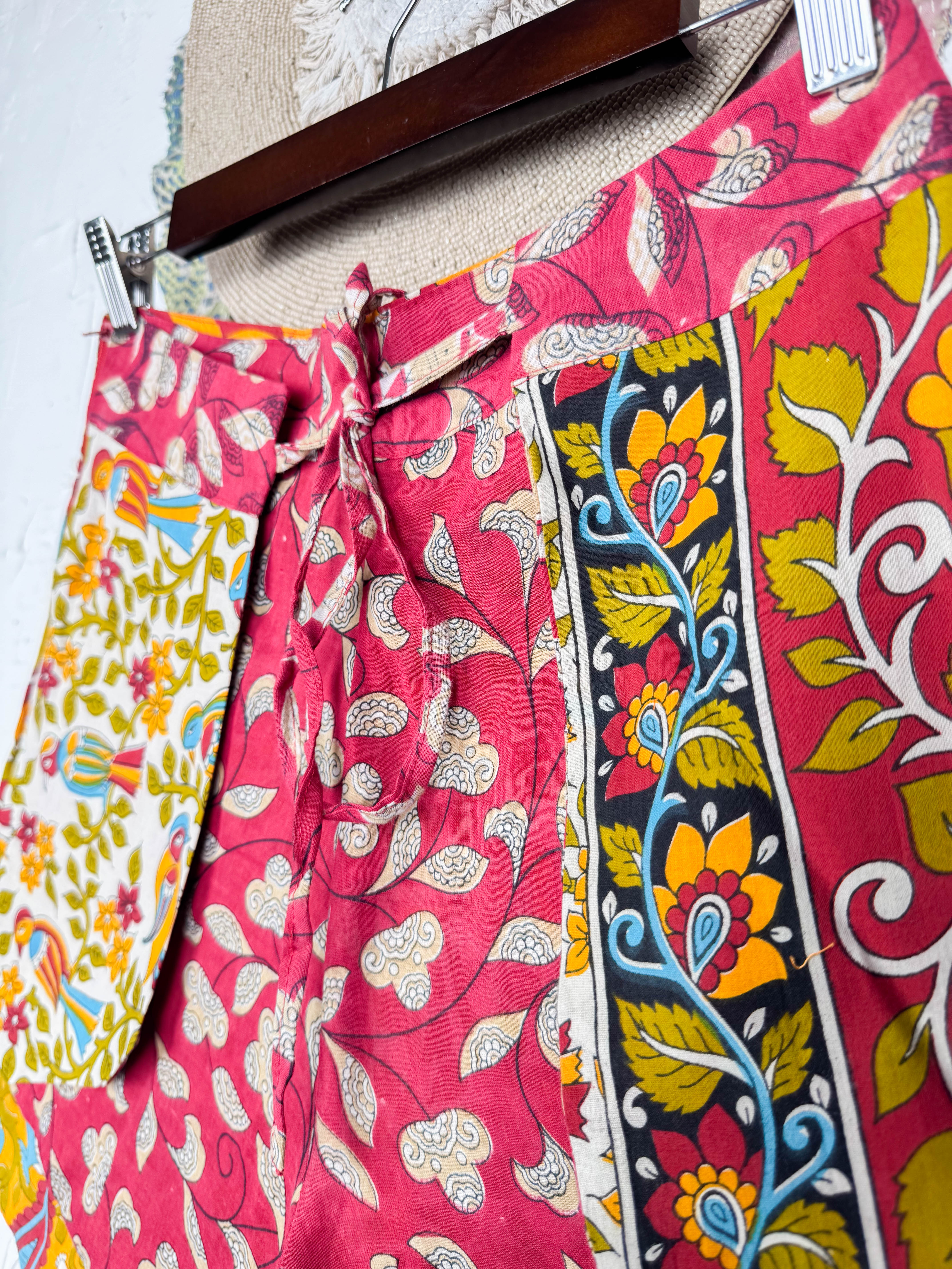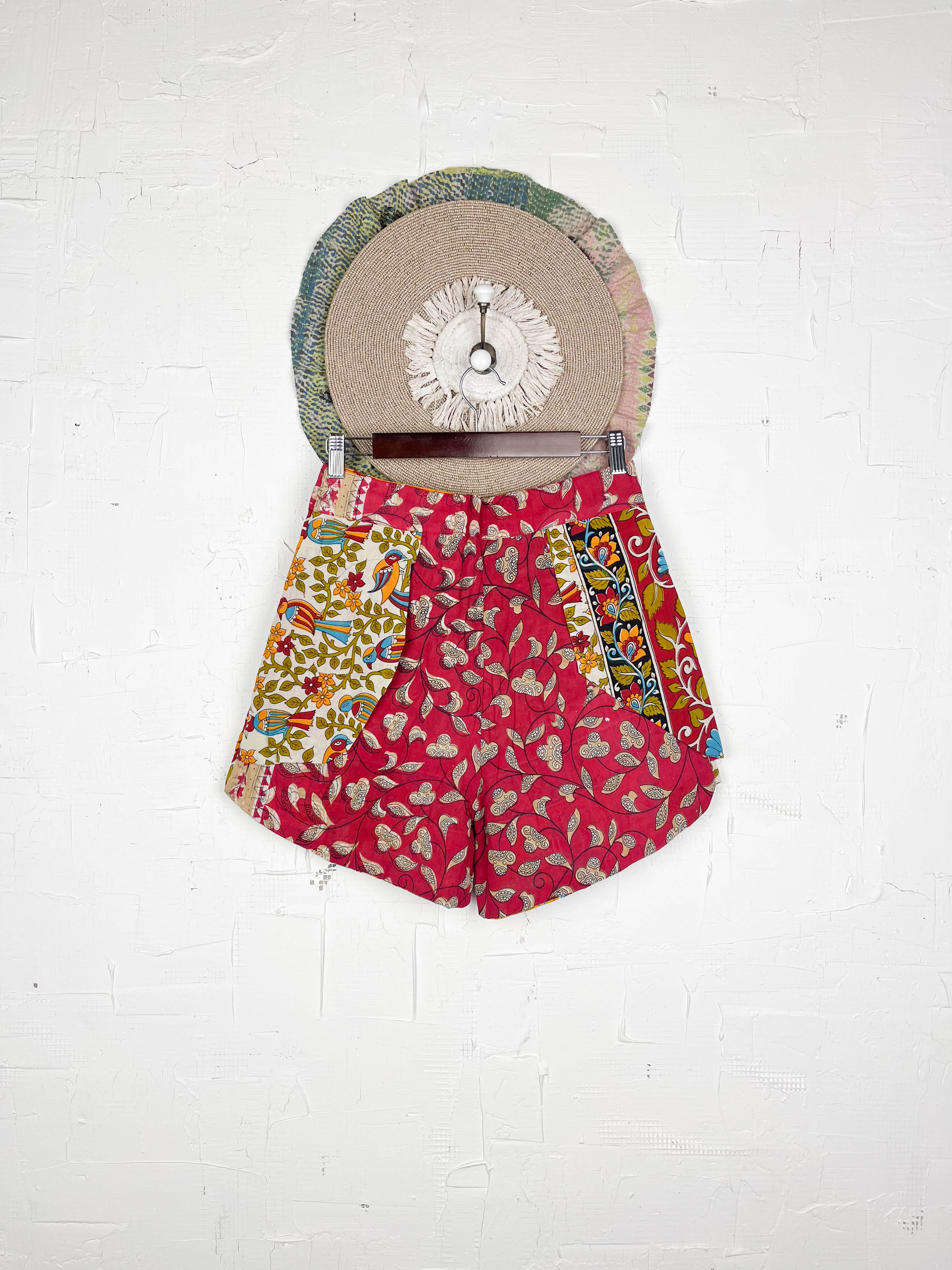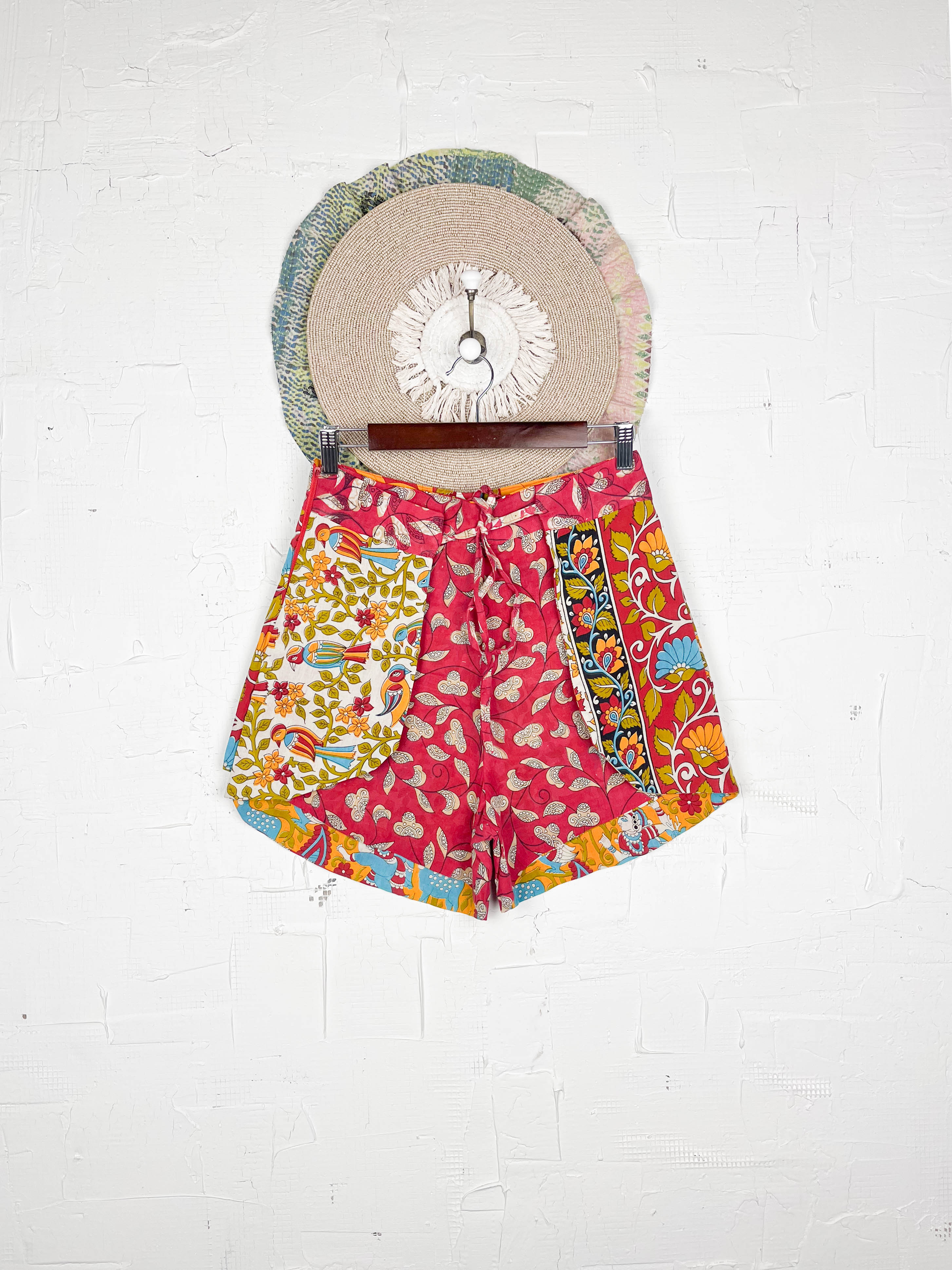 With the unique wrap style, they offer a perfect, adjustable fit that flatters every shape and size, secured with a stylish tie belt. The delightful combination of different prints and patchwork creates a fresh and playful look, ready for sunny adventures. Available in three sizes, these shorts are a celebration of individuality and joyful style