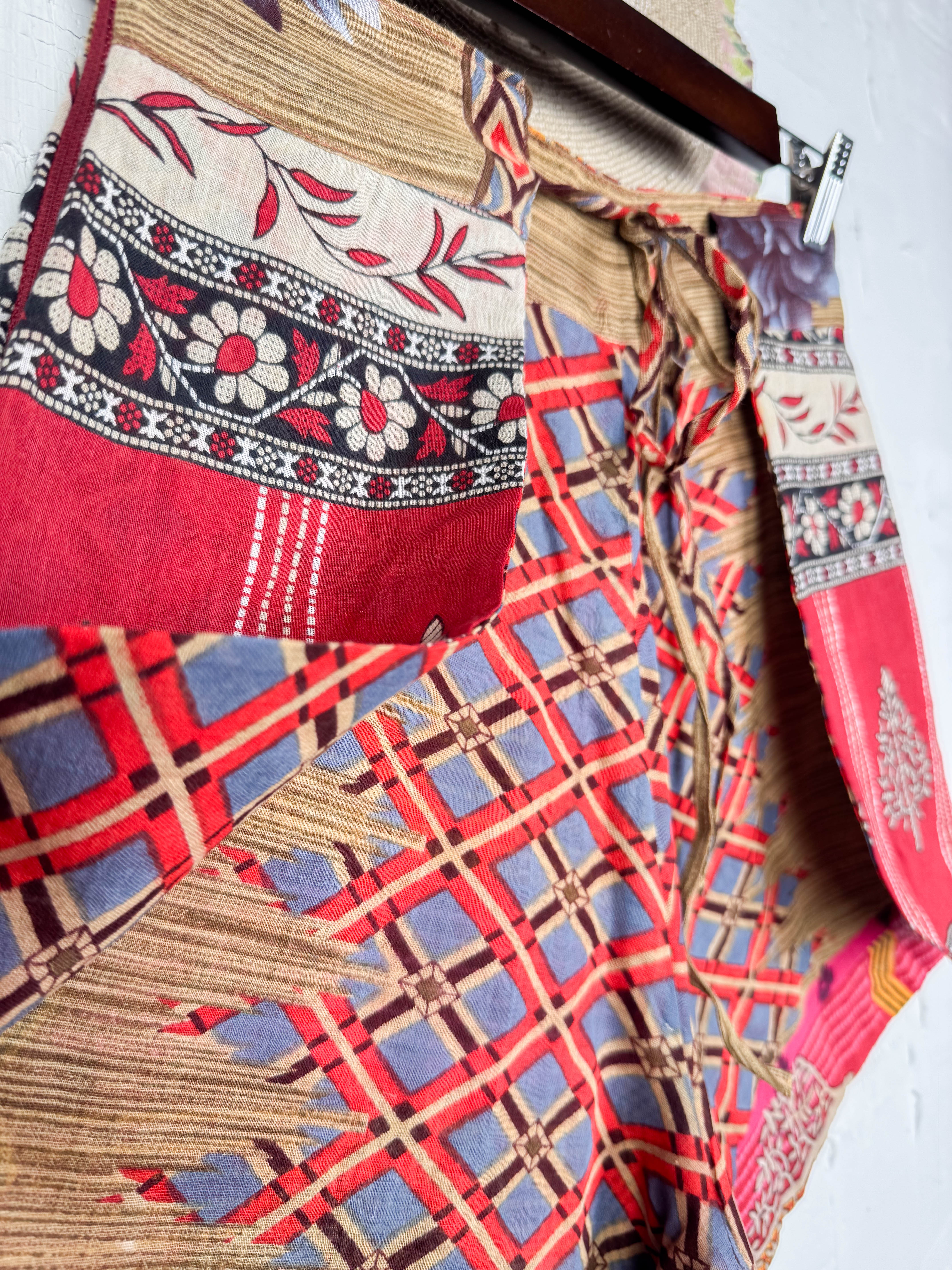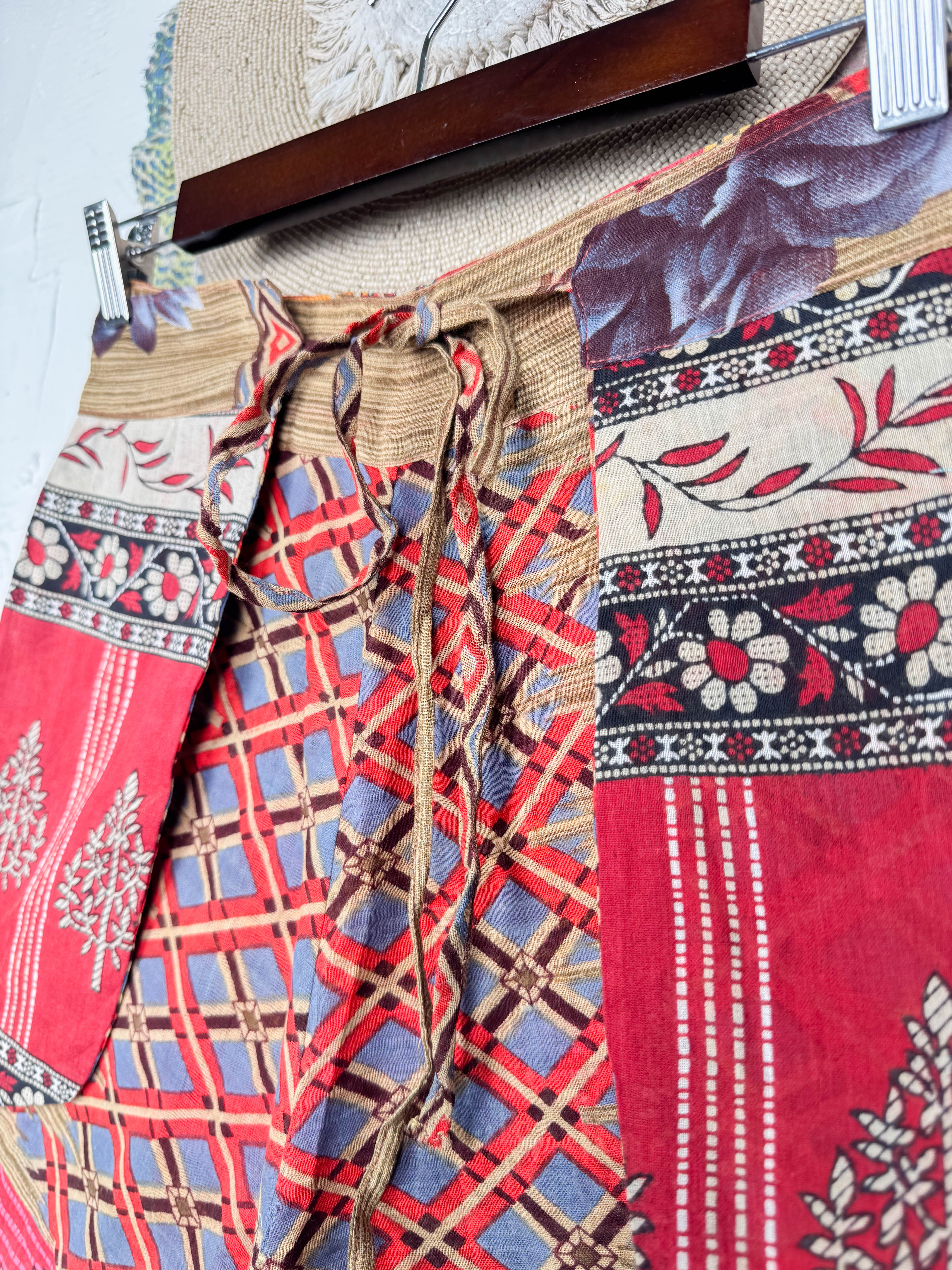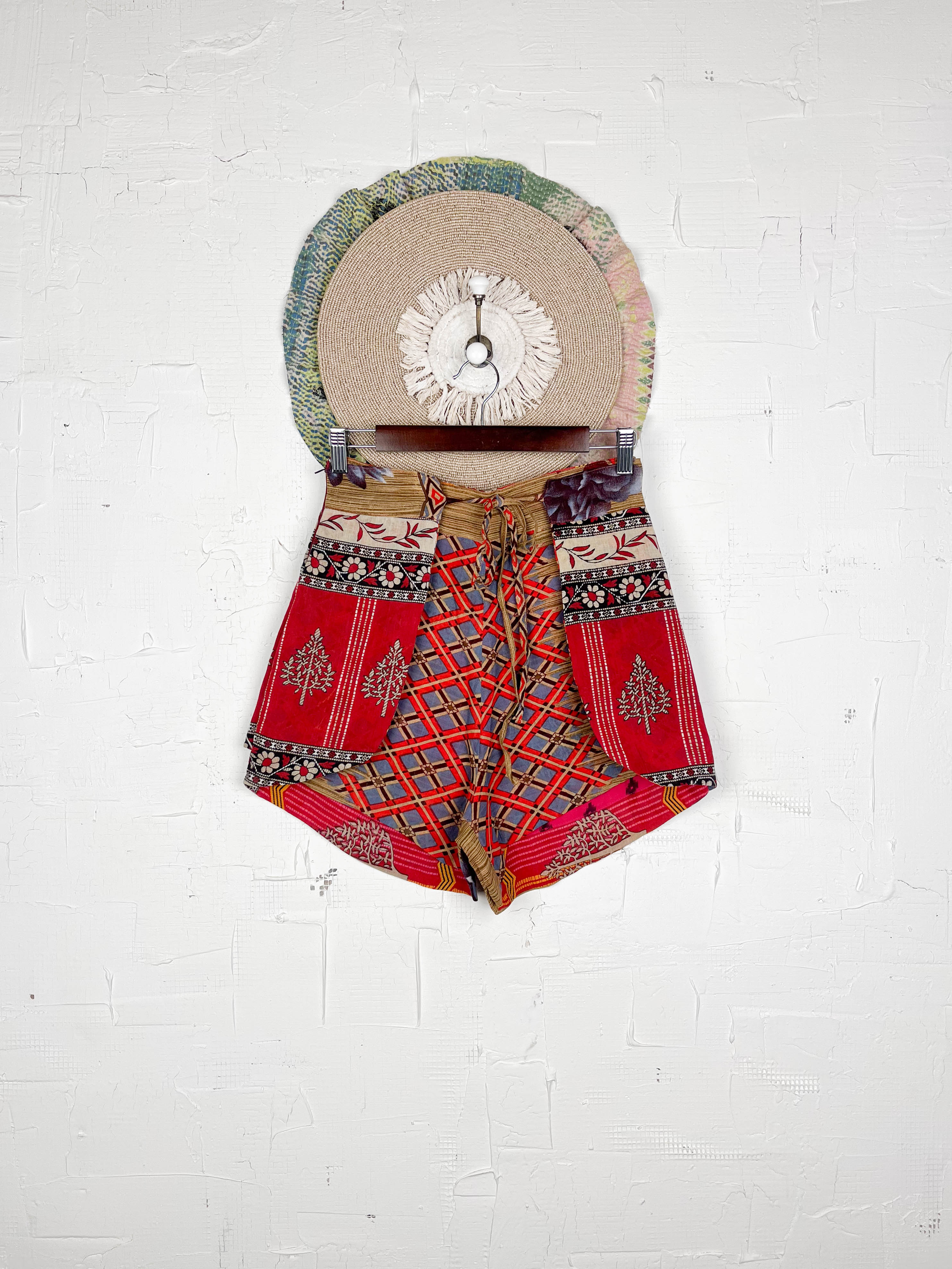 With the unique wrap style, they offer a perfect, adjustable fit that flatters every shape and size, secured with a stylish tie belt. The delightful combination of different prints and patchwork creates a fresh and playful look, ready for sunny adventures. Available in three sizes, these shorts are a celebration of individuality and joyful style