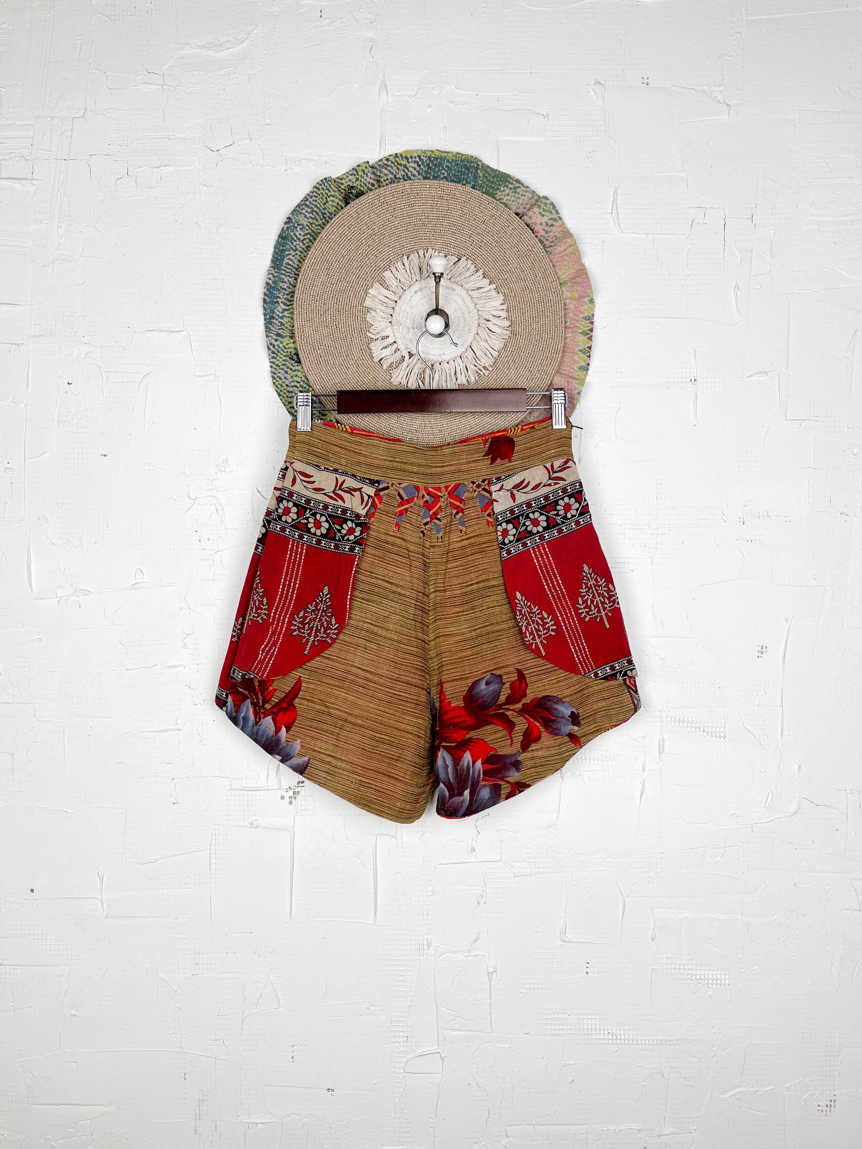Imagine slipping into shorts that feel like a summer dream, crafted from unique vintage cotton with the charm of traditional Indian floral prints. These creatively designed, breezy shorts boast a special texture and softness, unlike anything new.