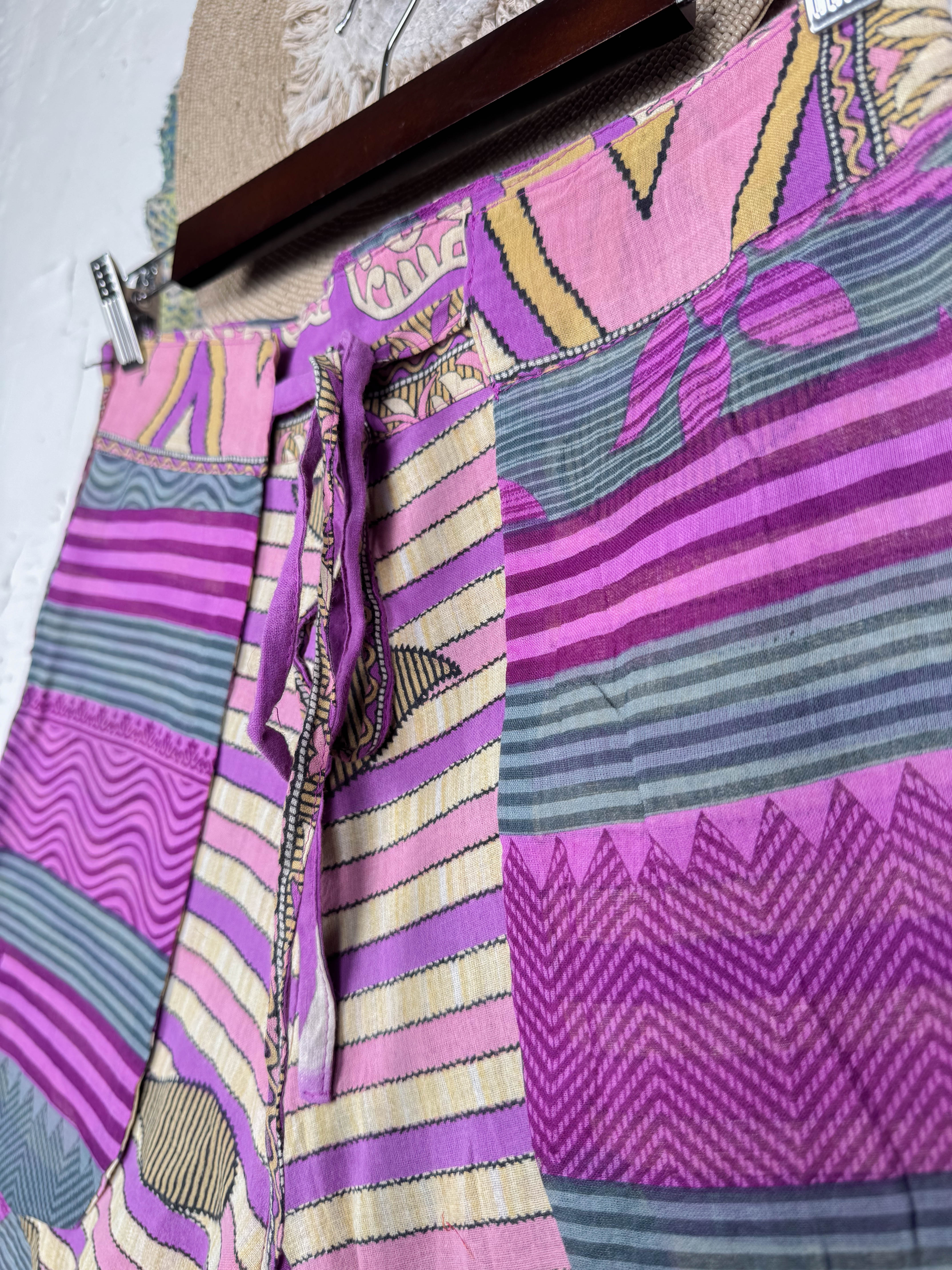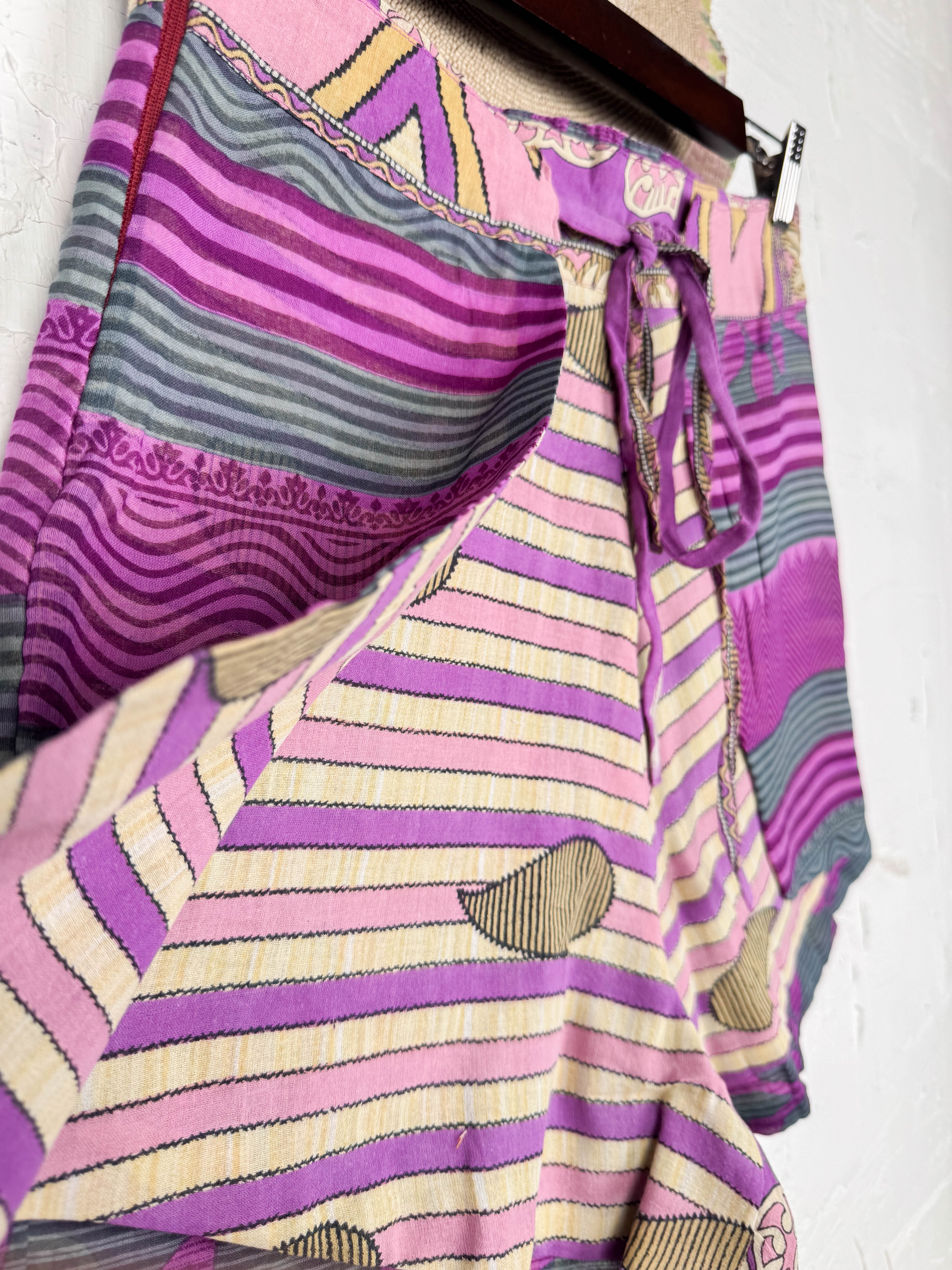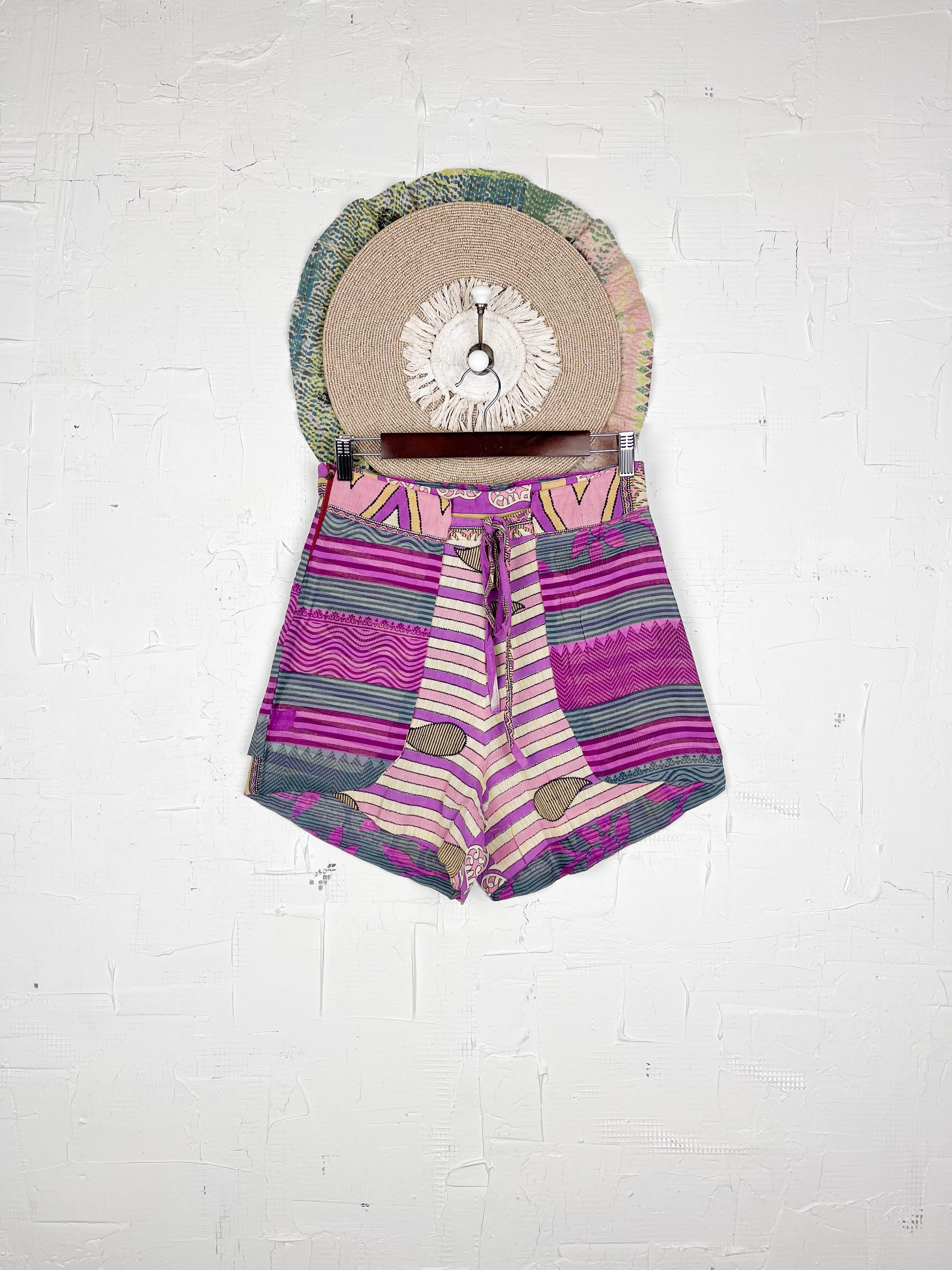 With the unique wrap style, they offer a perfect, adjustable fit that flatters every shape and size, secured with a stylish tie belt. The delightful combination of different prints and patchwork creates a fresh and playful look, ready for sunny adventures. Available in three sizes, these shorts are a celebration of individuality and joyful style