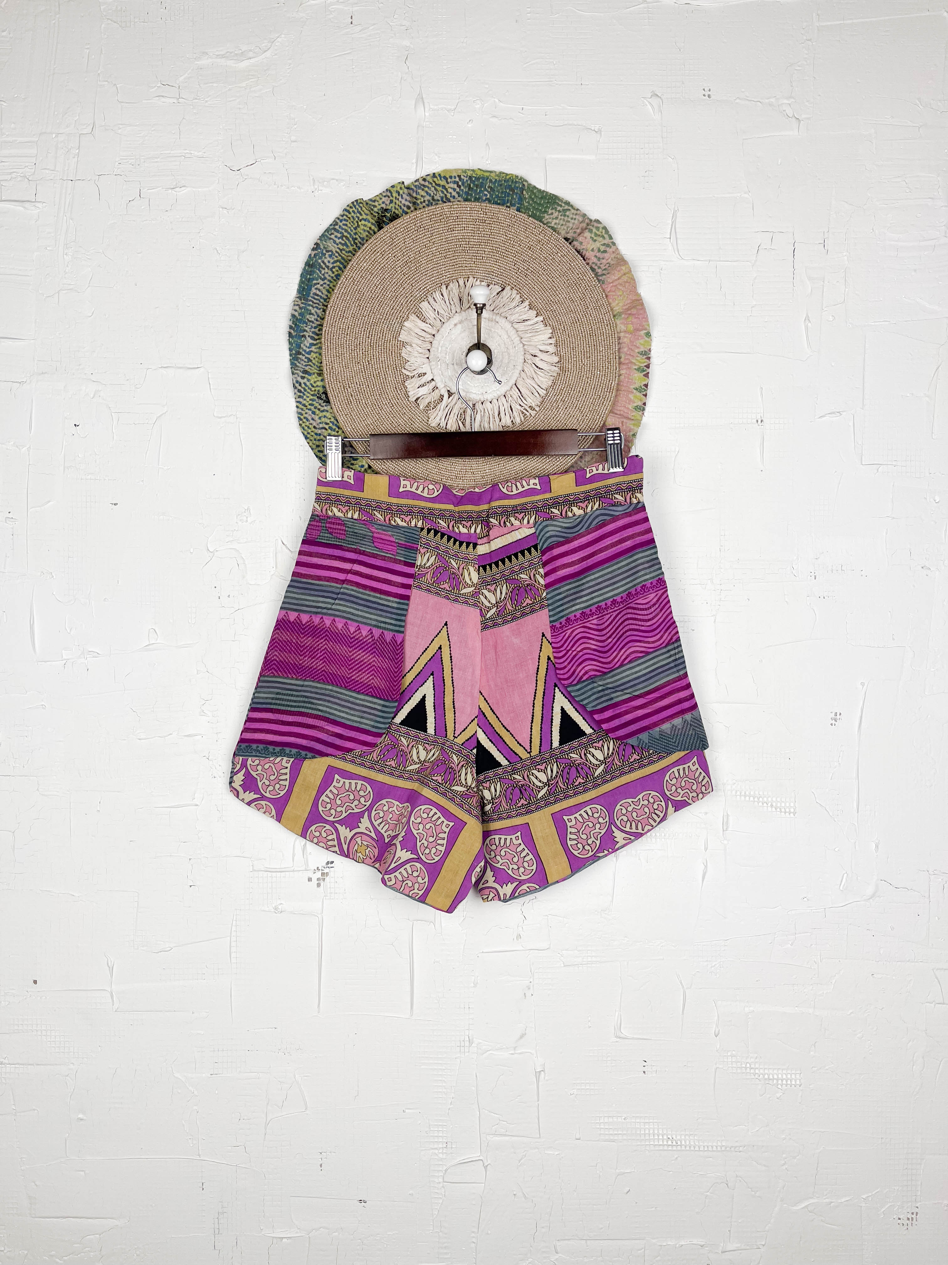 Imagine slipping into shorts that feel like a summer dream, crafted from unique vintage cotton with the charm of traditional Indian floral prints. These creatively designed, breezy shorts boast a special texture and softness, unlike anything new.