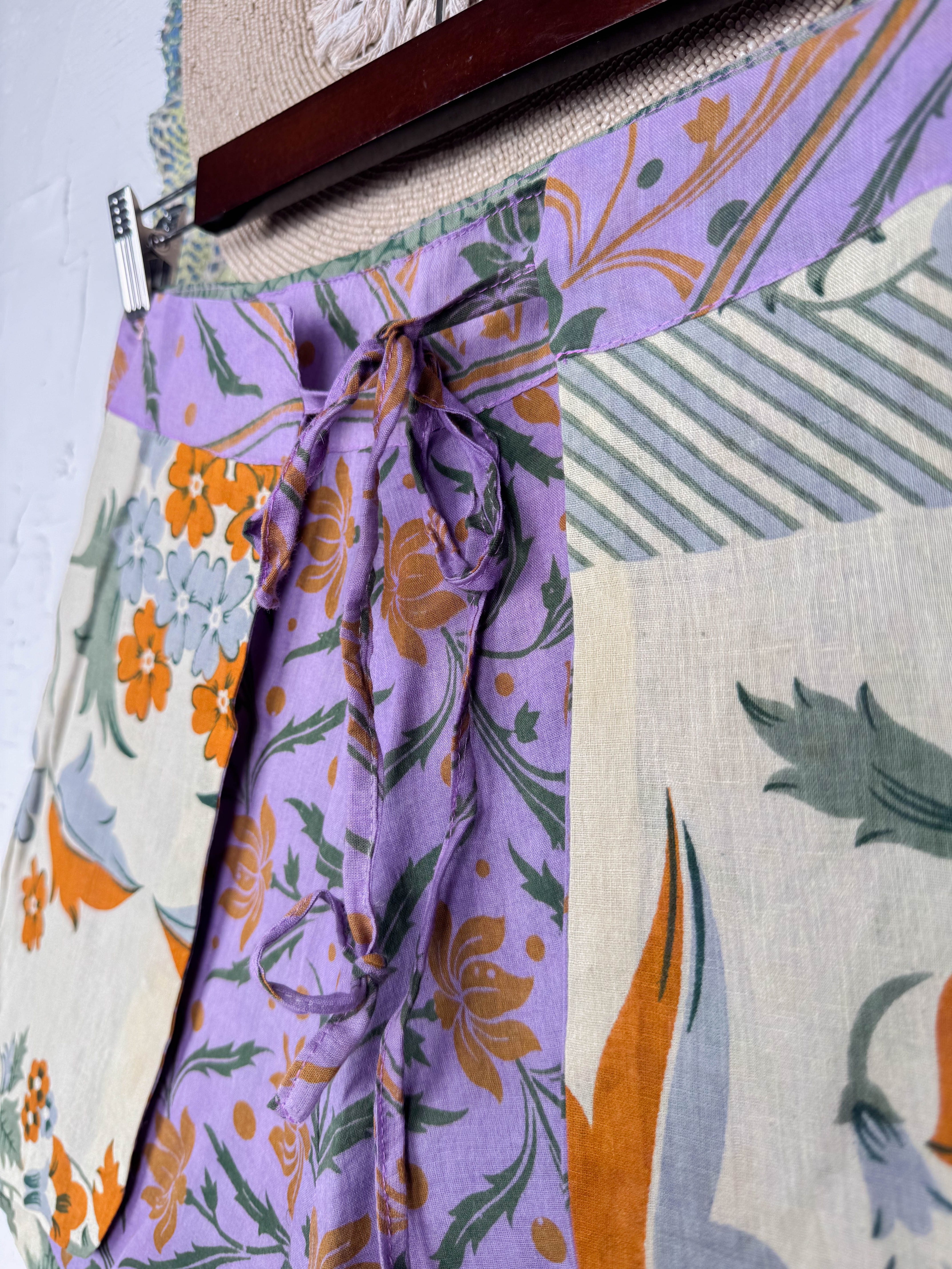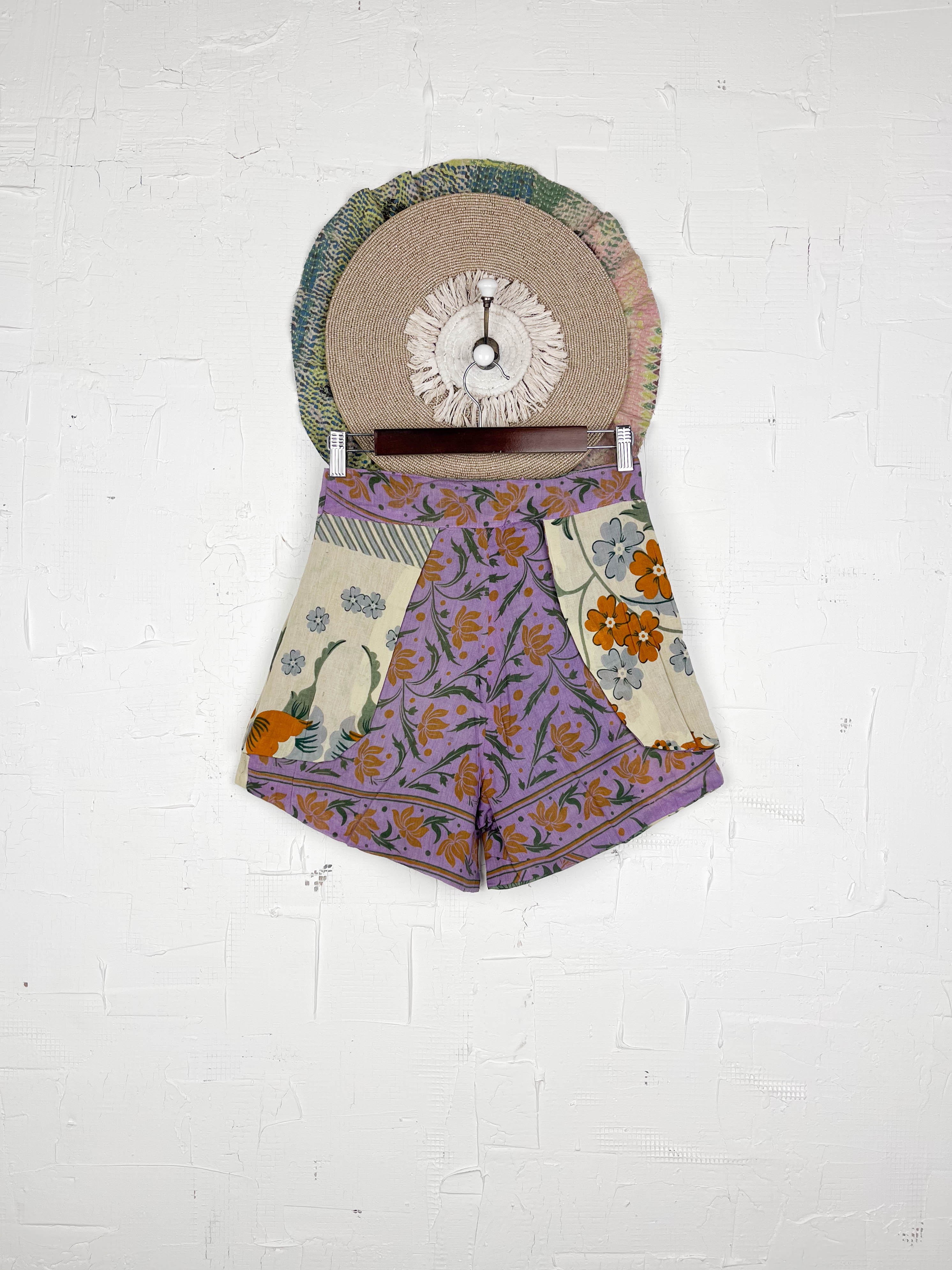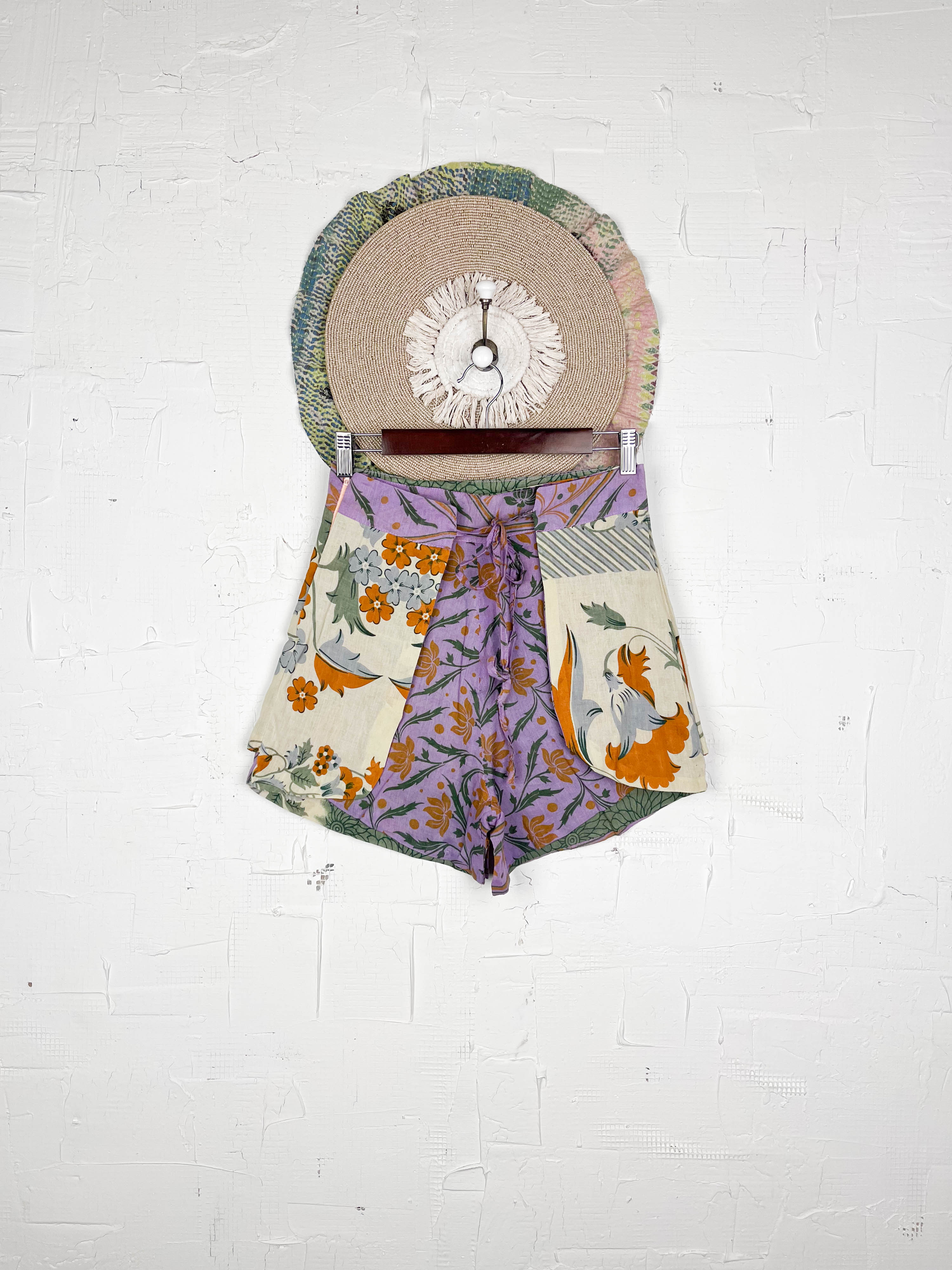 With the unique wrap style, they offer a perfect, adjustable fit that flatters every shape and size, secured with a stylish tie belt. The delightful combination of different prints and patchwork creates a fresh and playful look, ready for sunny adventures. Available in three sizes, these shorts are a celebration of individuality and joyful style
