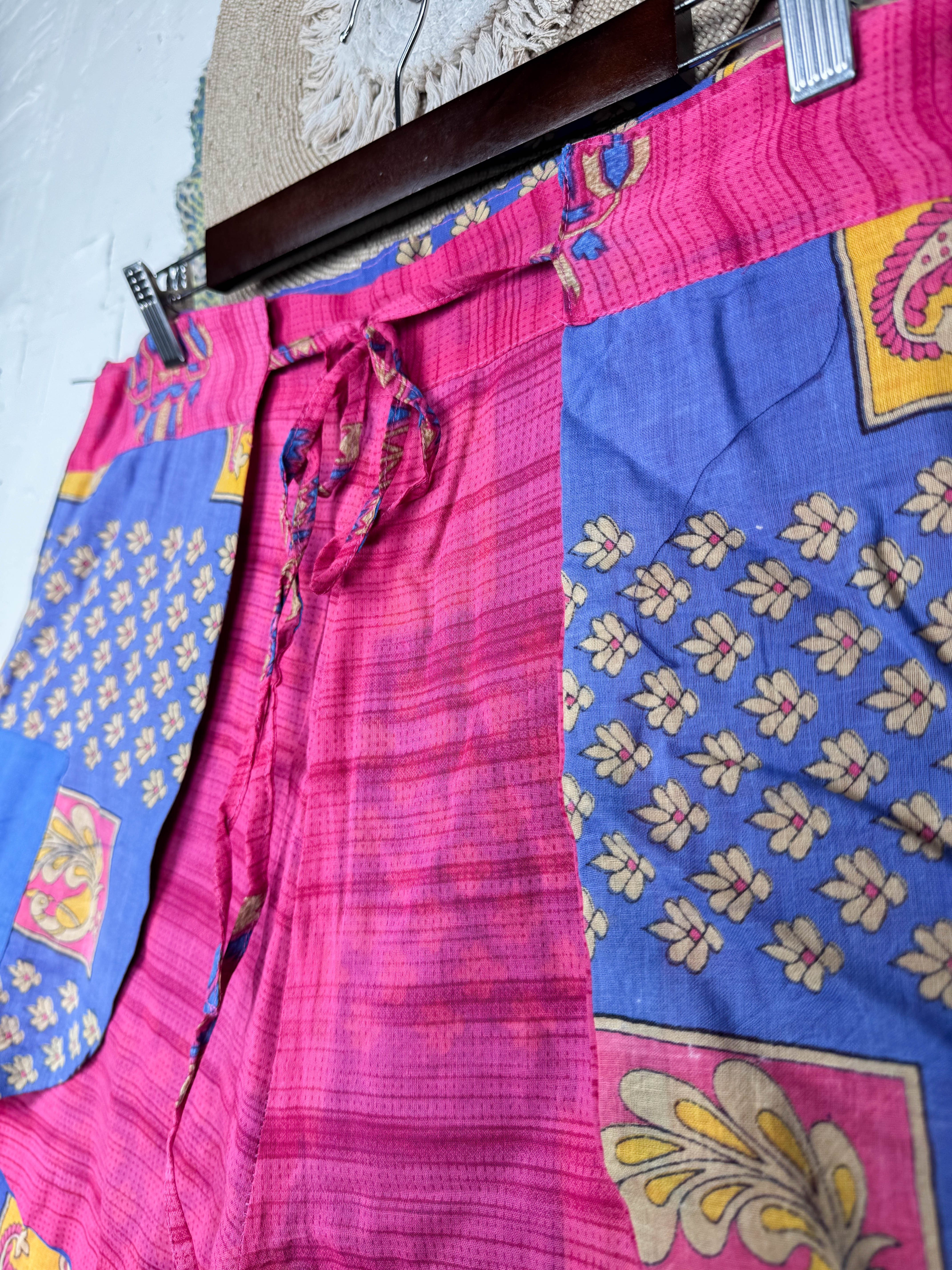 With the unique wrap style, they offer a perfect, adjustable fit that flatters every shape and size, secured with a stylish tie belt. The delightful combination of different prints and patchwork creates a fresh and playful look, ready for sunny adventures. Available in three sizes, these shorts are a celebration of individuality and joyful style