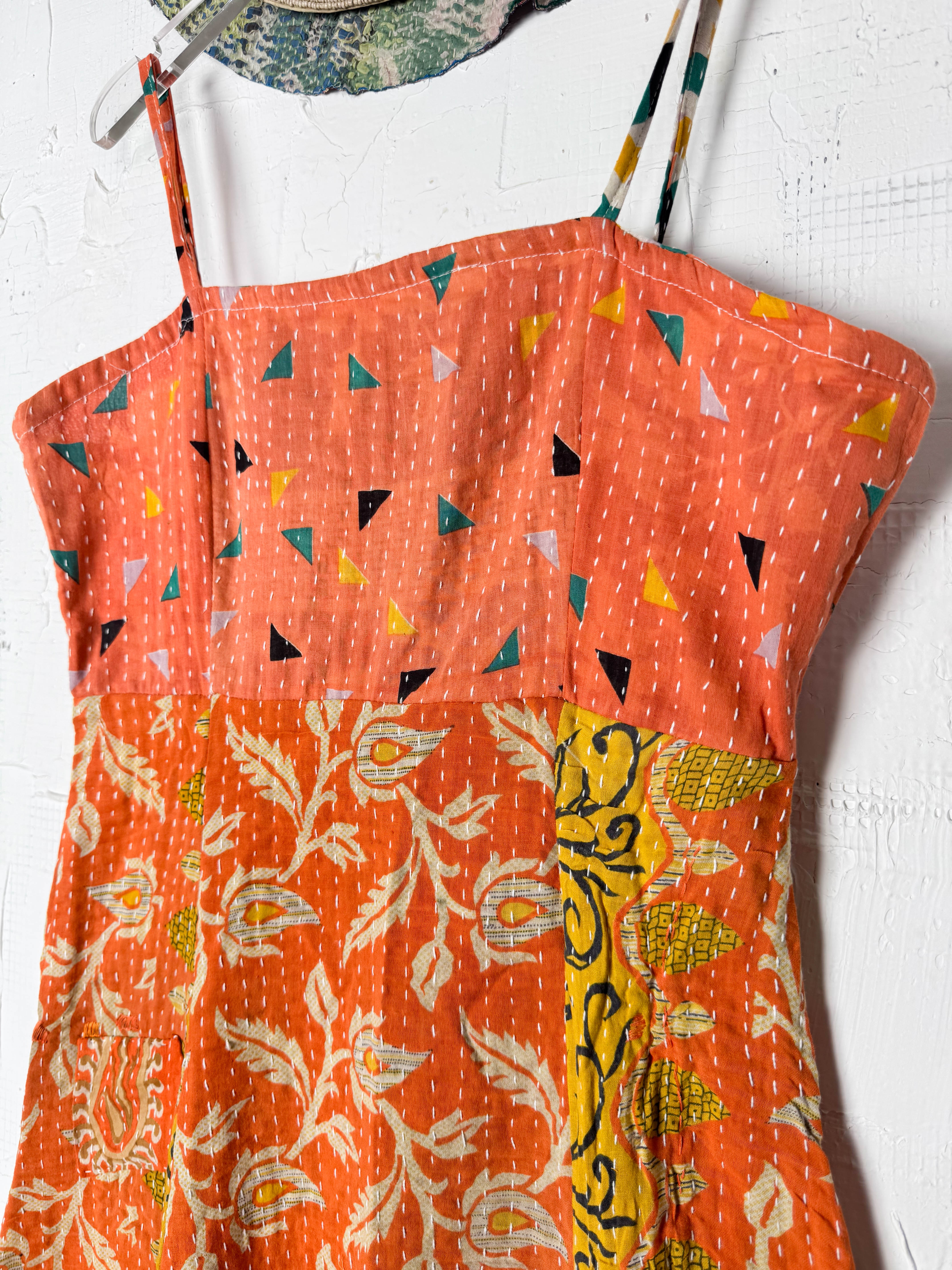 Designed to celebrate your silhouette, this midi-length Kantha dress drapes and flows with graceful movement. Crafted from carefully selected Kantha patchwork, each piece showcases a delightful variation in underlying prints and colours, making yours truly one-of-a-kind