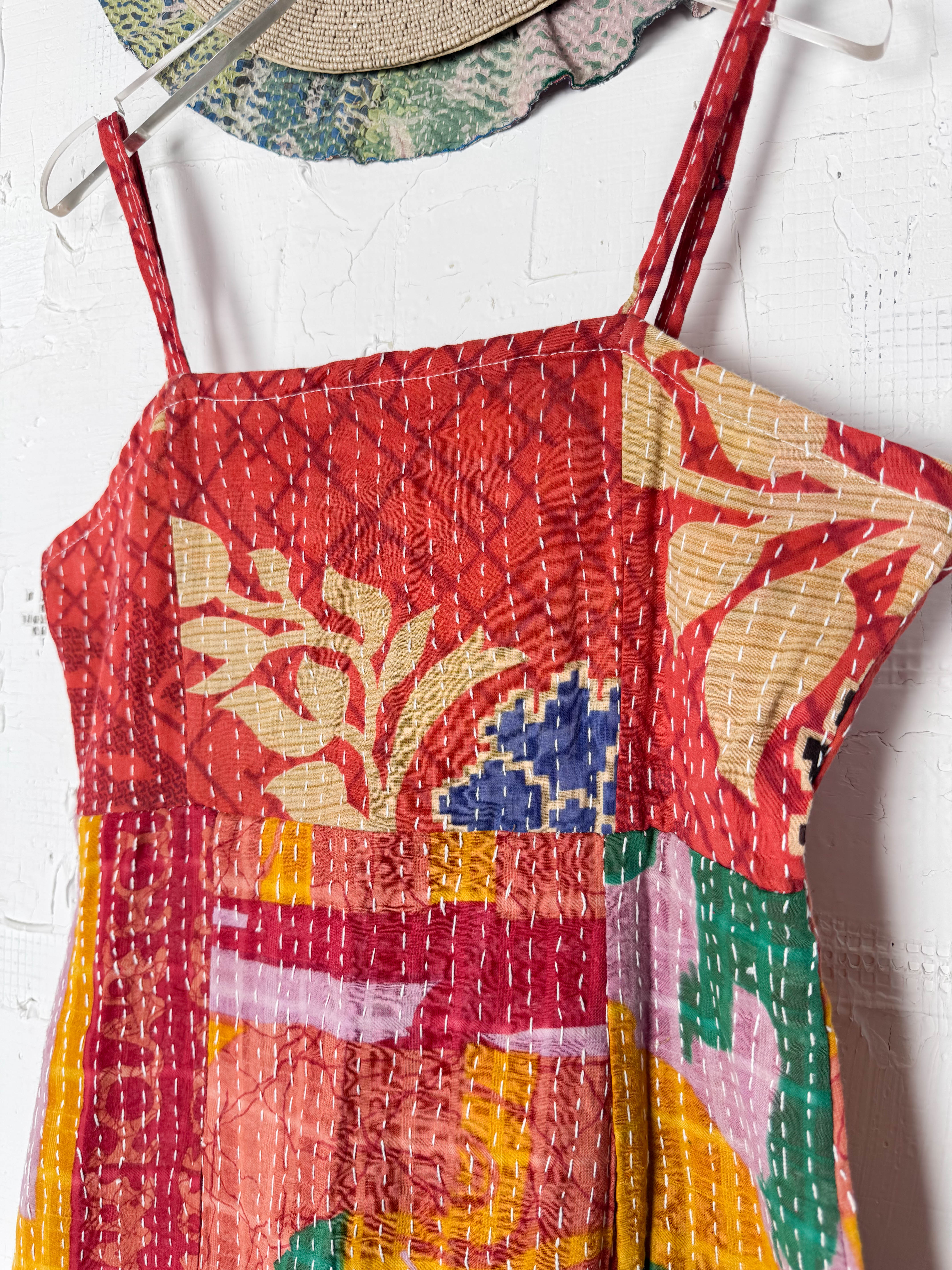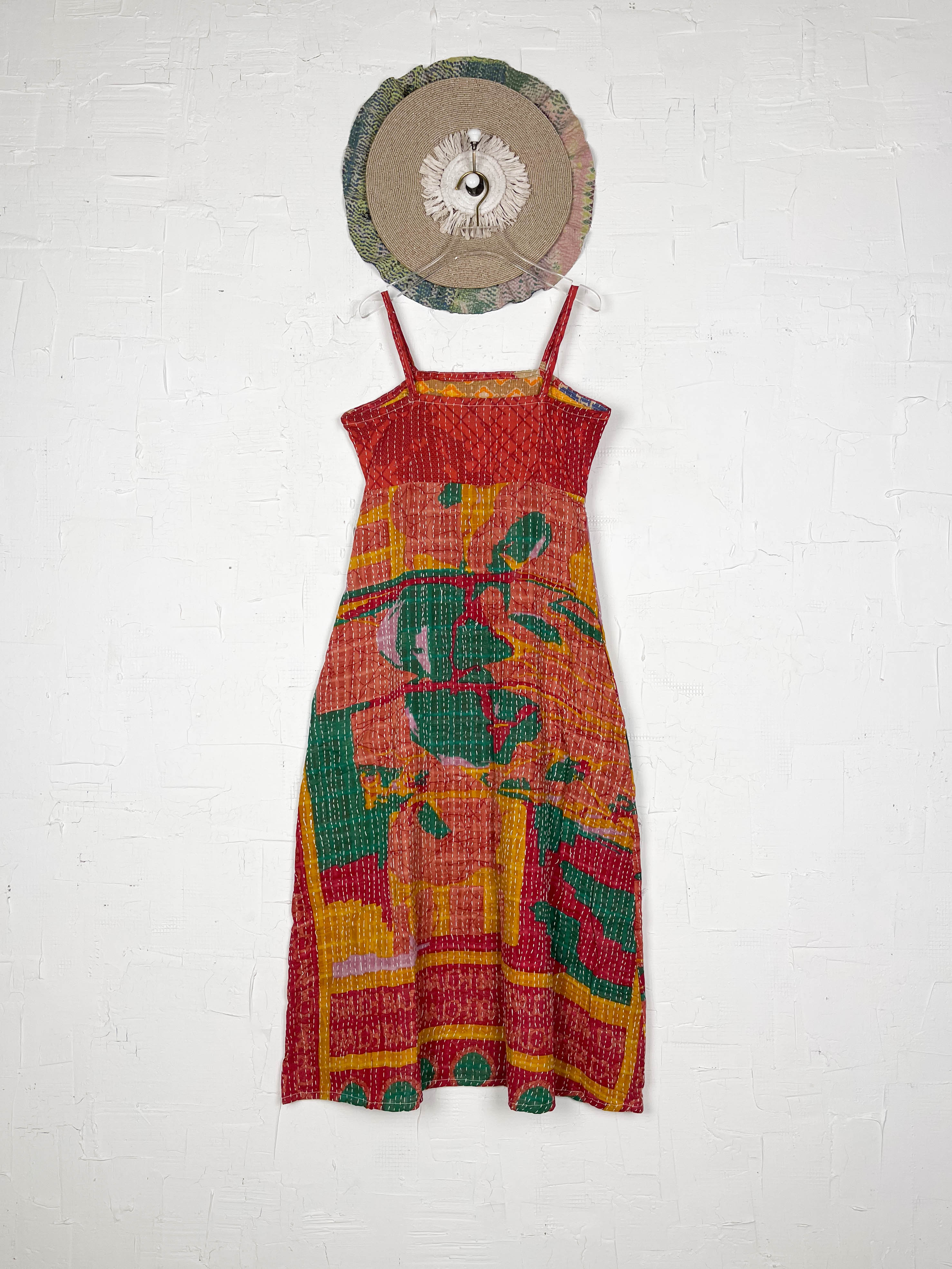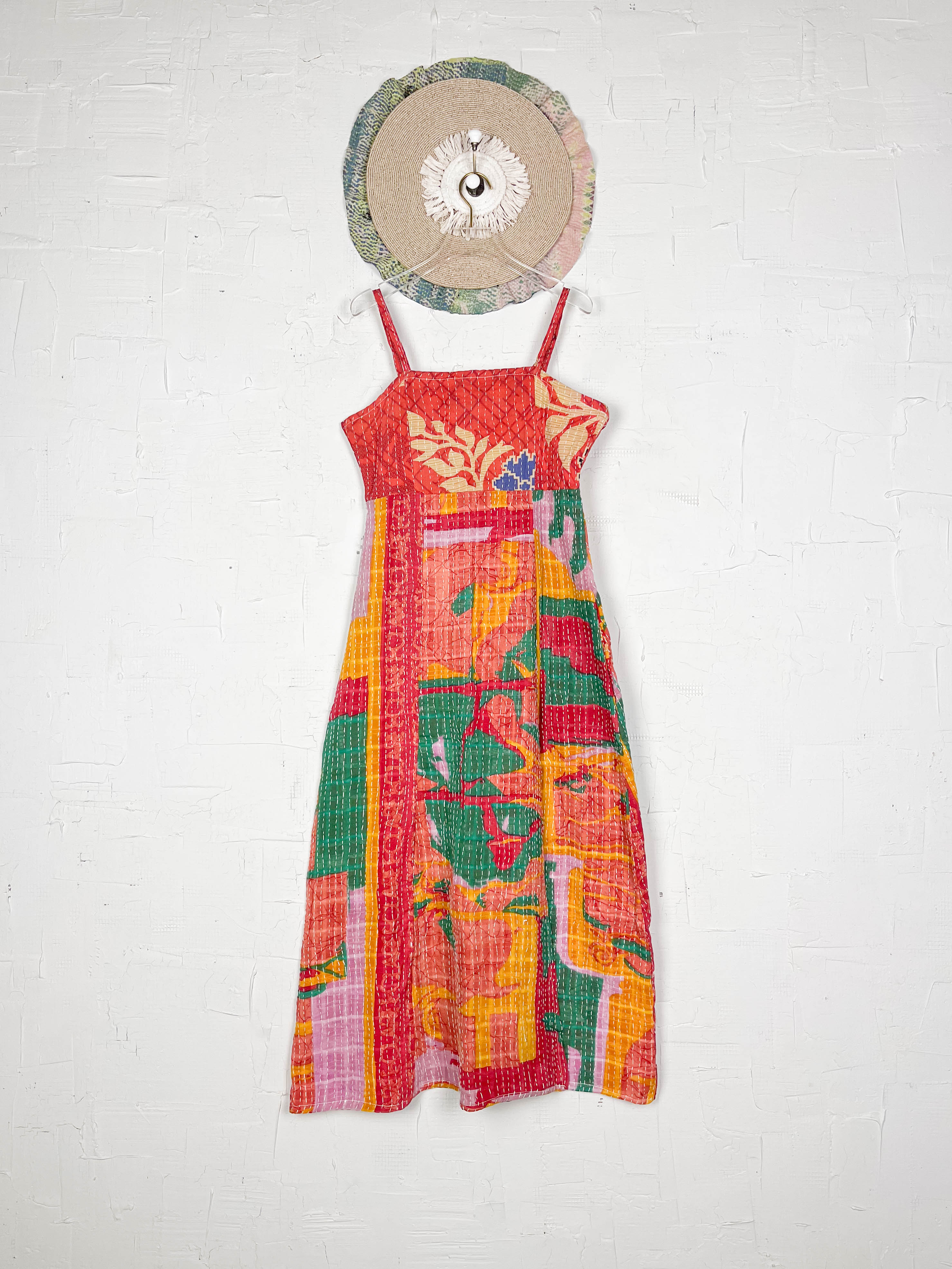 Designed to celebrate your silhouette, this midi-length Kantha dress drapes and flows with graceful movement. Crafted from carefully selected Kantha patchwork, each piece showcases a delightful variation in underlying prints and colours, making yours truly one-of-a-kind