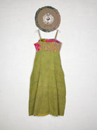 Envelop yourself in the artistry of this vintage Kantha dress. Each running stitch tells a story across the lightweight fabric, creating a unique texture and a beautifully airy feel. A long slit graces the left side, adding a touch of distinctive charm. Experience the seamless harmony of traditional hand craftsmanship and everyday ease to enhance your Playful feminine essence every day!