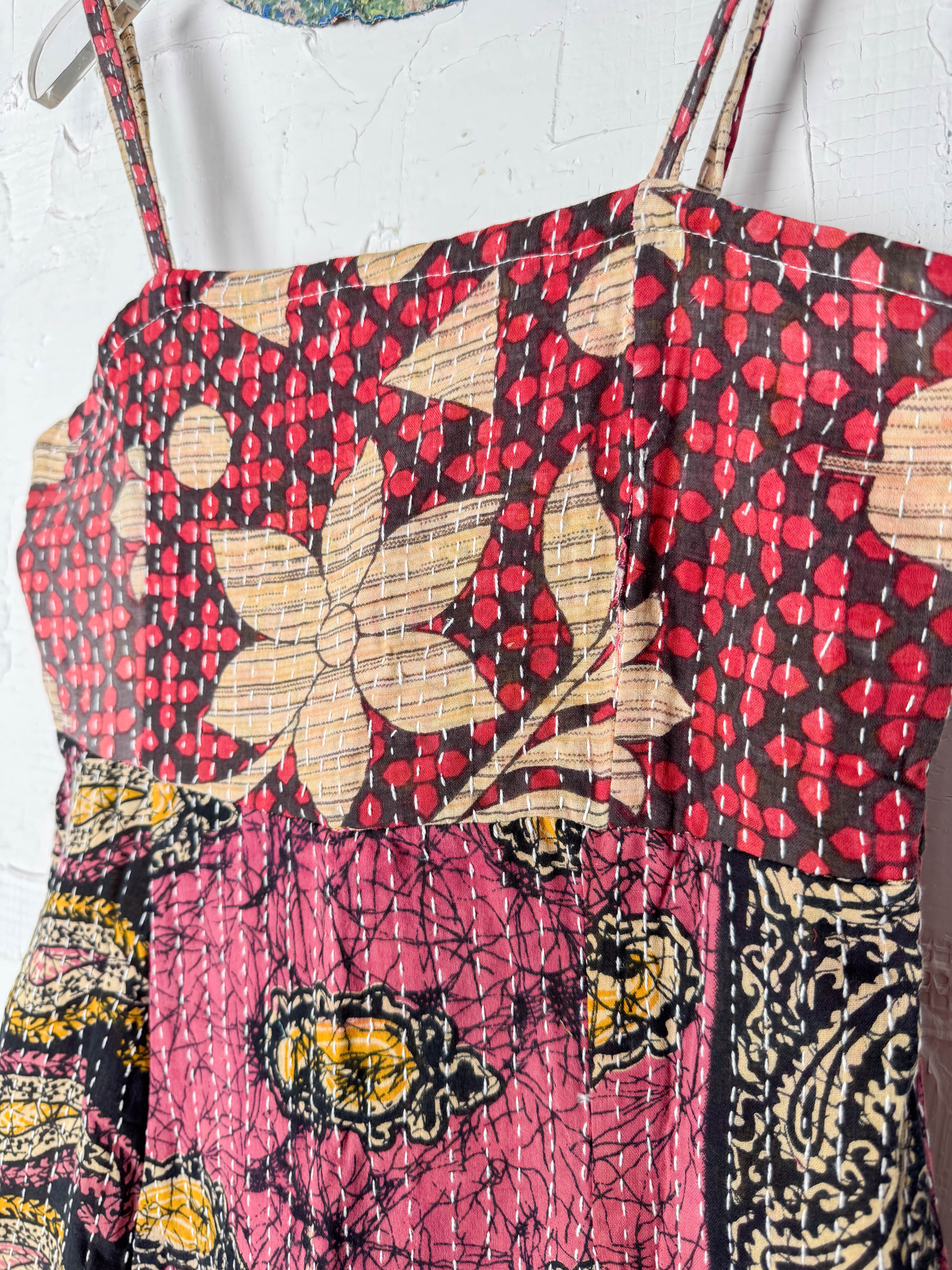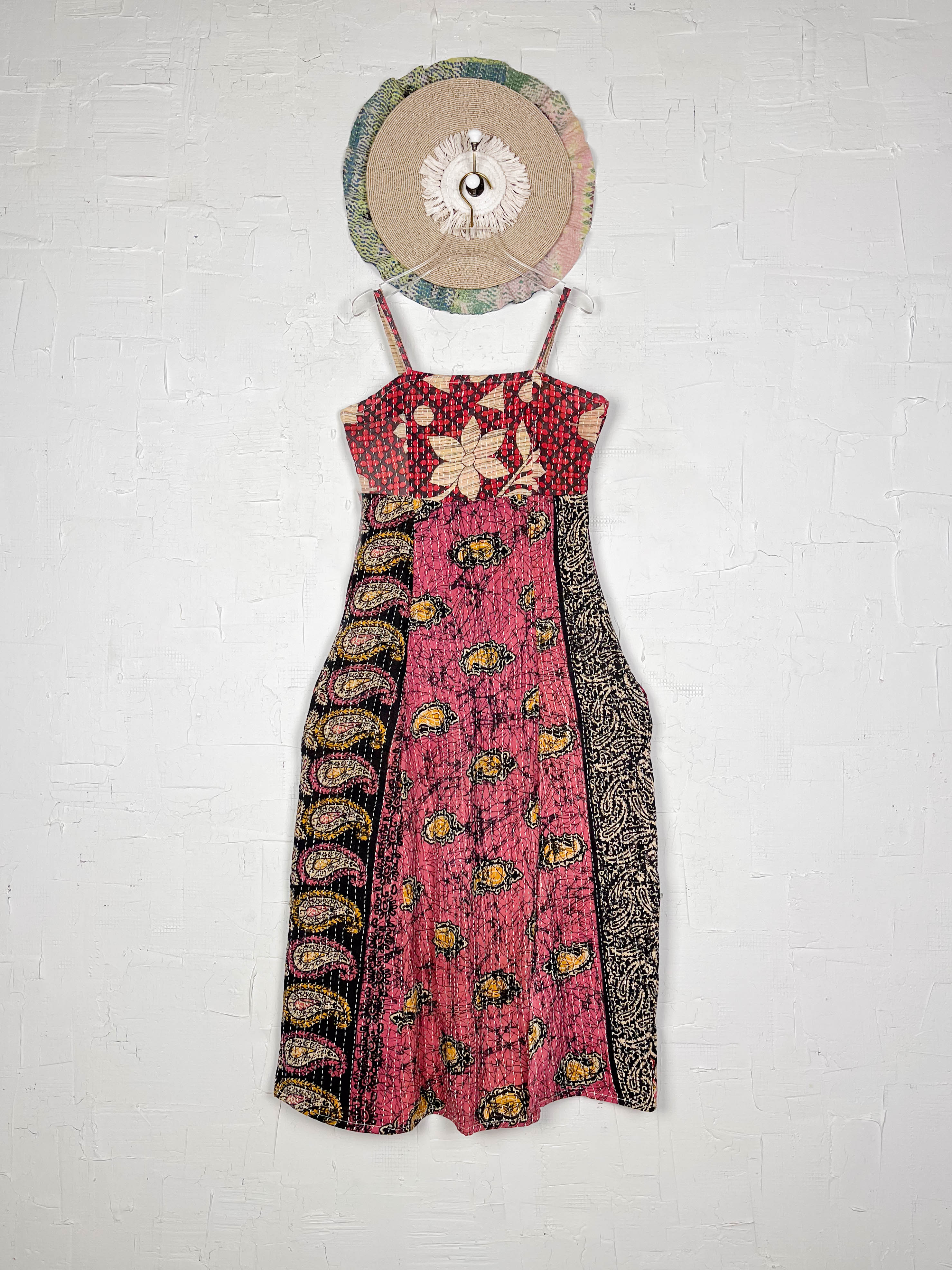 Designed to celebrate your silhouette, this midi-length Kantha dress drapes and flows with graceful movement. Crafted from carefully selected Kantha patchwork, each piece showcases a delightful variation in underlying prints and colours, making yours truly one-of-a-kind
