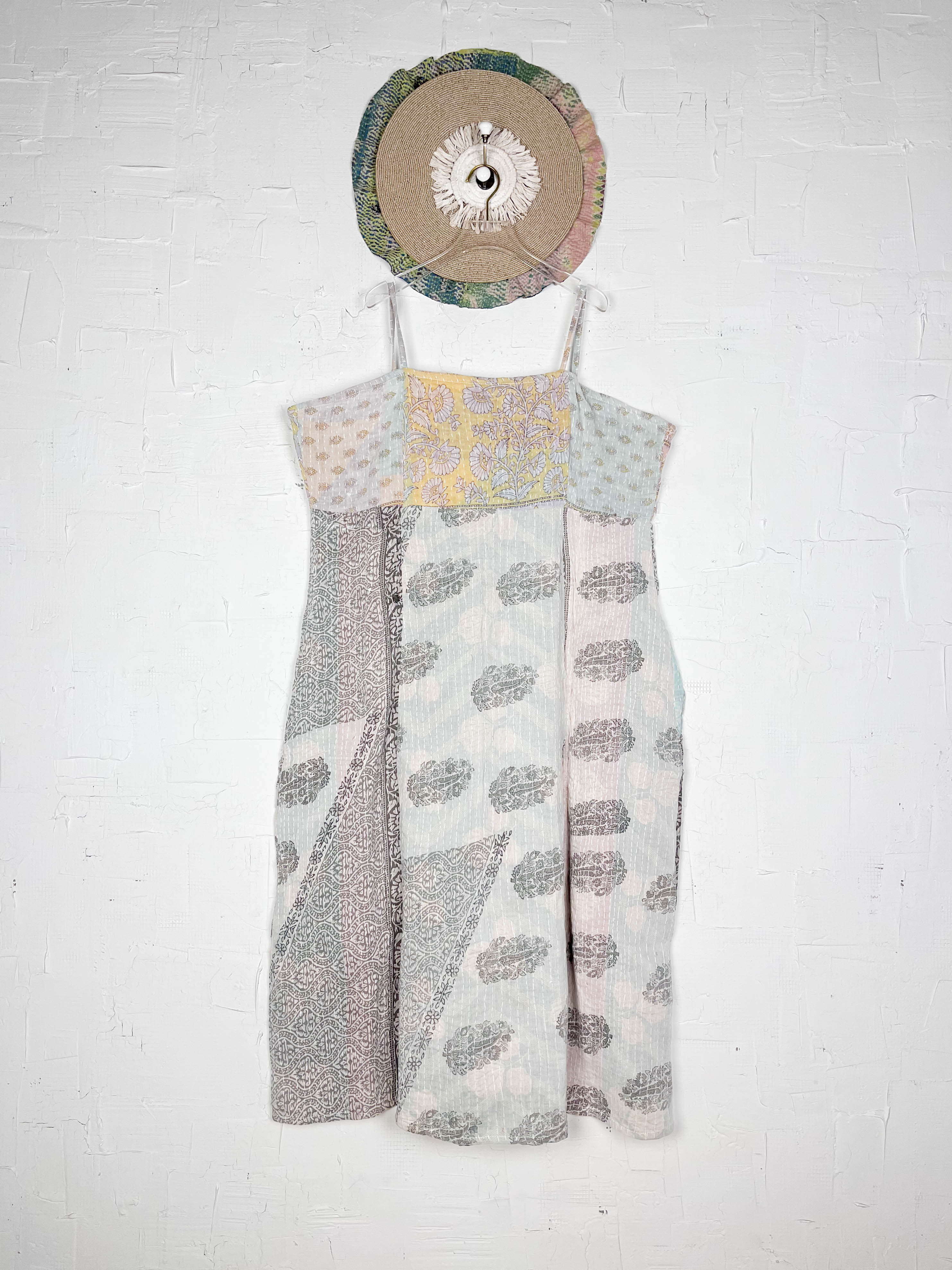 Designed to celebrate your silhouette, this midi-length Kantha dress drapes and flows with graceful movement. Crafted from carefully selected Kantha patchwork, each piece showcases a delightful variation in underlying prints and colours, making yours truly one-of-a-kind