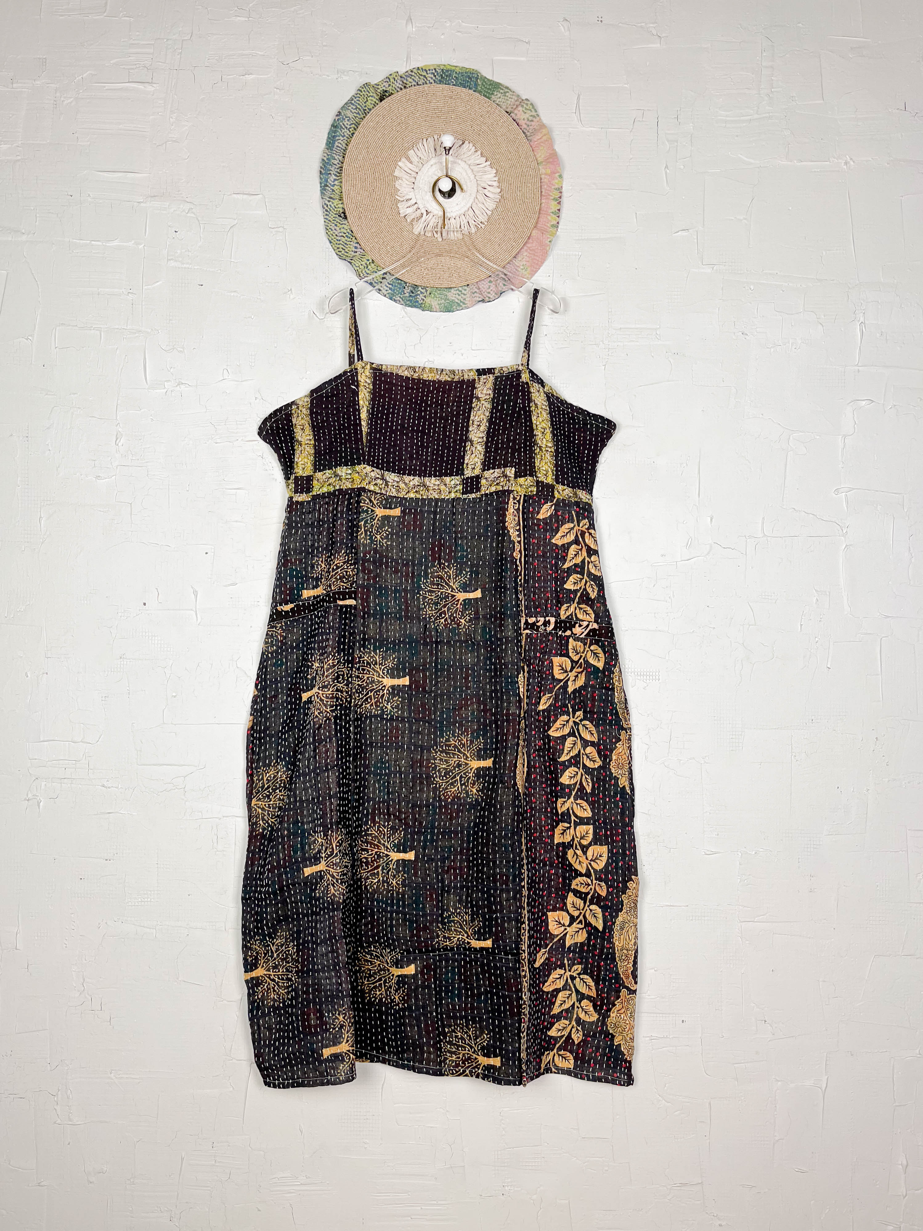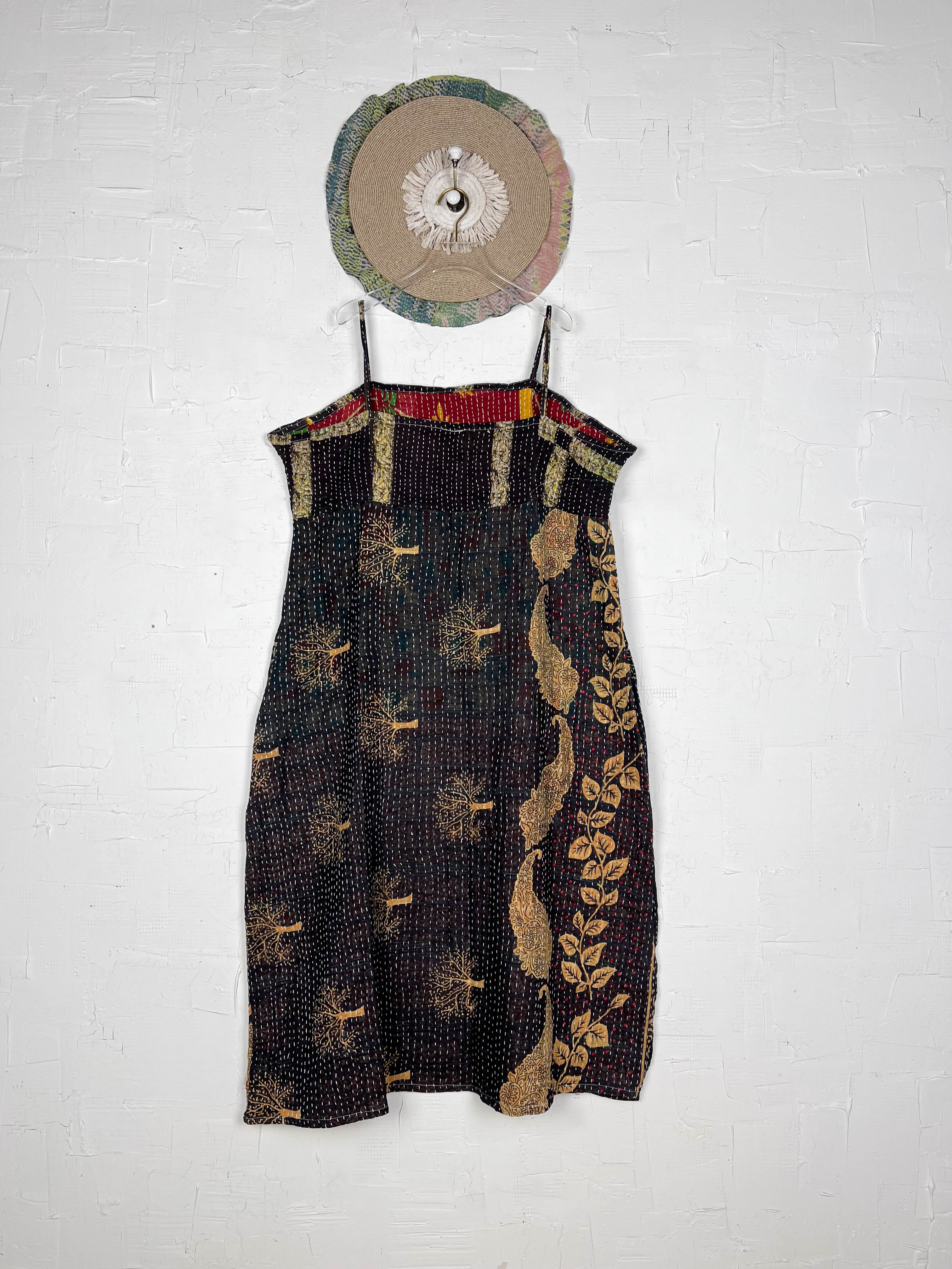 Designed to celebrate your silhouette, this midi-length Kantha dress drapes and flows with graceful movement. Crafted from carefully selected Kantha patchwork, each piece showcases a delightful variation in underlying prints and colours, making yours truly one-of-a-kind