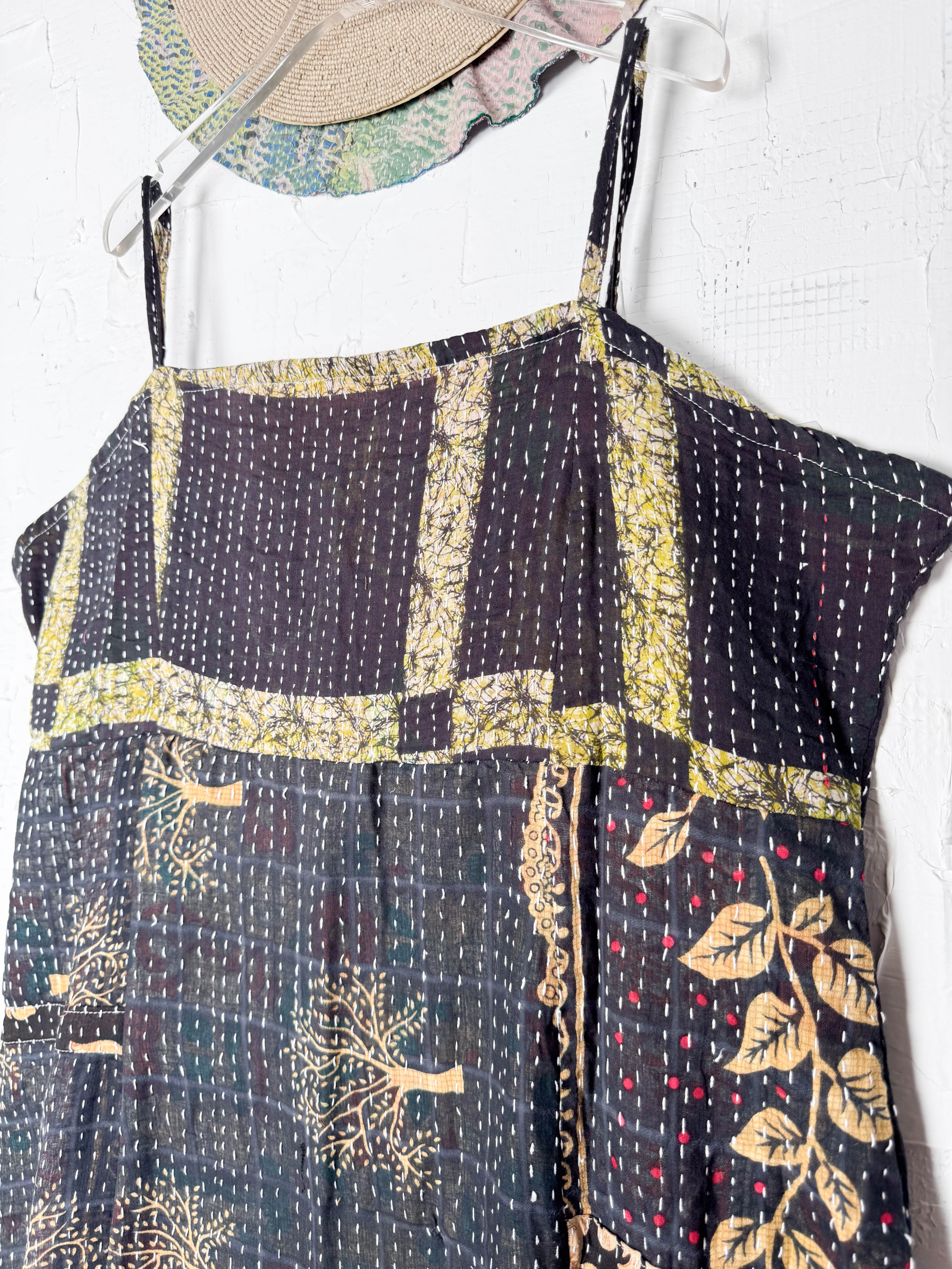 Kantha Strap Long Dress Floral Black Dark
