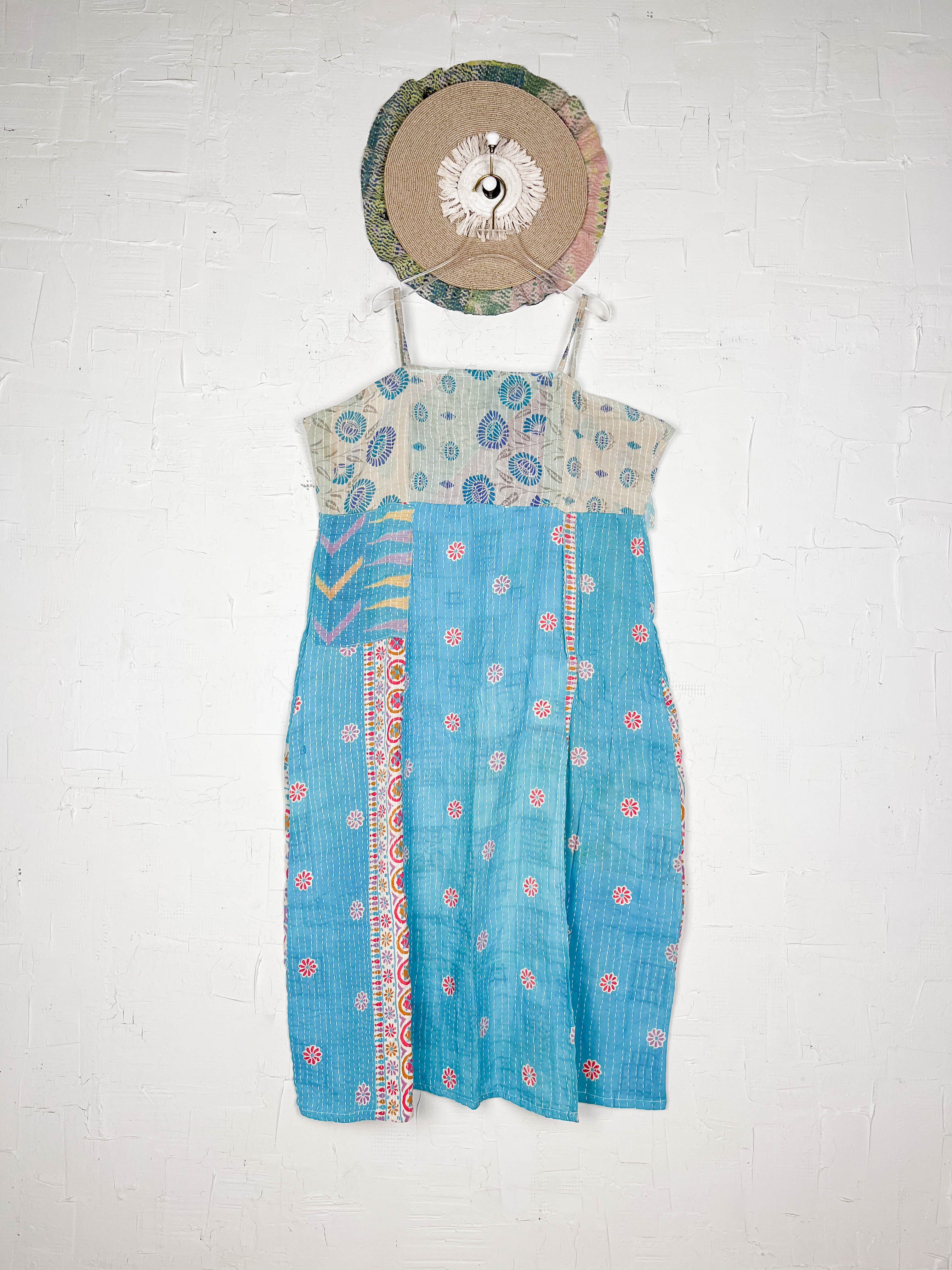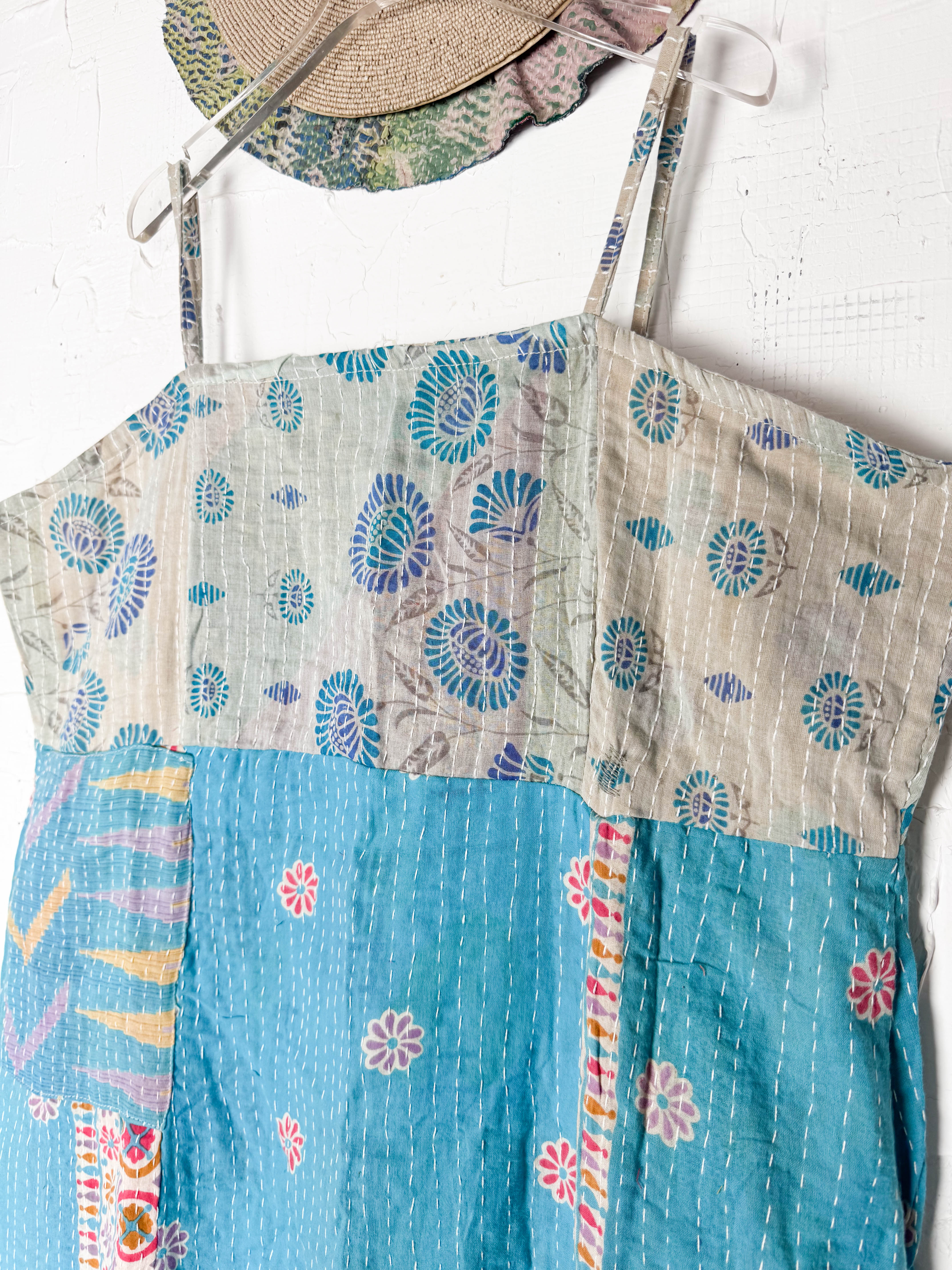 Designed to celebrate your silhouette, this midi-length Kantha dress drapes and flows with graceful movement. Crafted from carefully selected Kantha patchwork, each piece showcases a delightful variation in underlying prints and colours, making yours truly one-of-a-kind