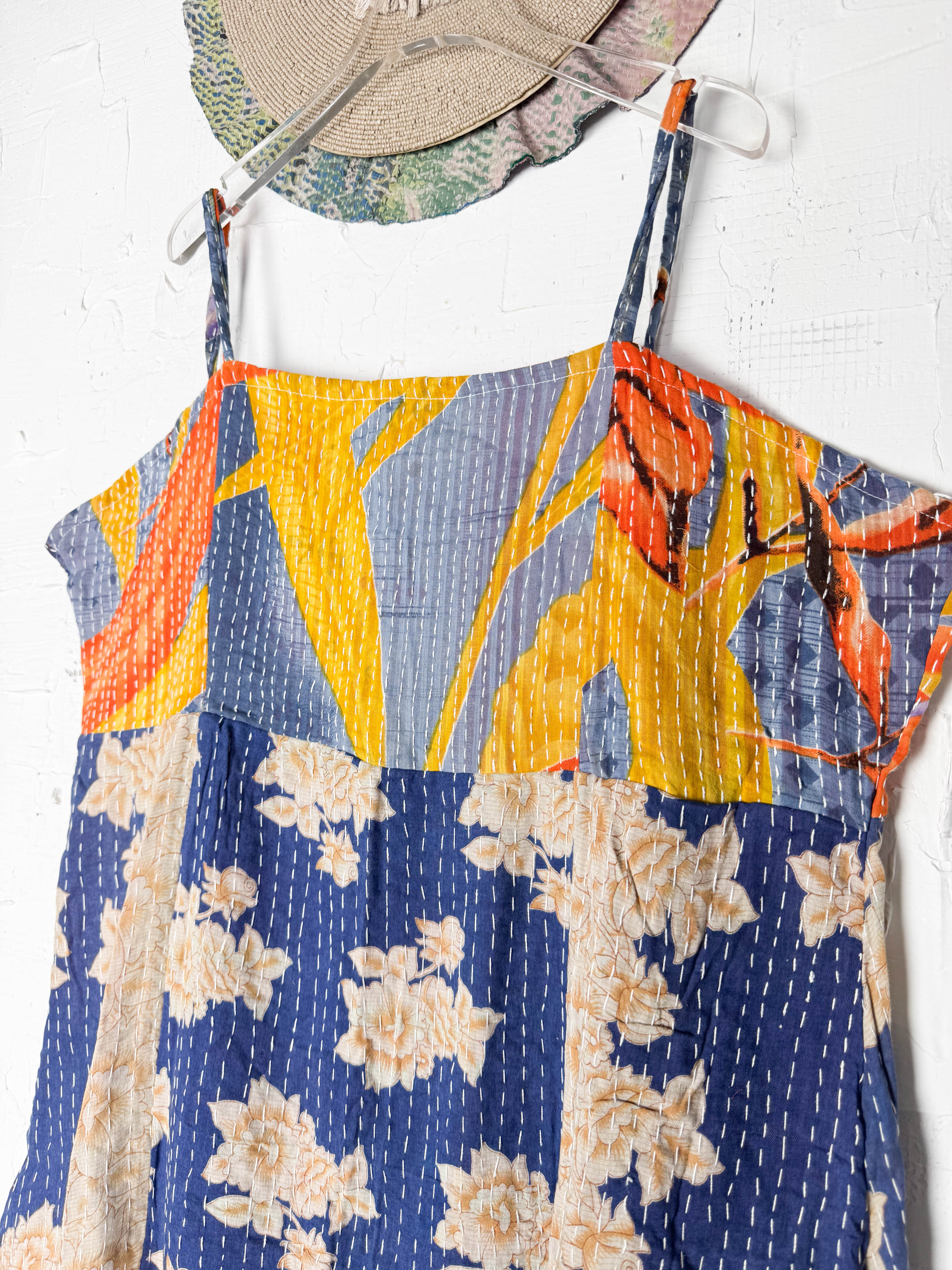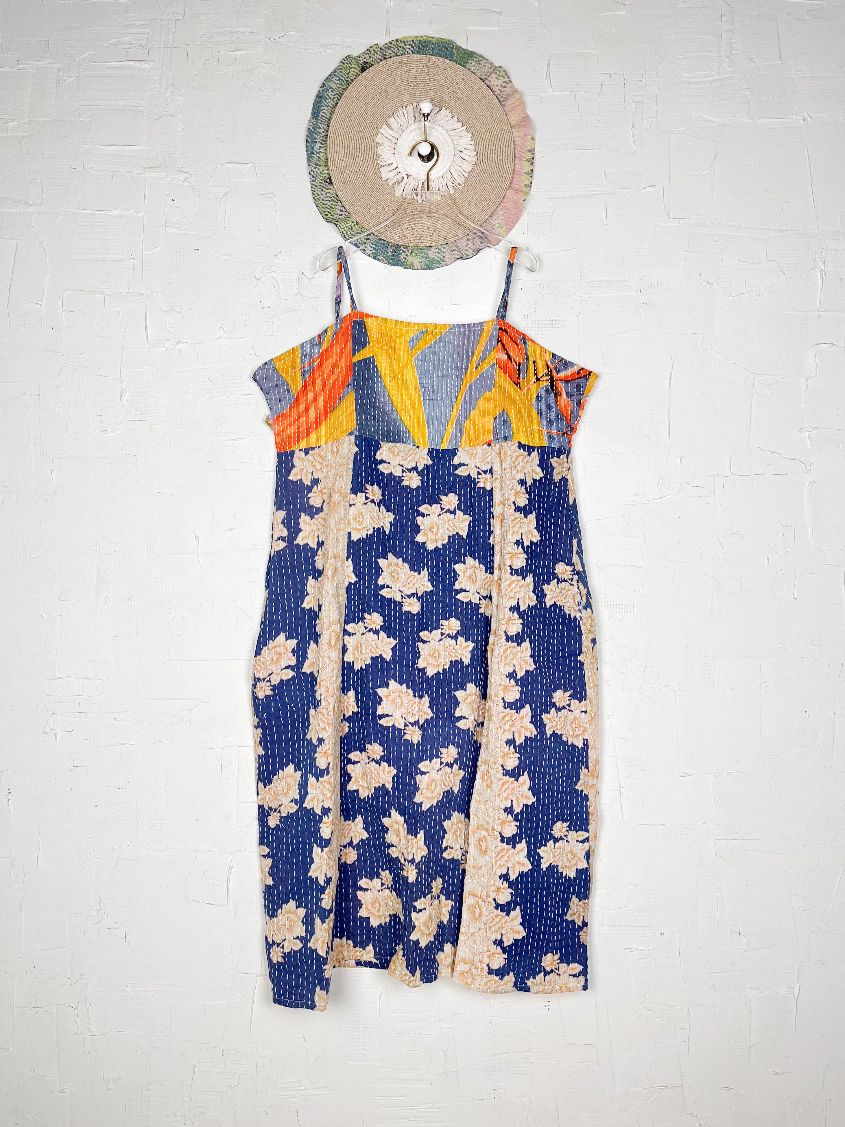 Designed to celebrate your silhouette, this midi-length Kantha dress drapes and flows with graceful movement. Crafted from carefully selected Kantha patchwork, each piece showcases a delightful variation in underlying prints and colours, making yours truly one-of-a-kind