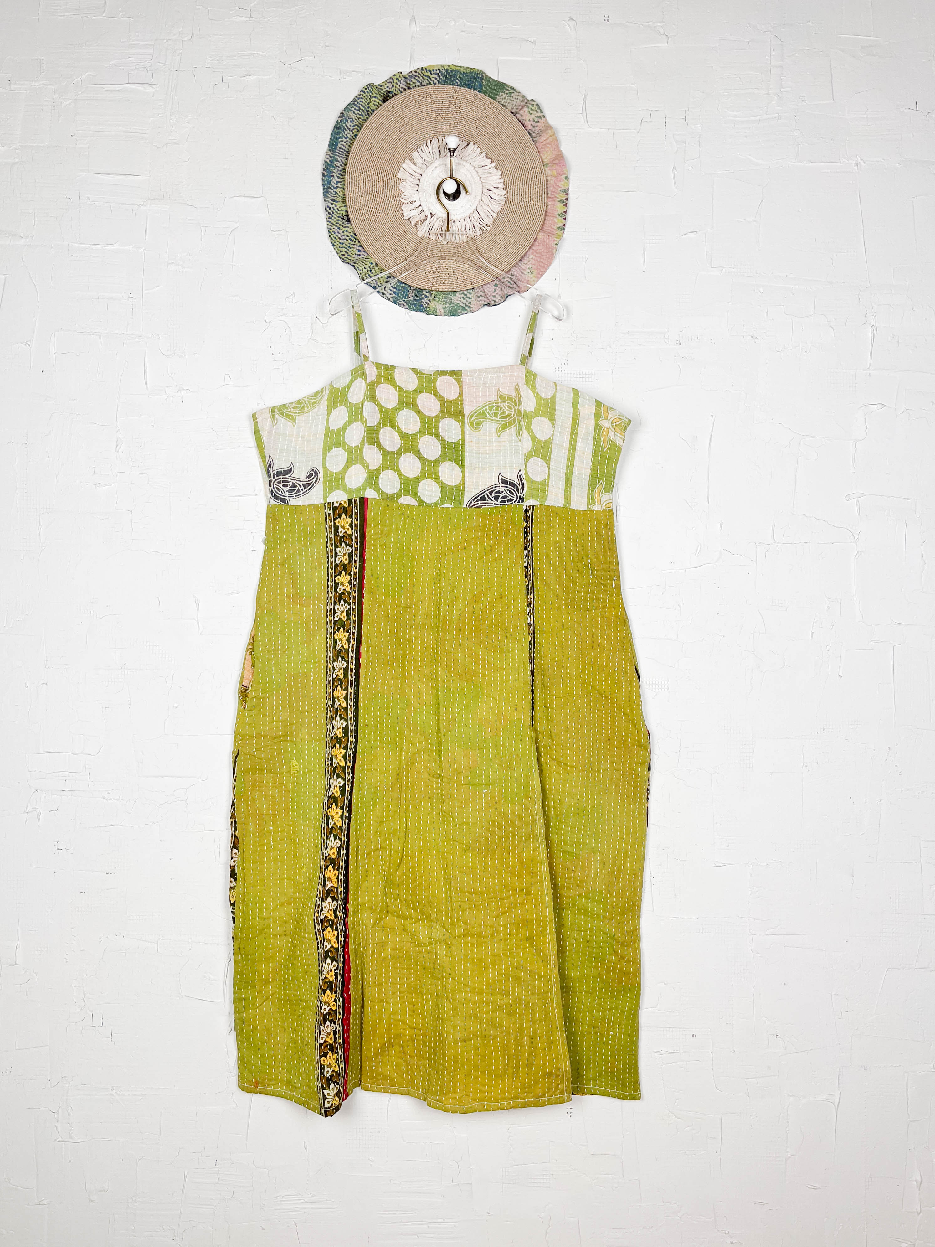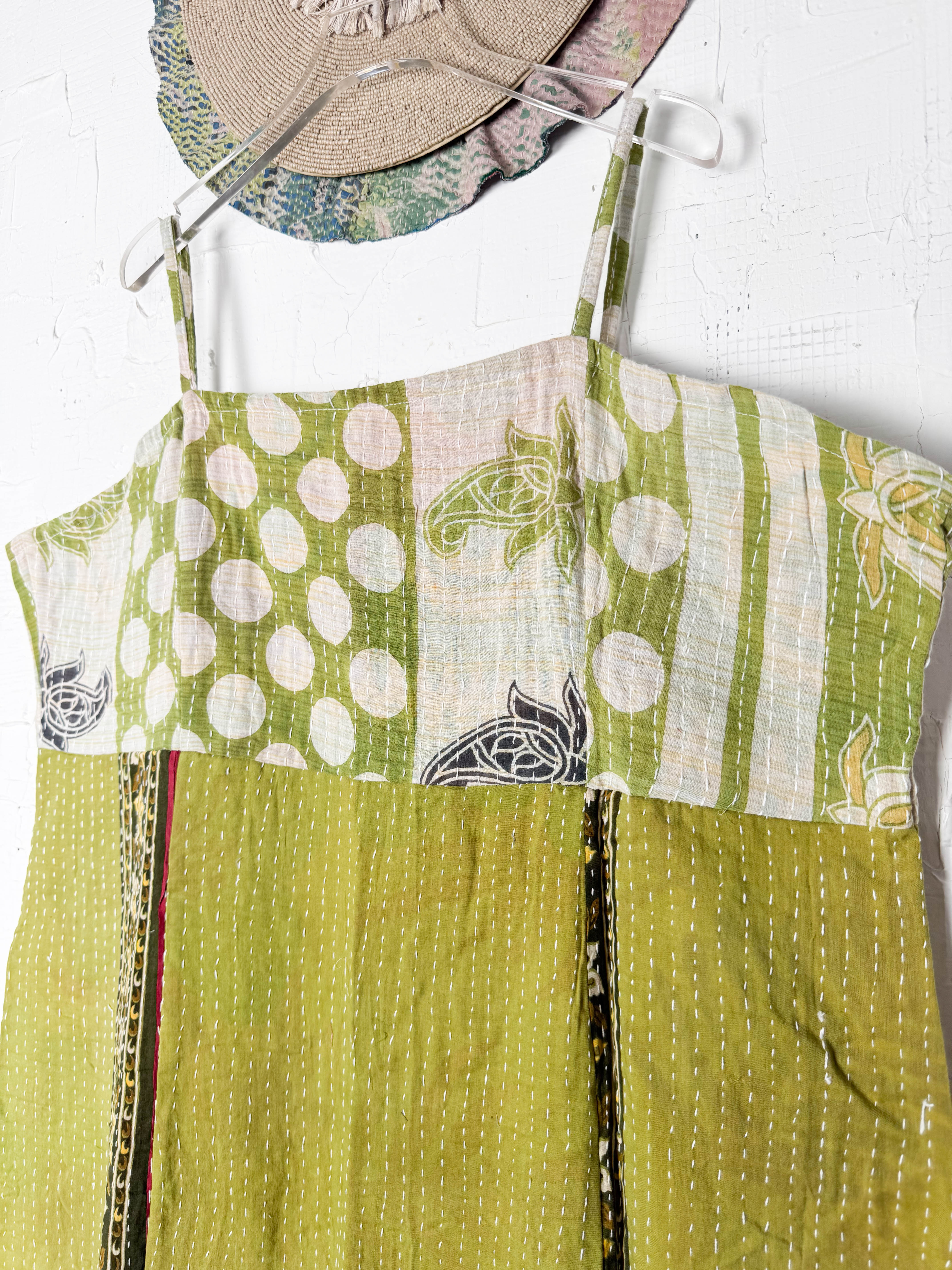 Designed to celebrate your silhouette, this midi-length Kantha dress drapes and flows with graceful movement. Crafted from carefully selected Kantha patchwork, each piece showcases a delightful variation in underlying prints and colours, making yours truly one-of-a-kind
