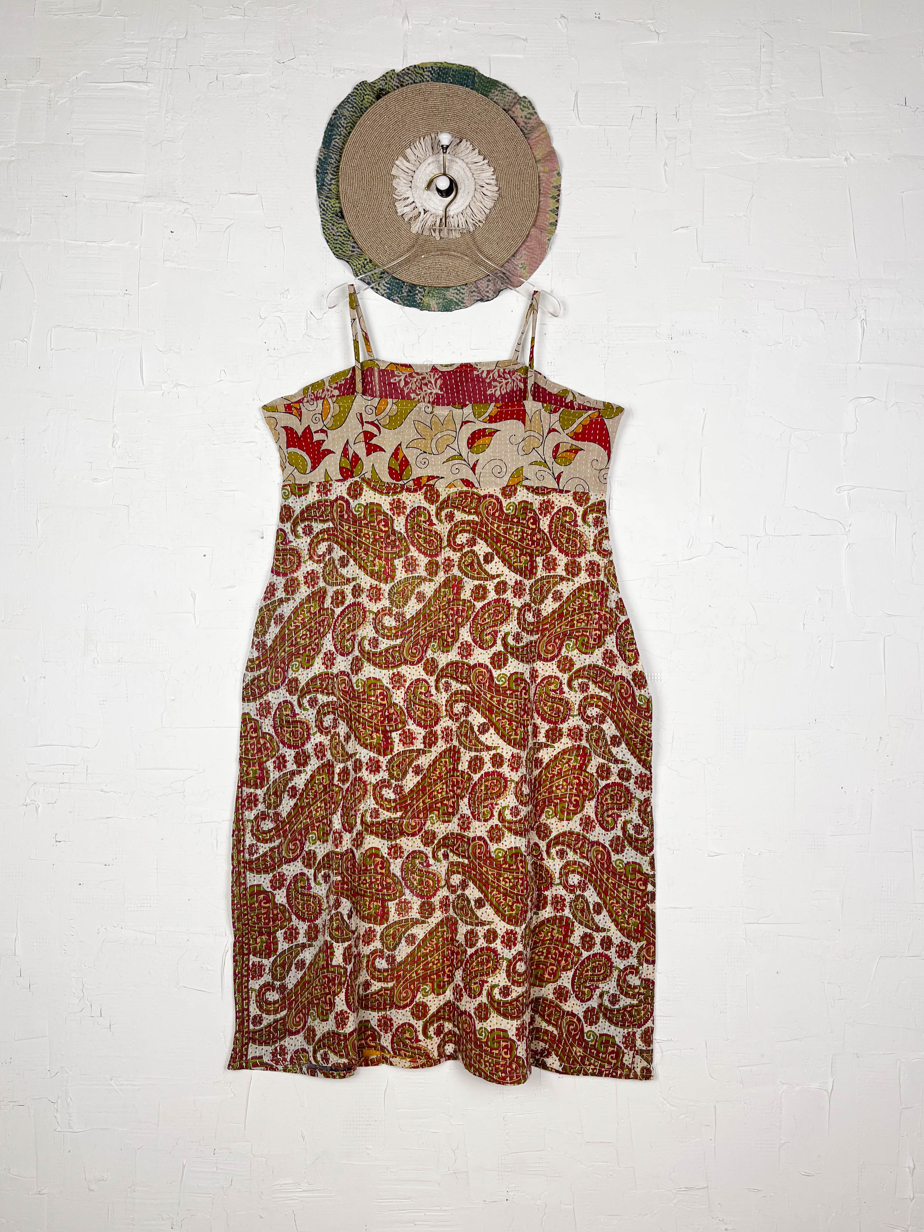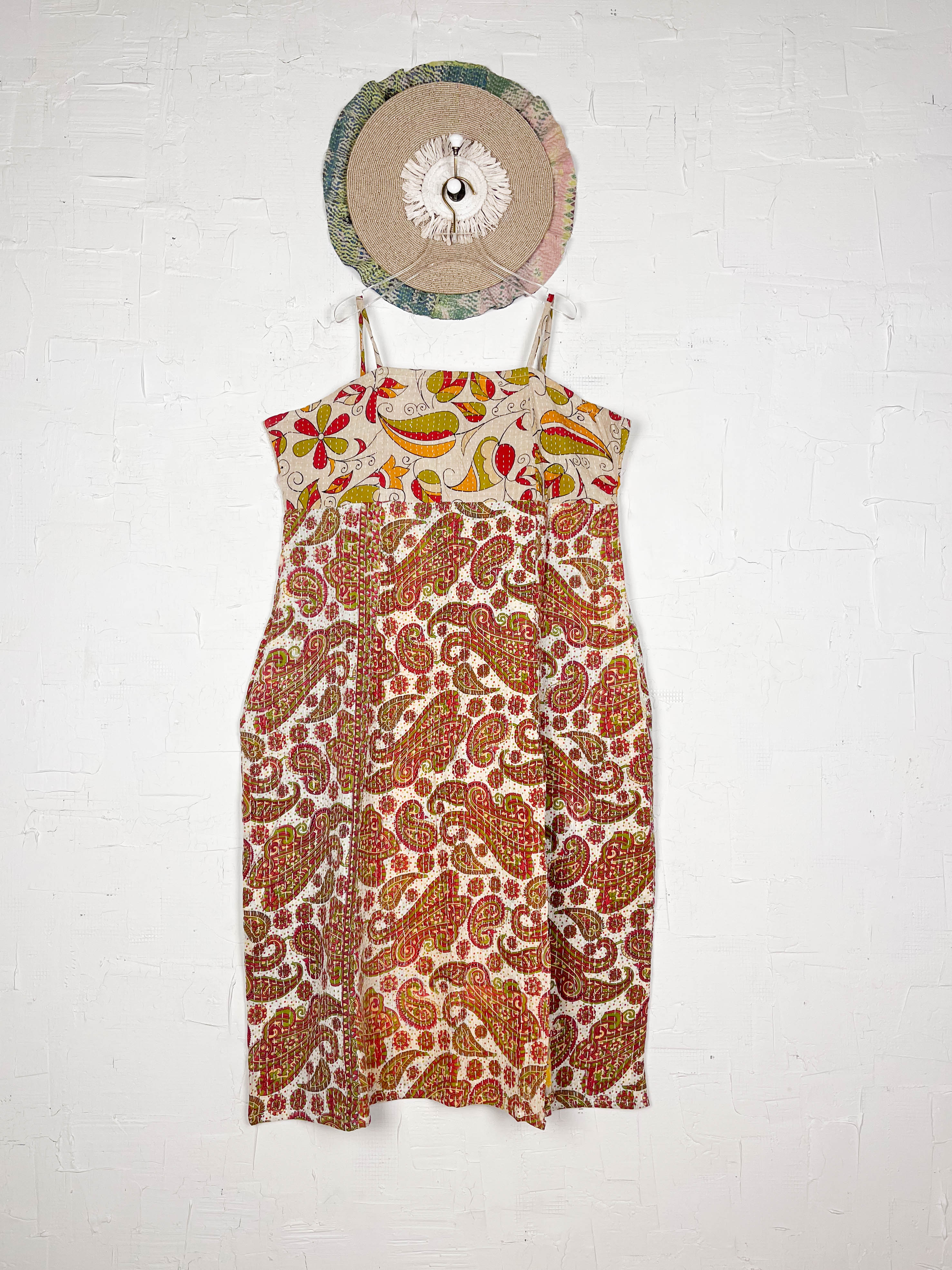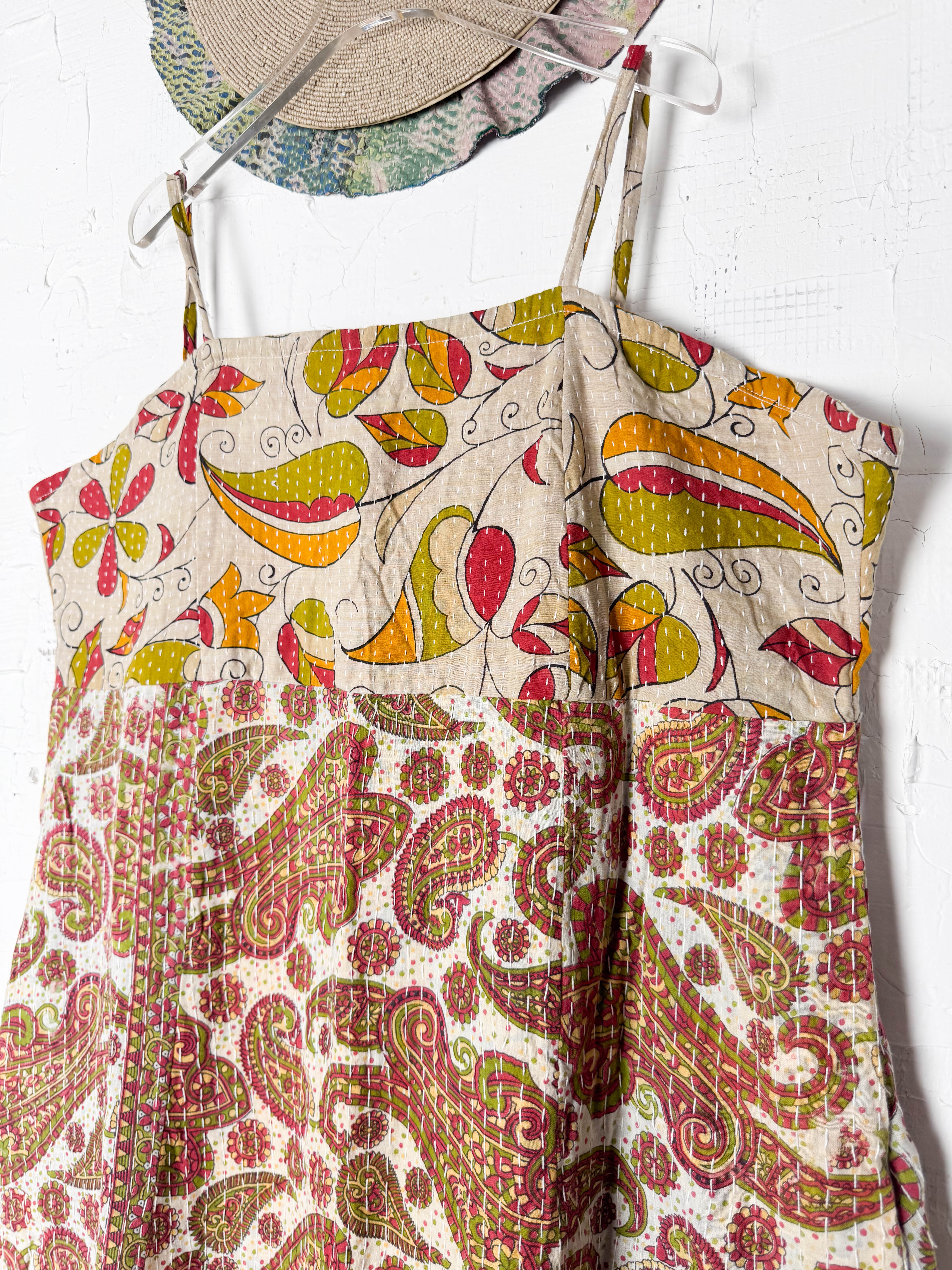 Designed to celebrate your silhouette, this midi-length Kantha dress drapes and flows with graceful movement. Crafted from carefully selected Kantha patchwork, each piece showcases a delightful variation in underlying prints and colours, making yours truly one-of-a-kind