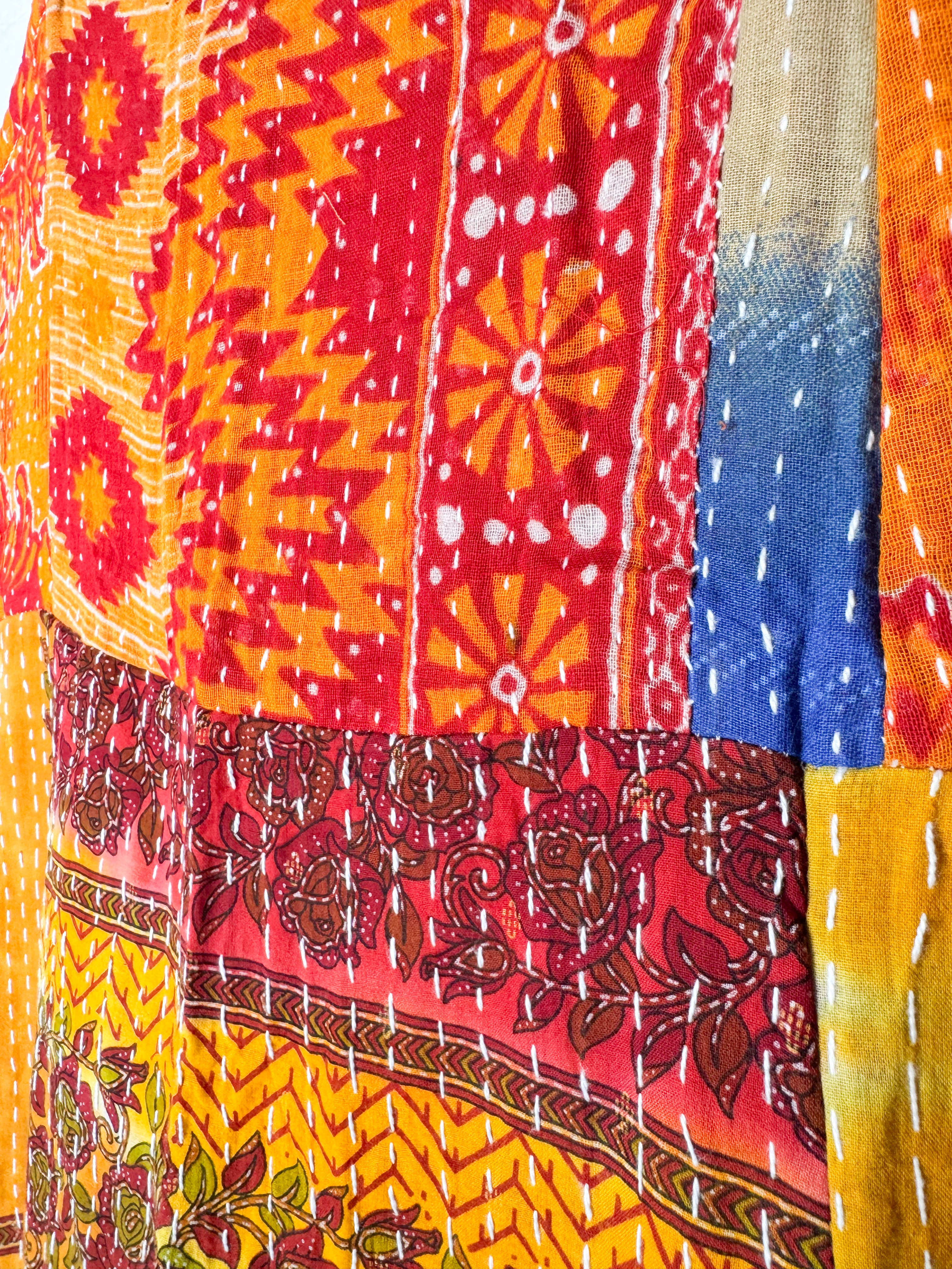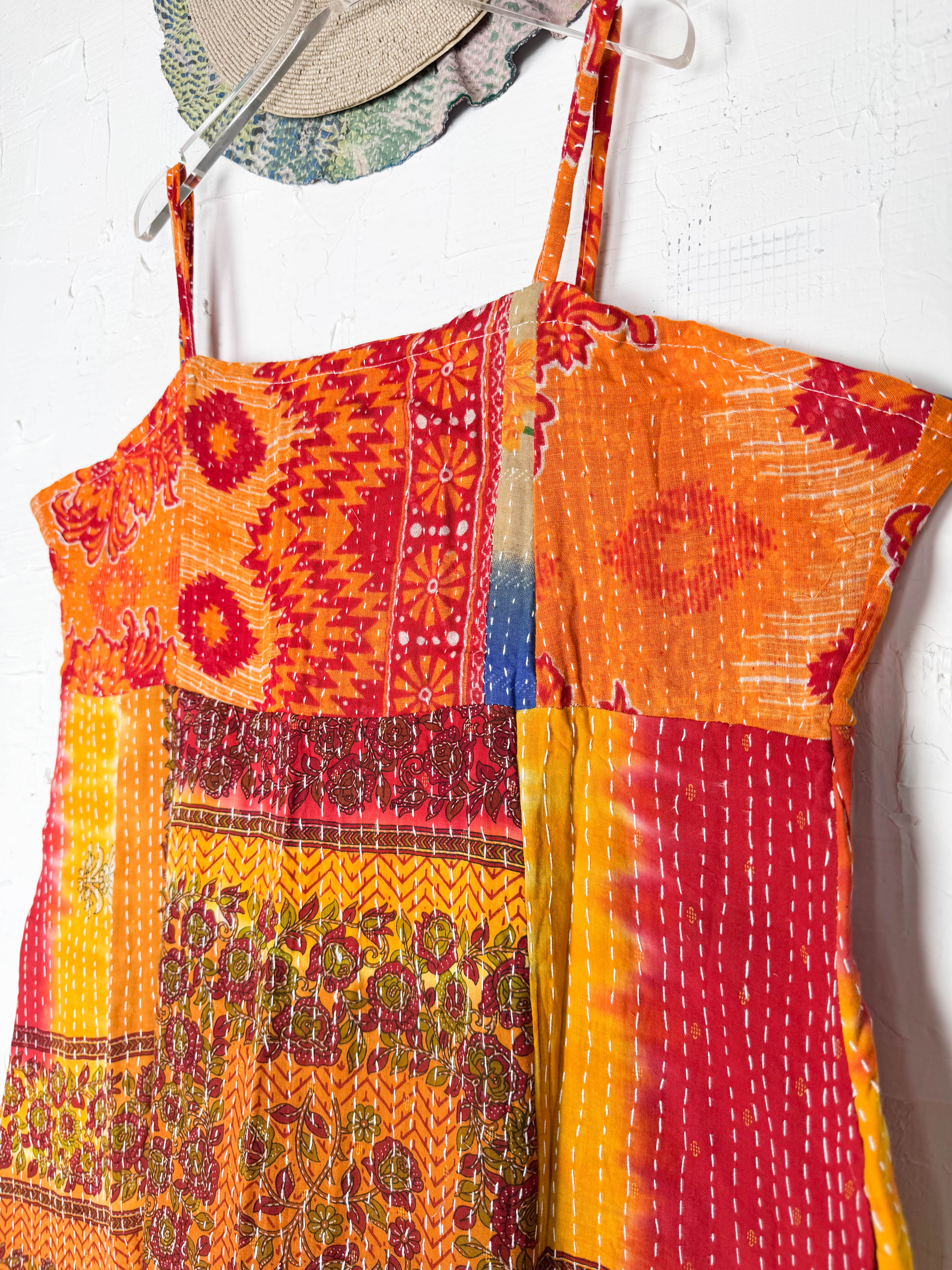 Designed to celebrate your silhouette, this midi-length Kantha dress drapes and flows with graceful movement. Crafted from carefully selected Kantha patchwork, each piece showcases a delightful variation in underlying prints and colours, making yours truly one-of-a-kind