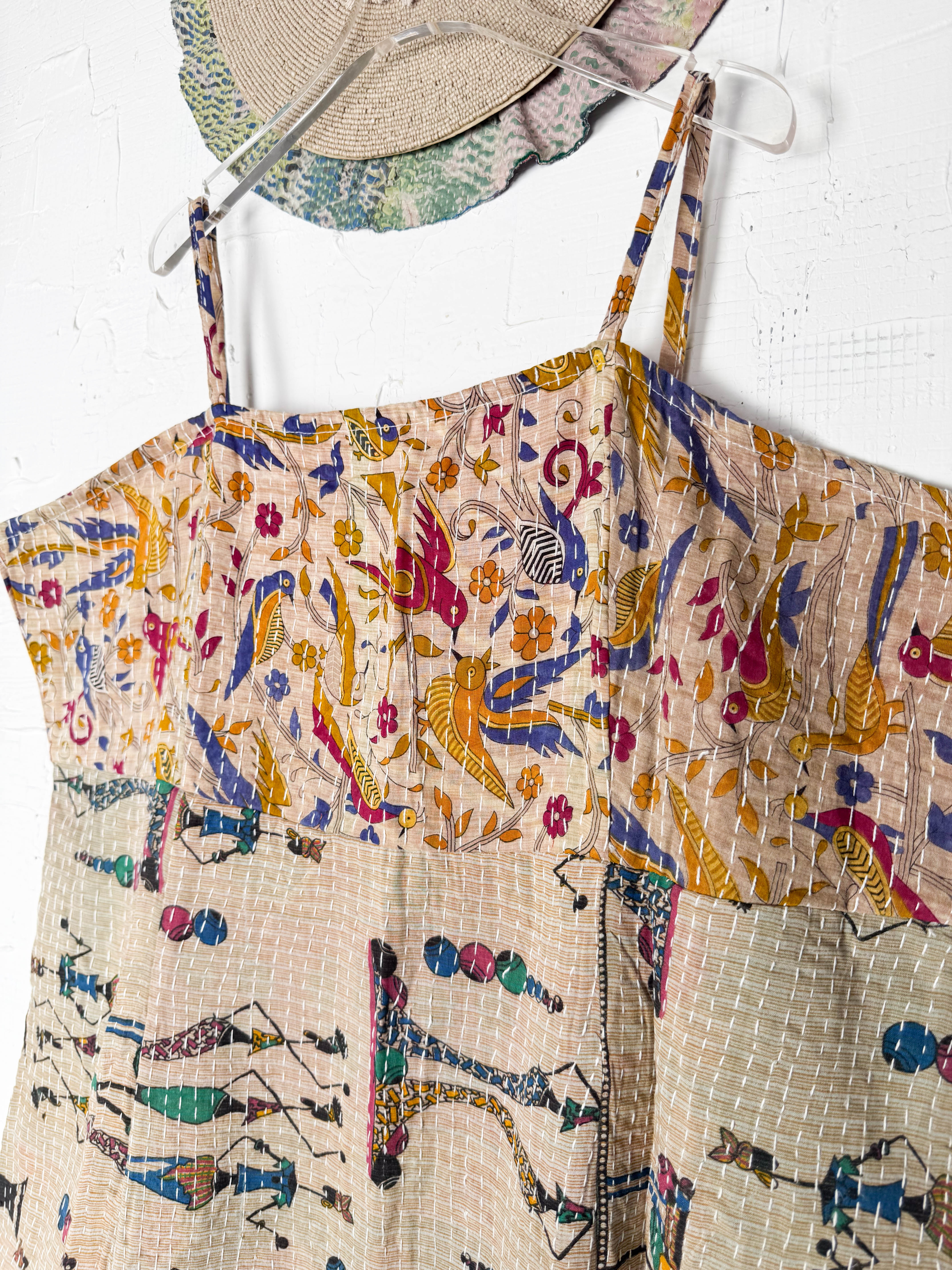 Kantha Strap Long Dress Floral Mix Earth