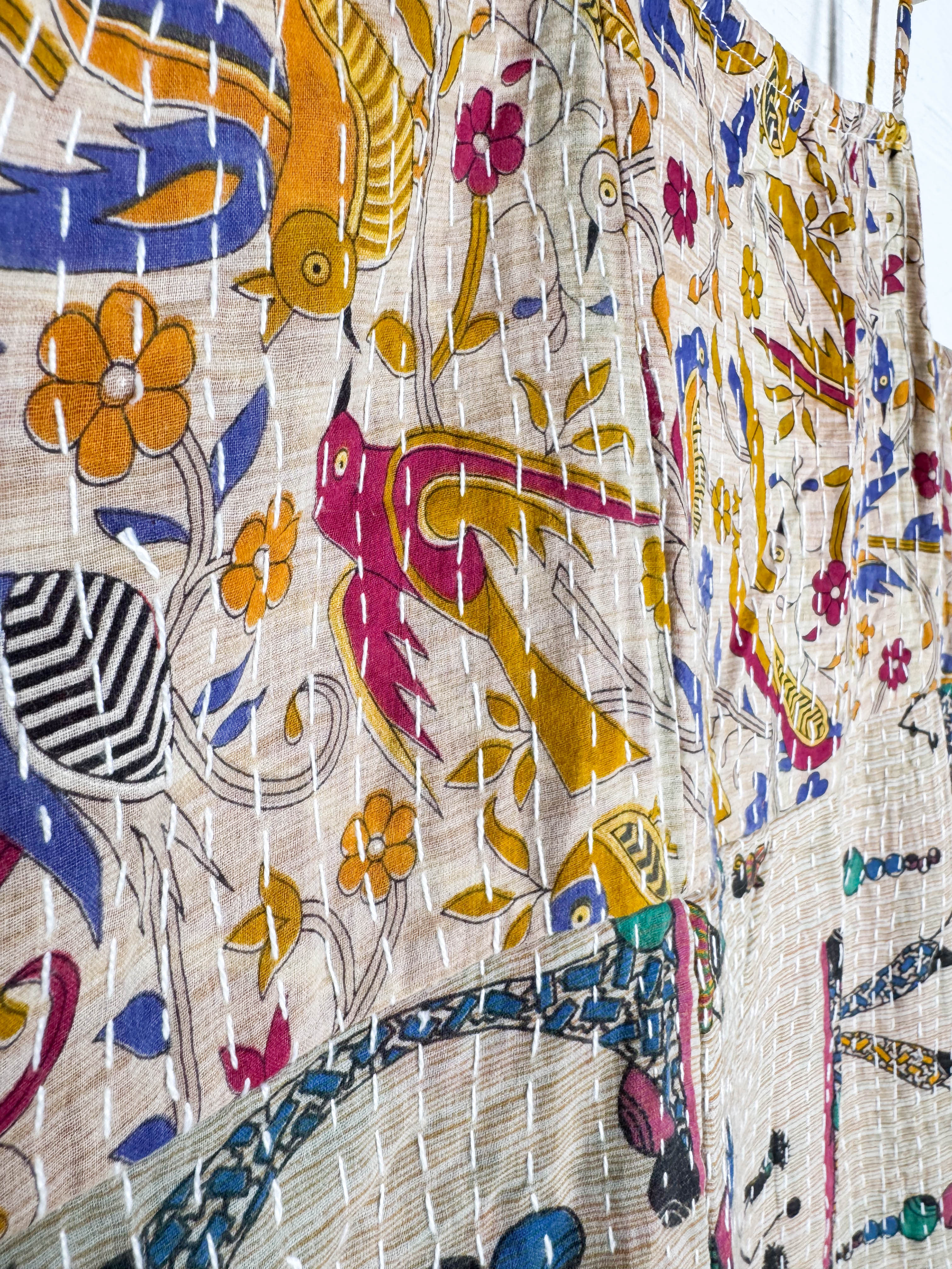 Envelop yourself in the artistry of this vintage Kantha dress. Each running stitch tells a story across the lightweight fabric, creating a unique texture and a beautifully airy feel. A long slit graces the left side, adding a touch of distinctive charm. Experience the seamless harmony of traditional hand craftsmanship and everyday ease to enhance your Playful feminine essence every day!