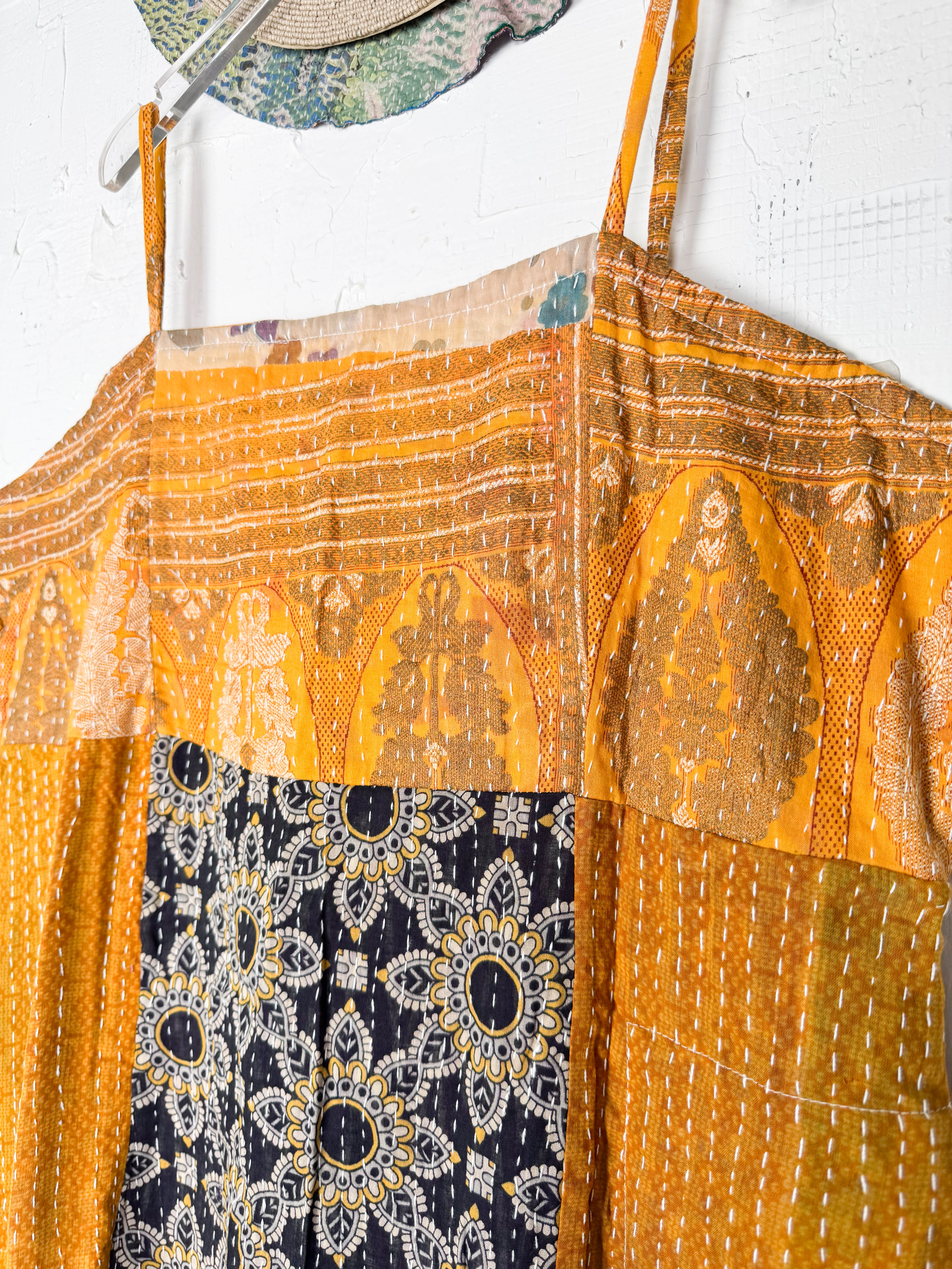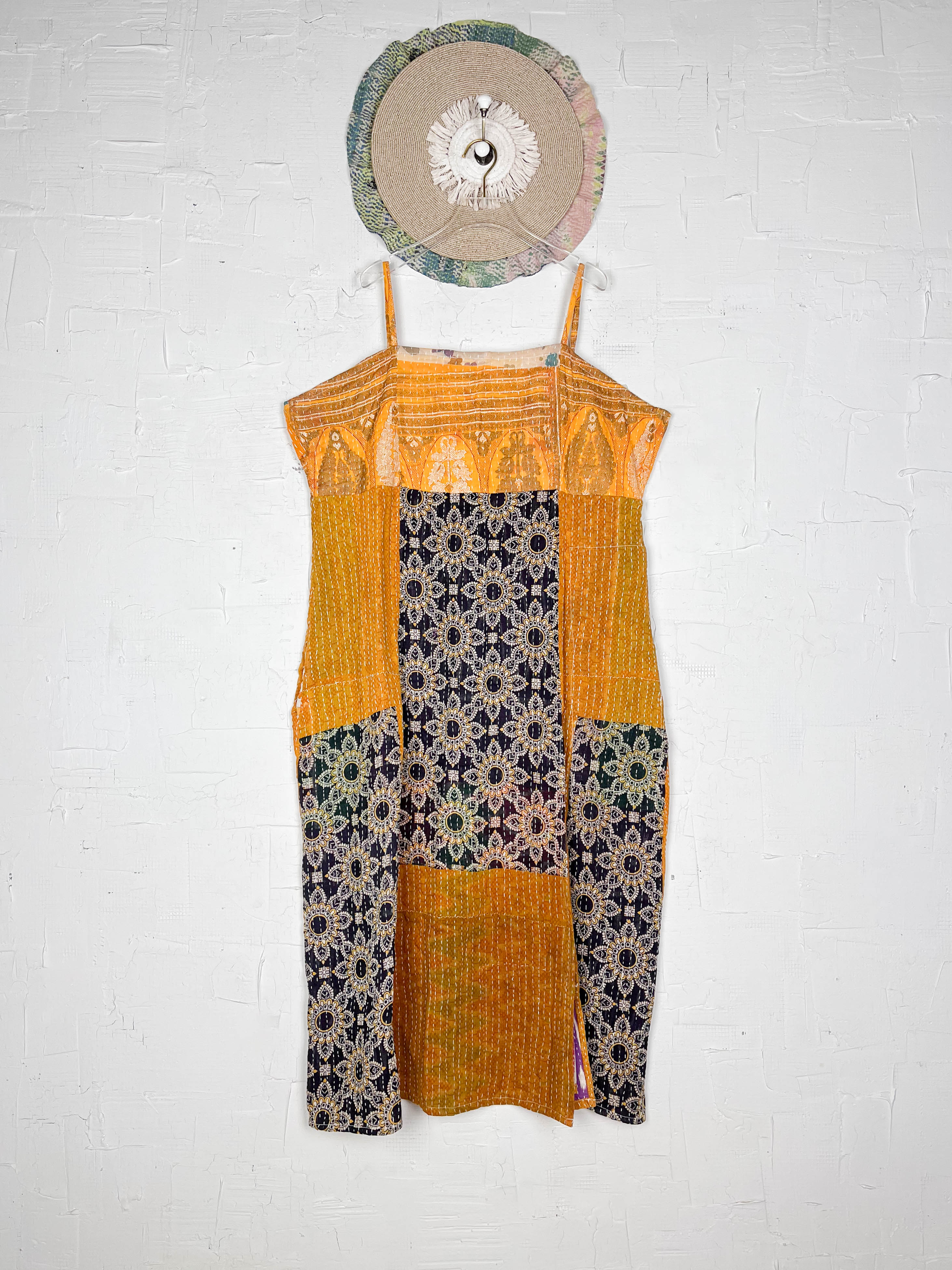 Designed to celebrate your silhouette, this midi-length Kantha dress drapes and flows with graceful movement. Crafted from carefully selected Kantha patchwork, each piece showcases a delightful variation in underlying prints and colours, making yours truly one-of-a-kind