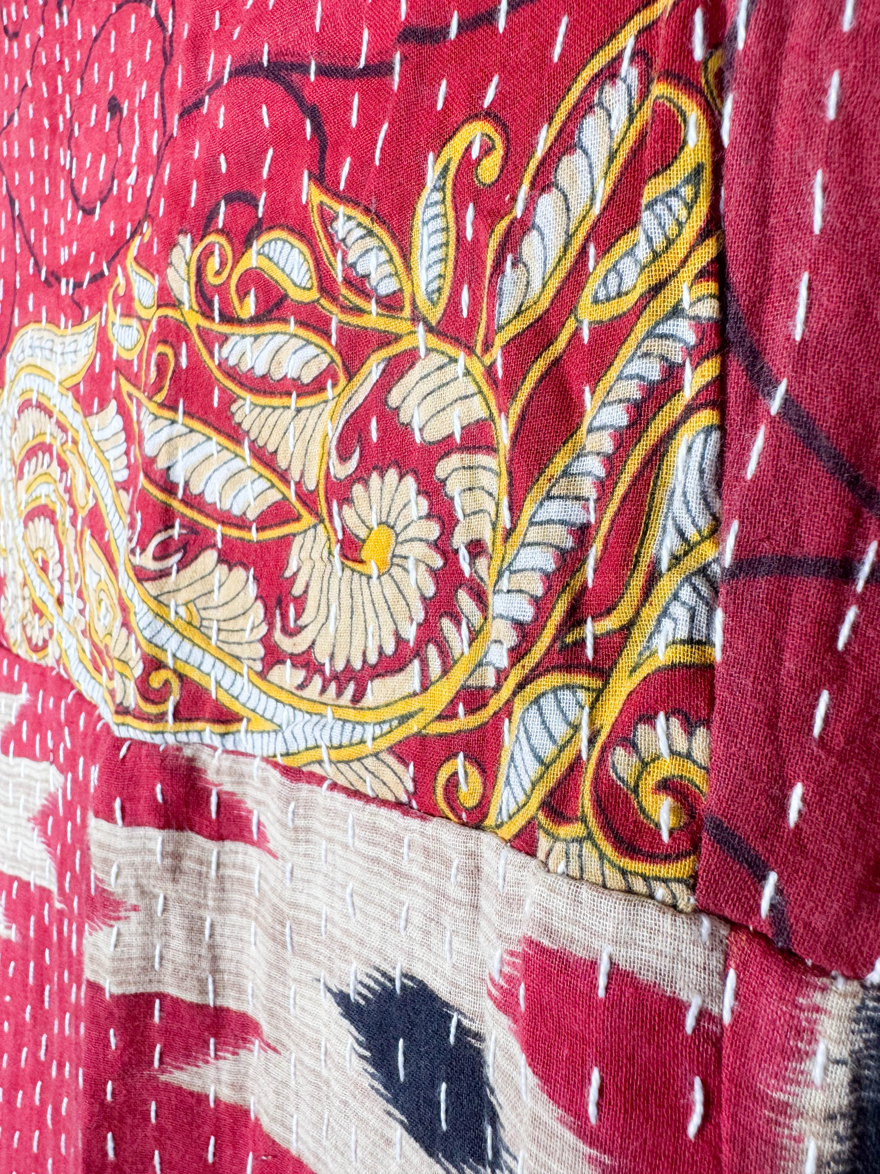 Envelop yourself in the artistry of this vintage Kantha dress. Each running stitch tells a story across the lightweight fabric, creating a unique texture and a beautifully airy feel. A long slit graces the left side, adding a touch of distinctive charm. Experience the seamless harmony of traditional hand craftsmanship and everyday ease to enhance your Playful feminine essence every day!