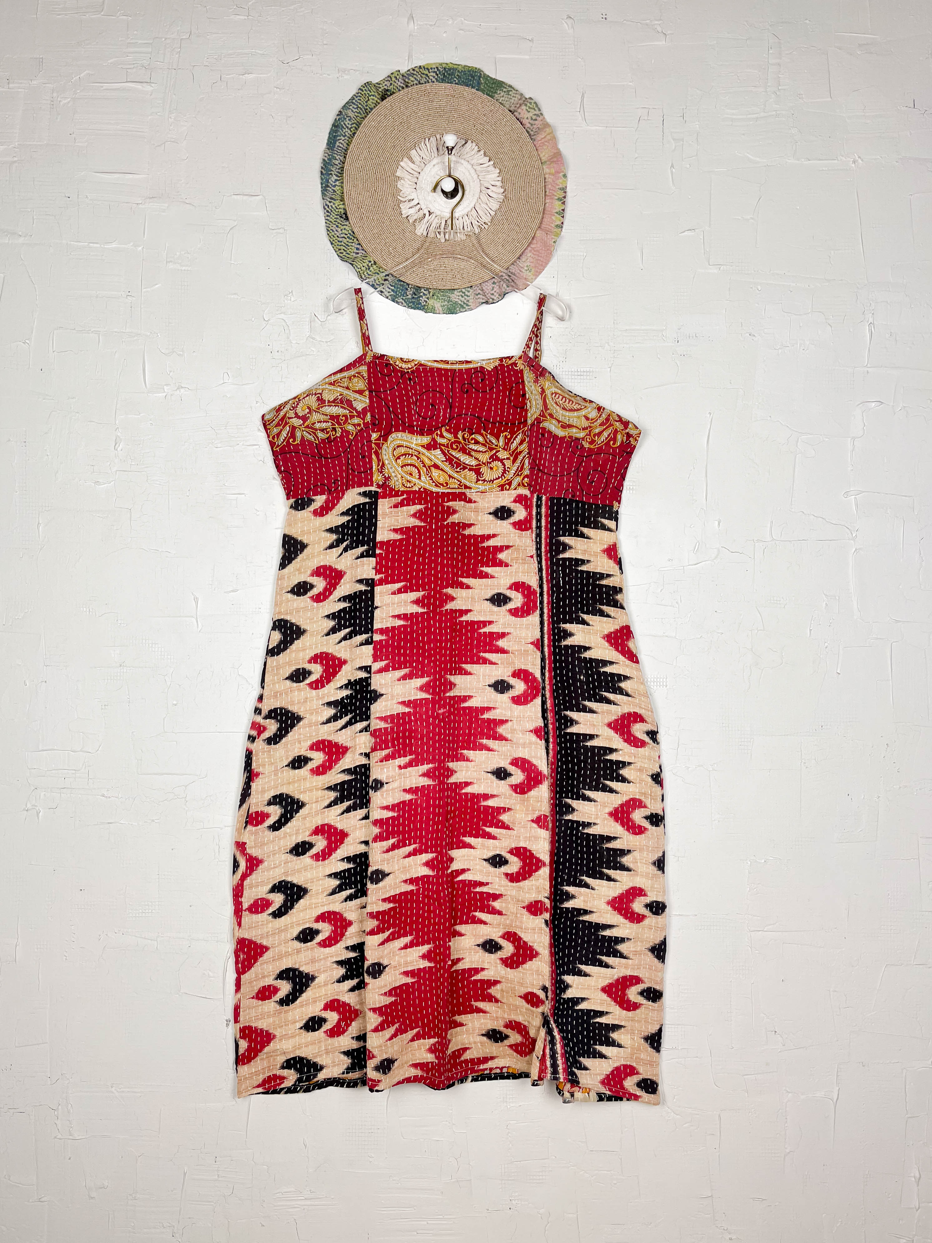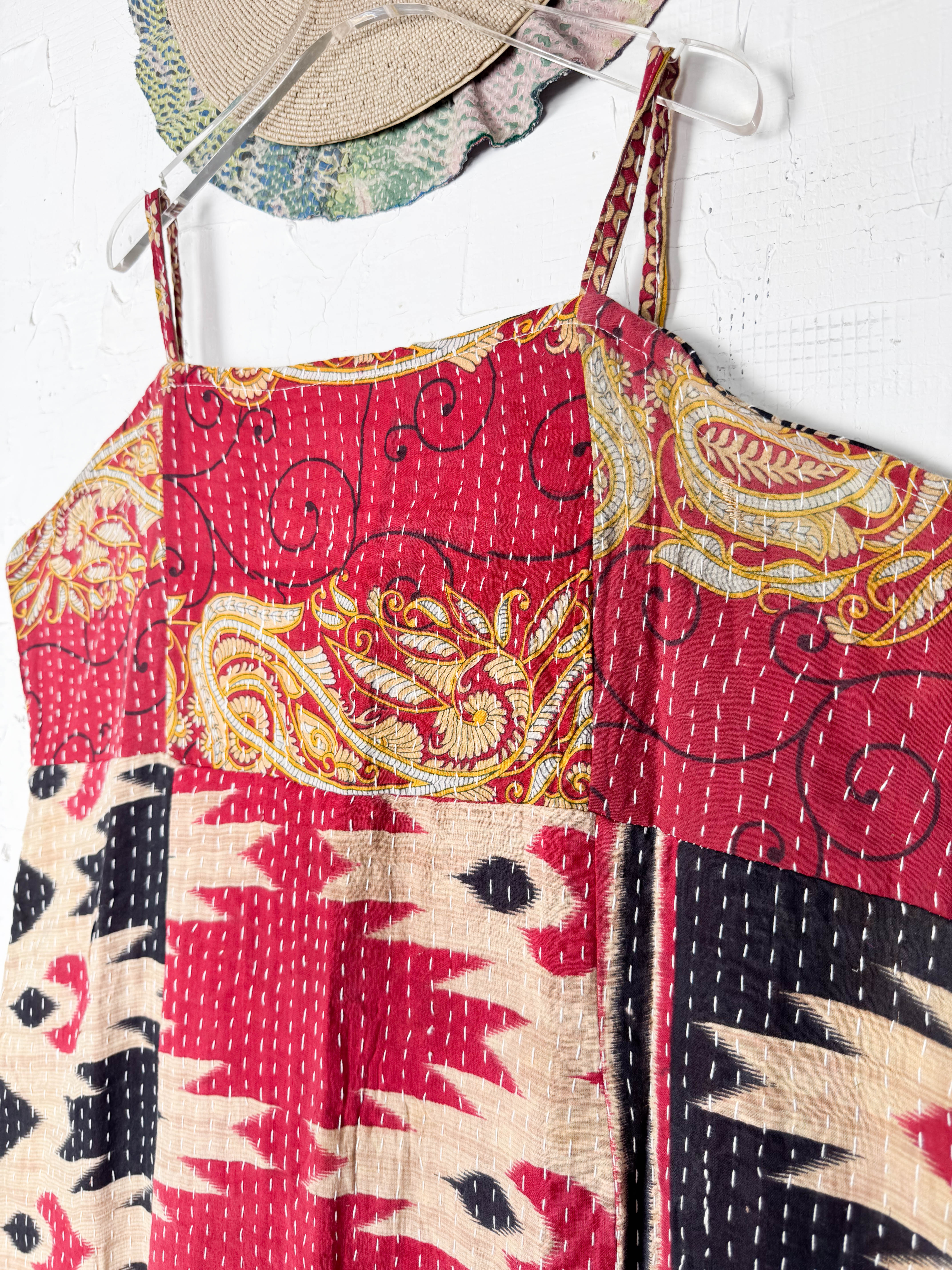 Designed to celebrate your silhouette, this midi-length Kantha dress drapes and flows with graceful movement. Crafted from carefully selected Kantha patchwork, each piece showcases a delightful variation in underlying prints and colours, making yours truly one-of-a-kind