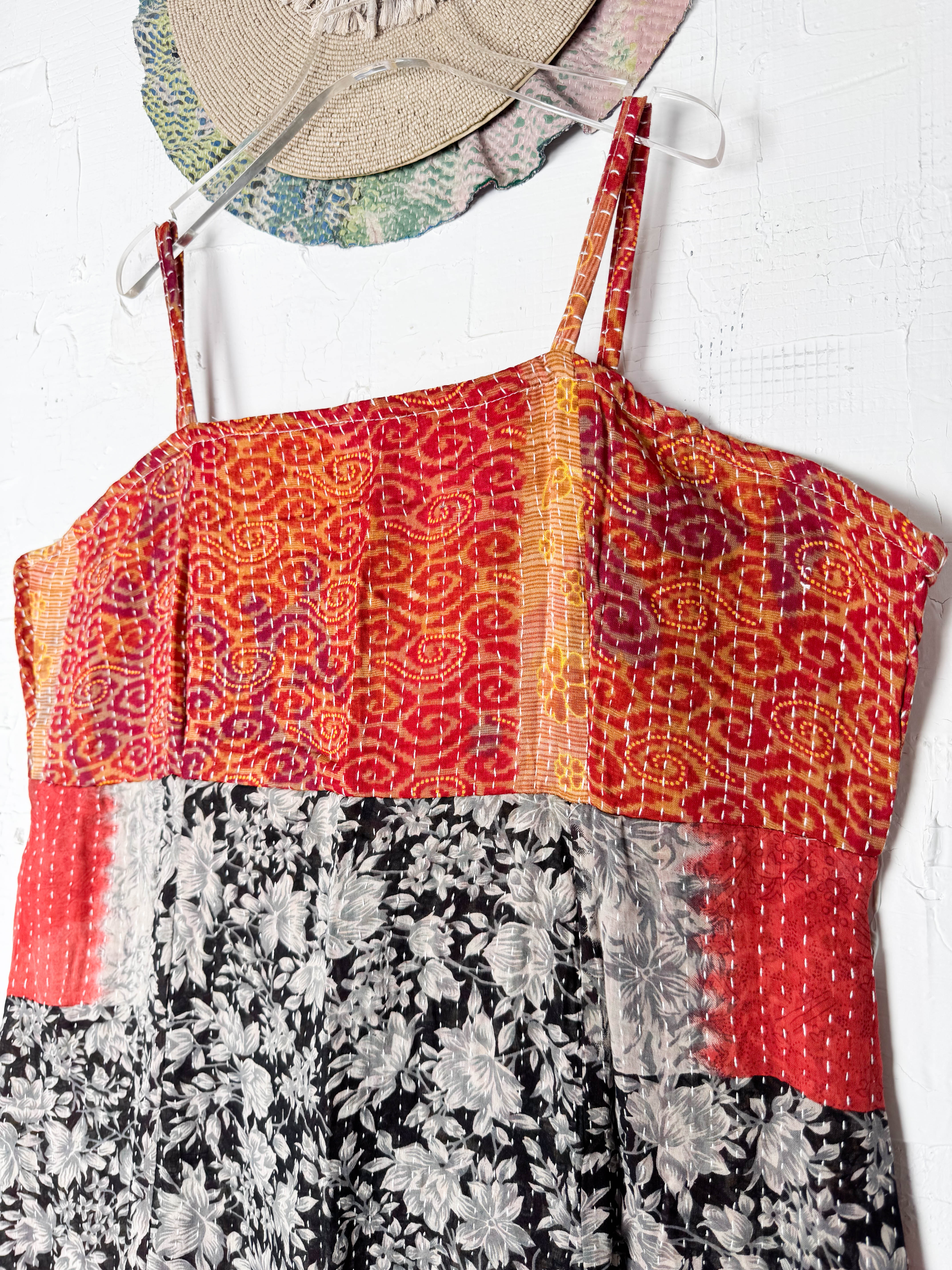 Designed to celebrate your silhouette, this midi-length Kantha dress drapes and flows with graceful movement. Crafted from carefully selected Kantha patchwork, each piece showcases a delightful variation in underlying prints and colours, making yours truly one-of-a-kind