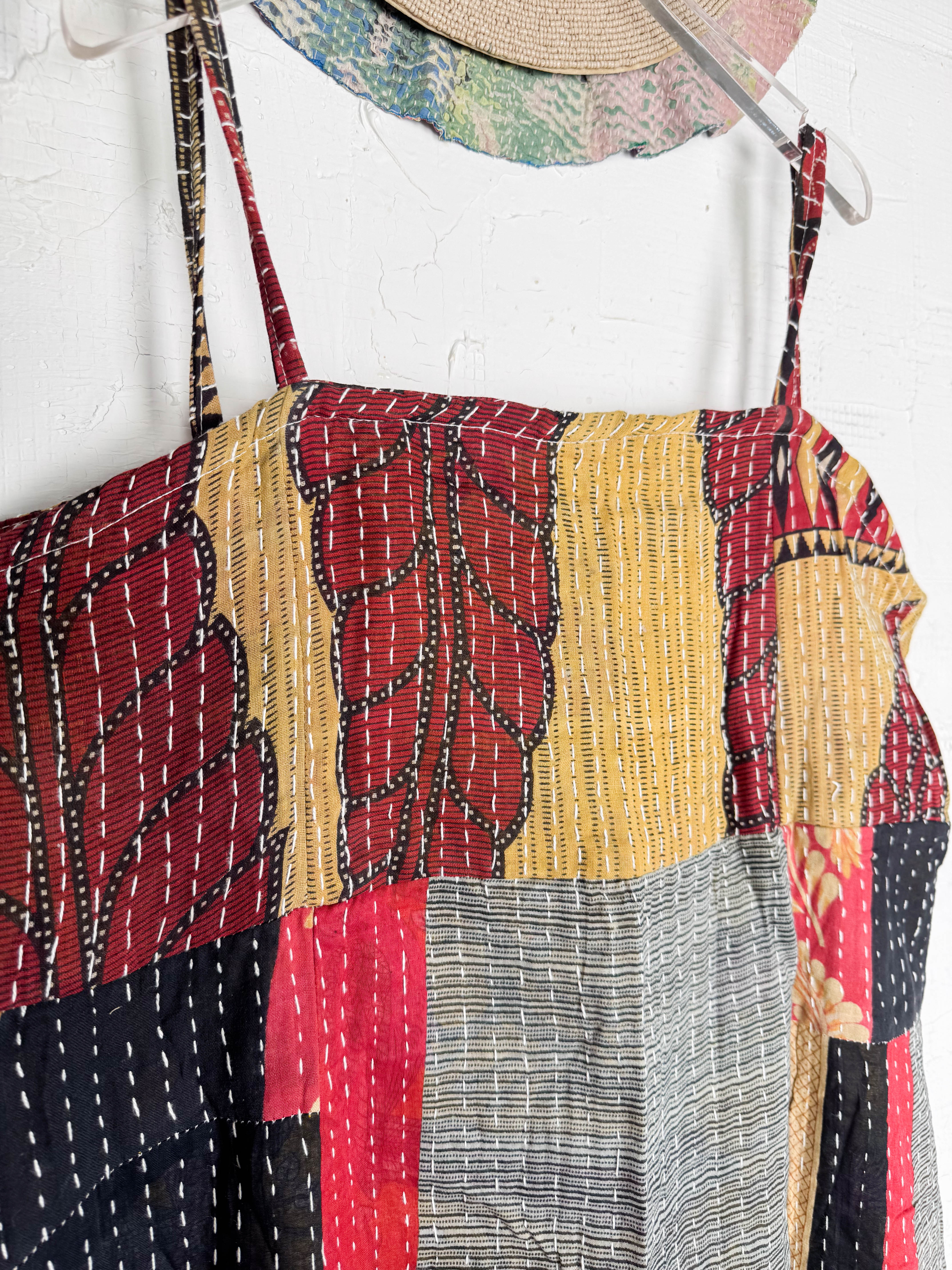 Designed to celebrate your silhouette, this midi-length Kantha dress drapes and flows with graceful movement. Crafted from carefully selected Kantha patchwork, each piece showcases a delightful variation in underlying prints and colours, making yours truly one-of-a-kind