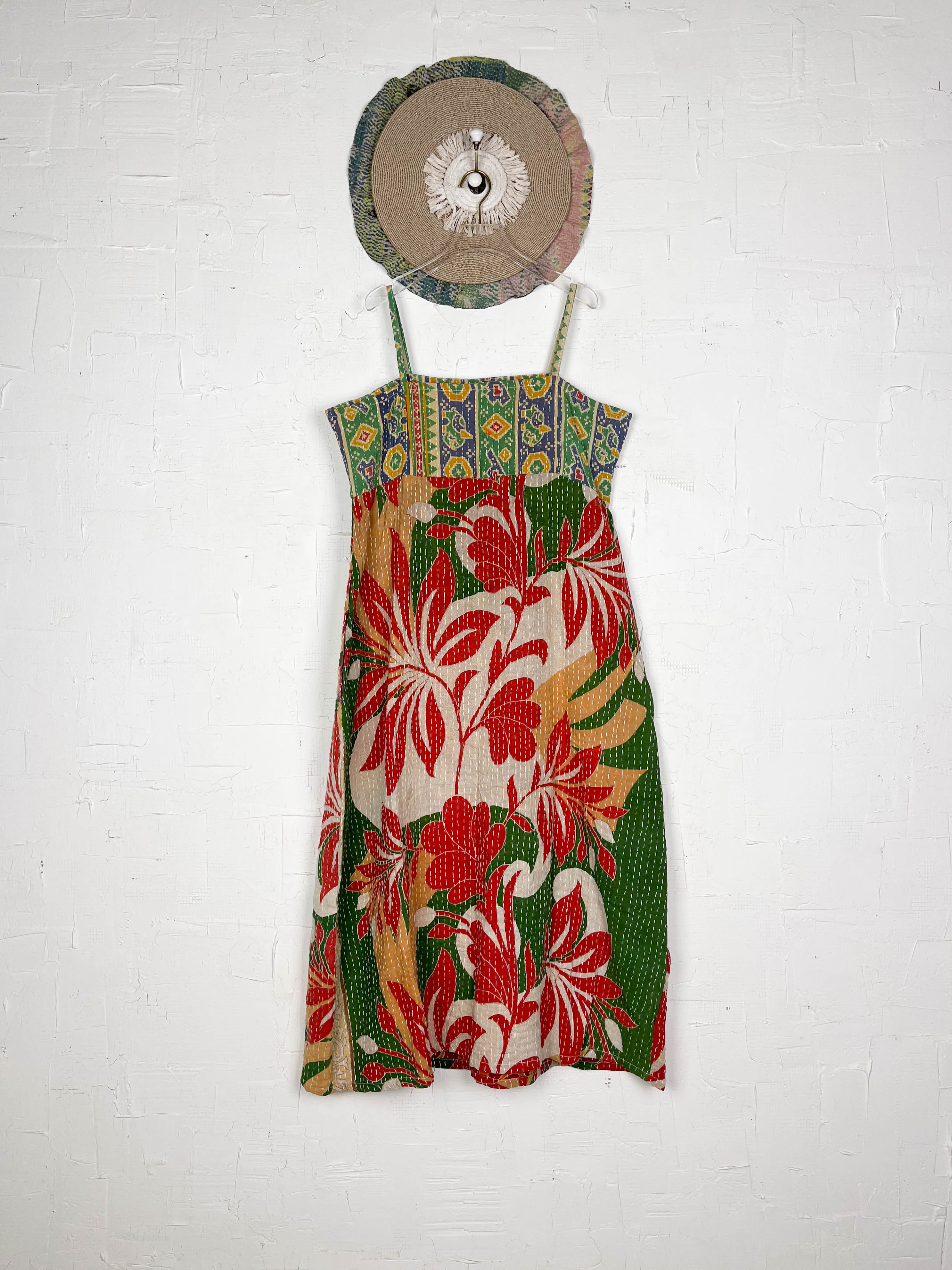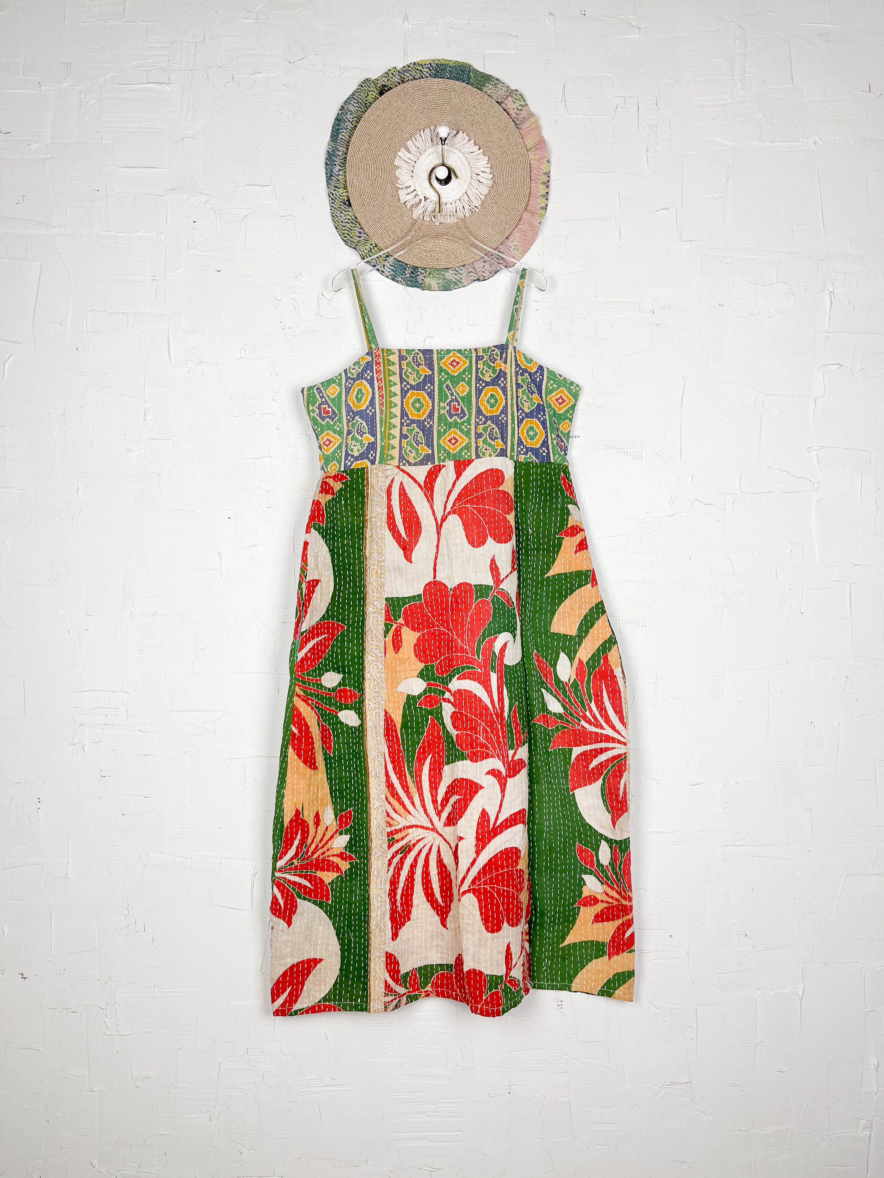 Designed to celebrate your silhouette, this midi-length Kantha dress drapes and flows with graceful movement. Crafted from carefully selected Kantha patchwork, each piece showcases a delightful variation in underlying prints and colours, making yours truly one-of-a-kind