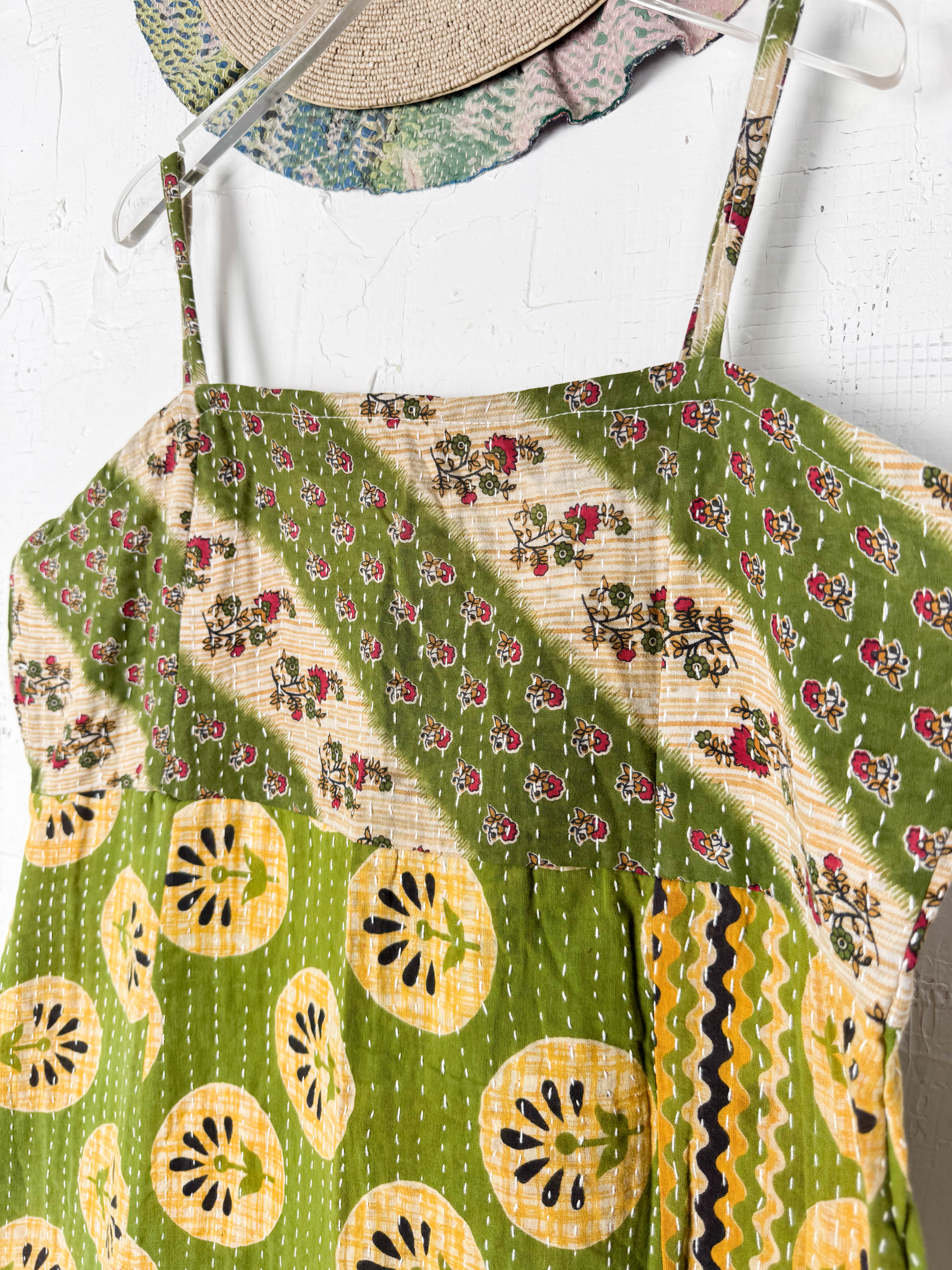 Designed to celebrate your silhouette, this midi-length Kantha dress drapes and flows with graceful movement. Crafted from carefully selected Kantha patchwork, each piece showcases a delightful variation in underlying prints and colours, making yours truly one-of-a-kind