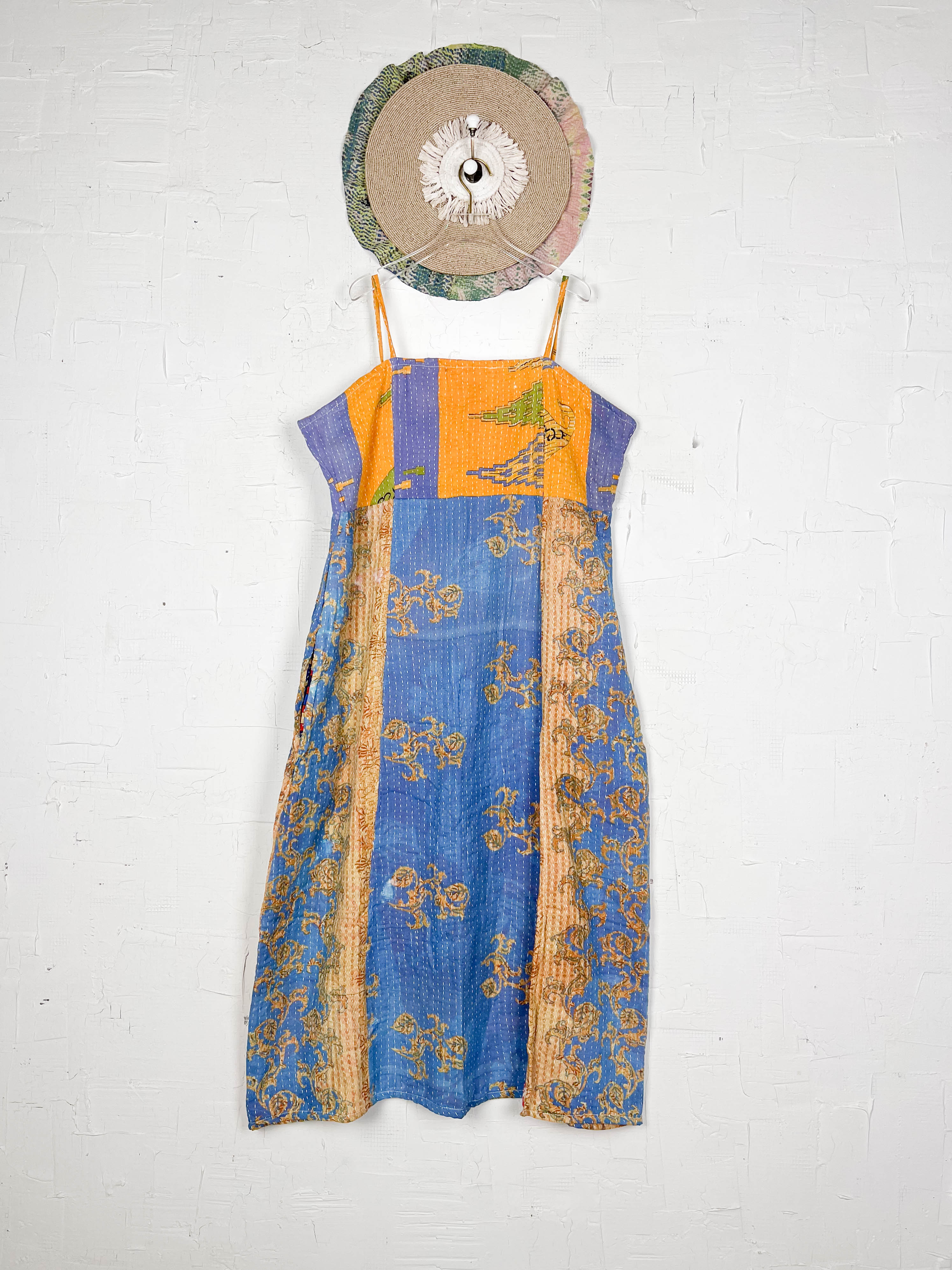 Designed to celebrate your silhouette, this midi-length Kantha dress drapes and flows with graceful movement. Crafted from carefully selected Kantha patchwork, each piece showcases a delightful variation in underlying prints and colours, making yours truly one-of-a-kind