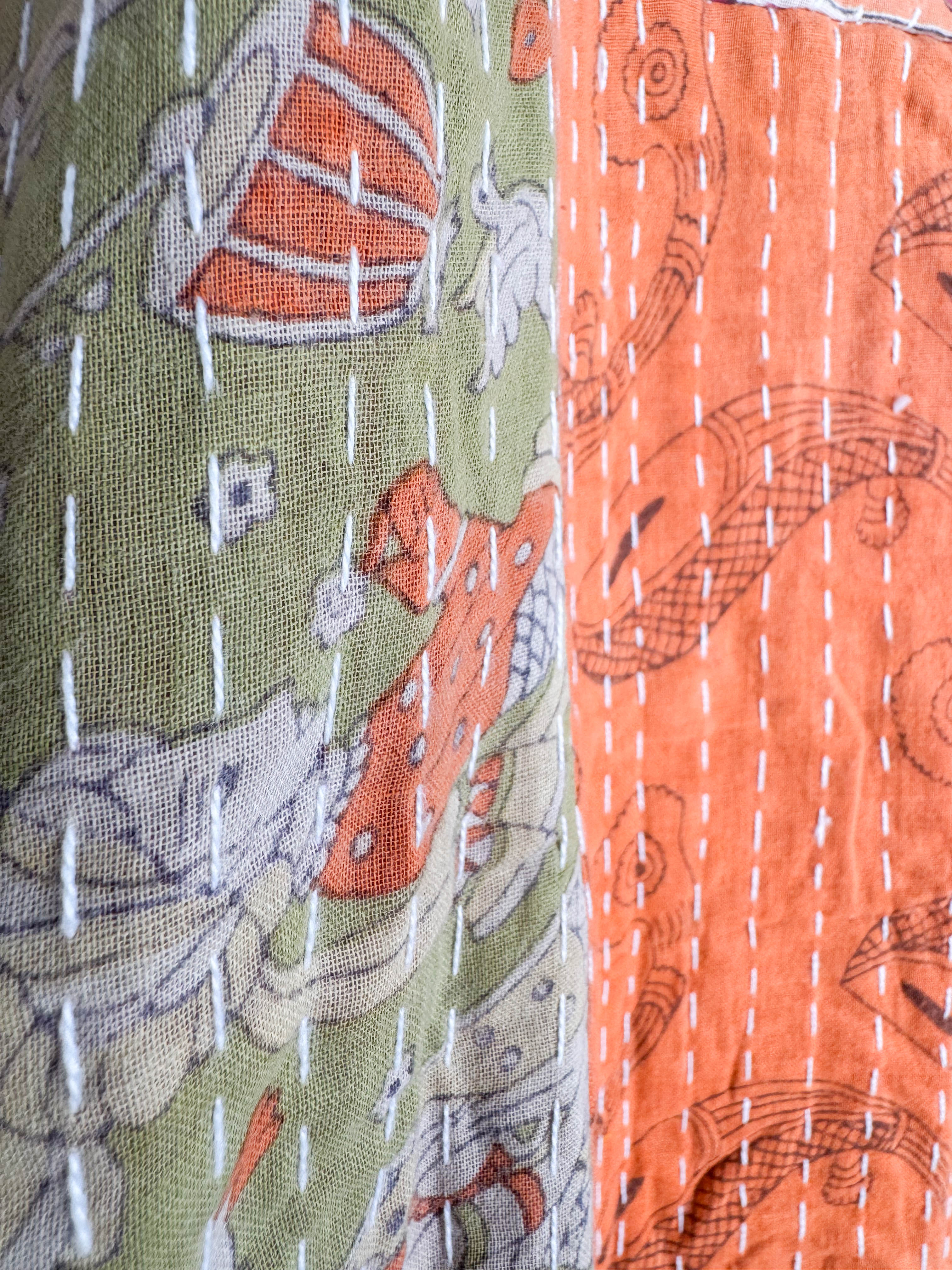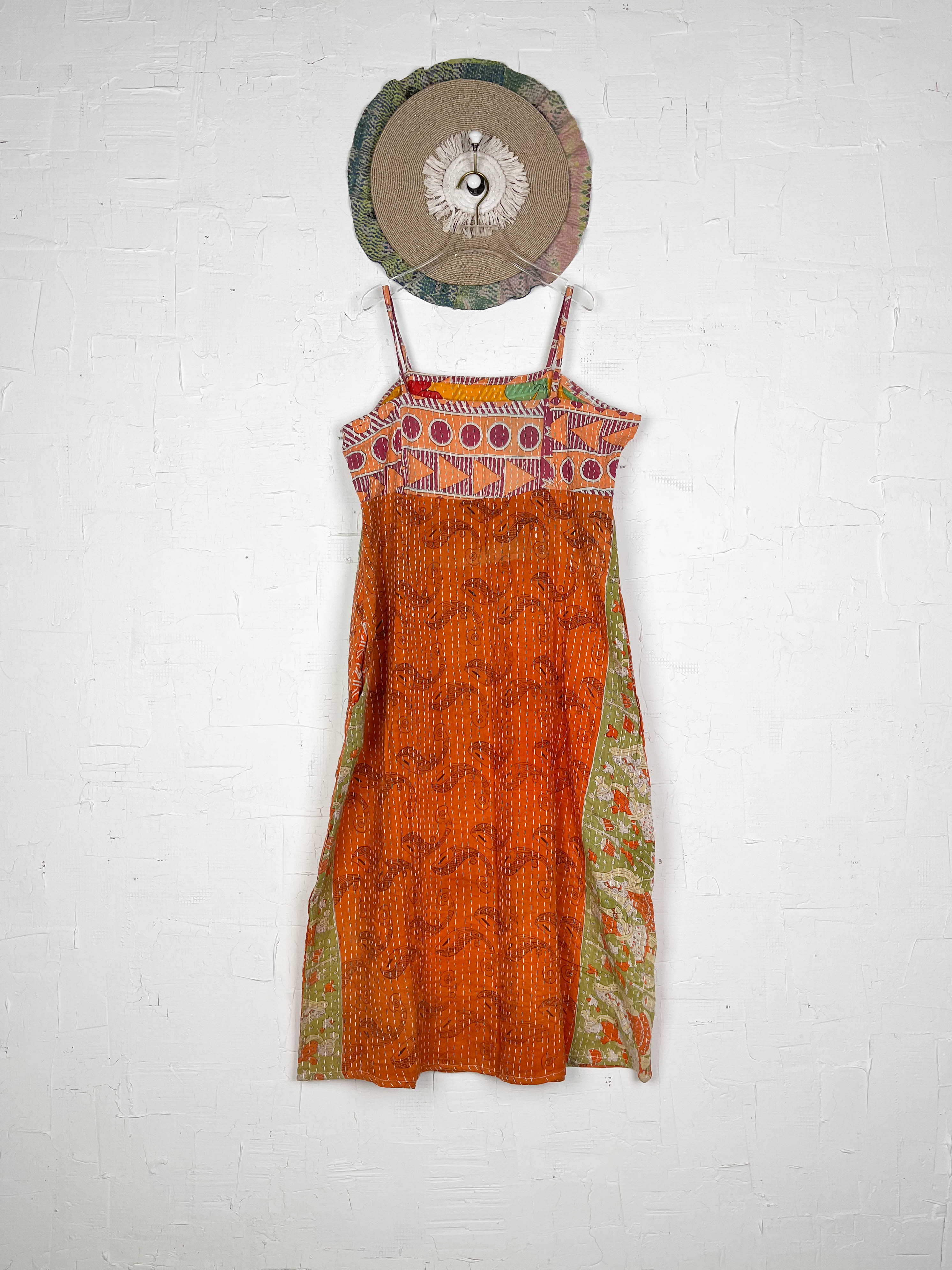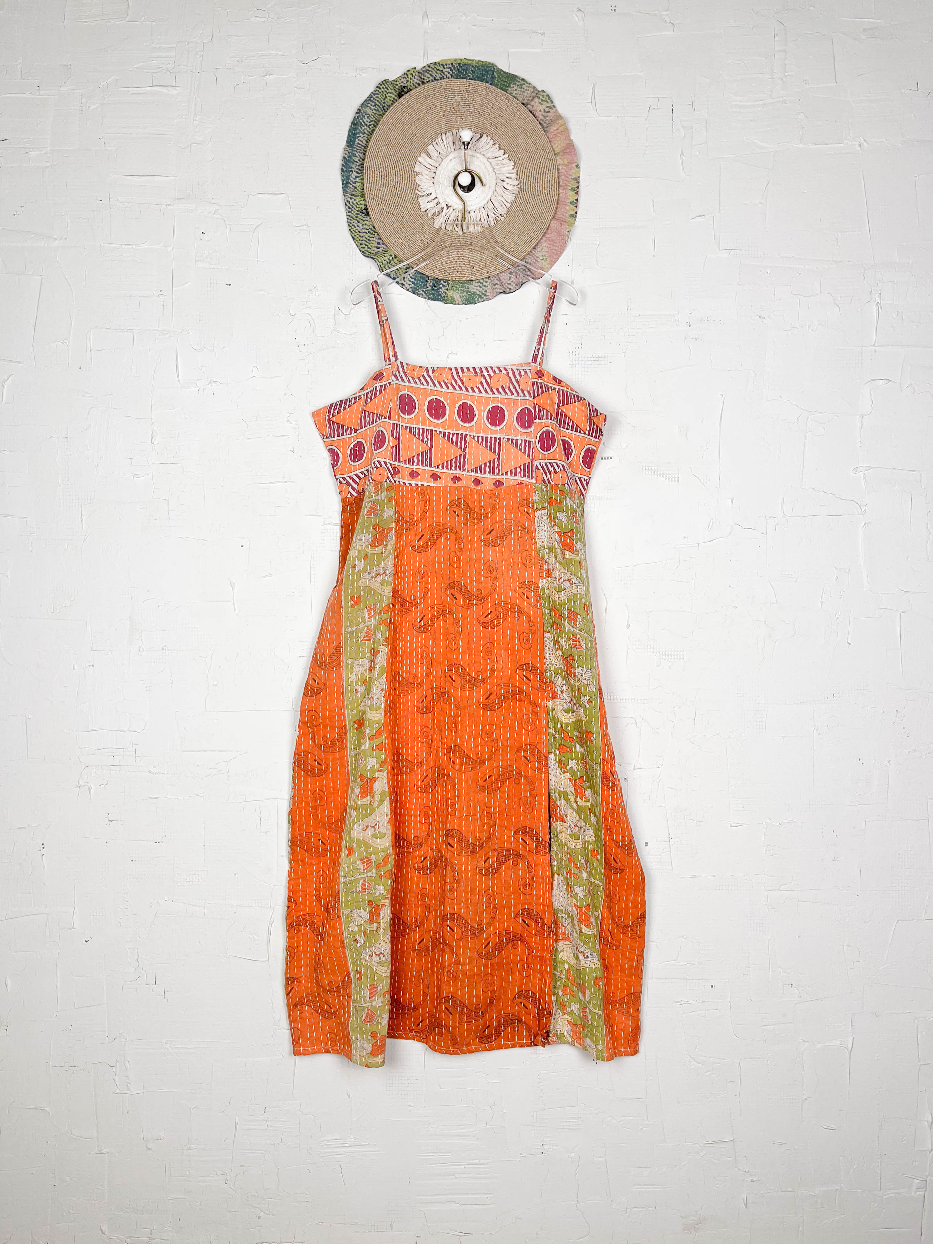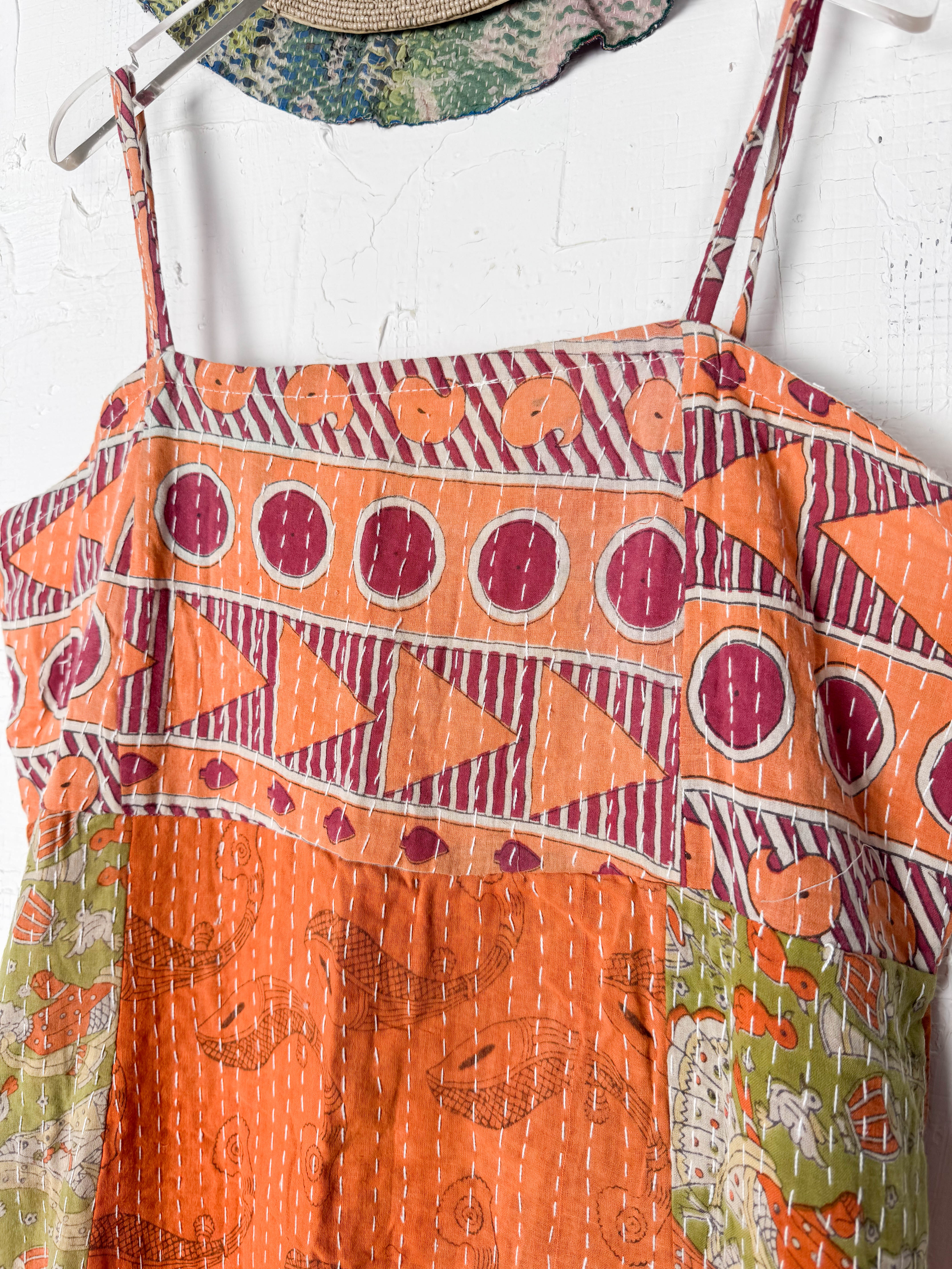 Designed to celebrate your silhouette, this midi-length Kantha dress drapes and flows with graceful movement. Crafted from carefully selected Kantha patchwork, each piece showcases a delightful variation in underlying prints and colours, making yours truly one-of-a-kind