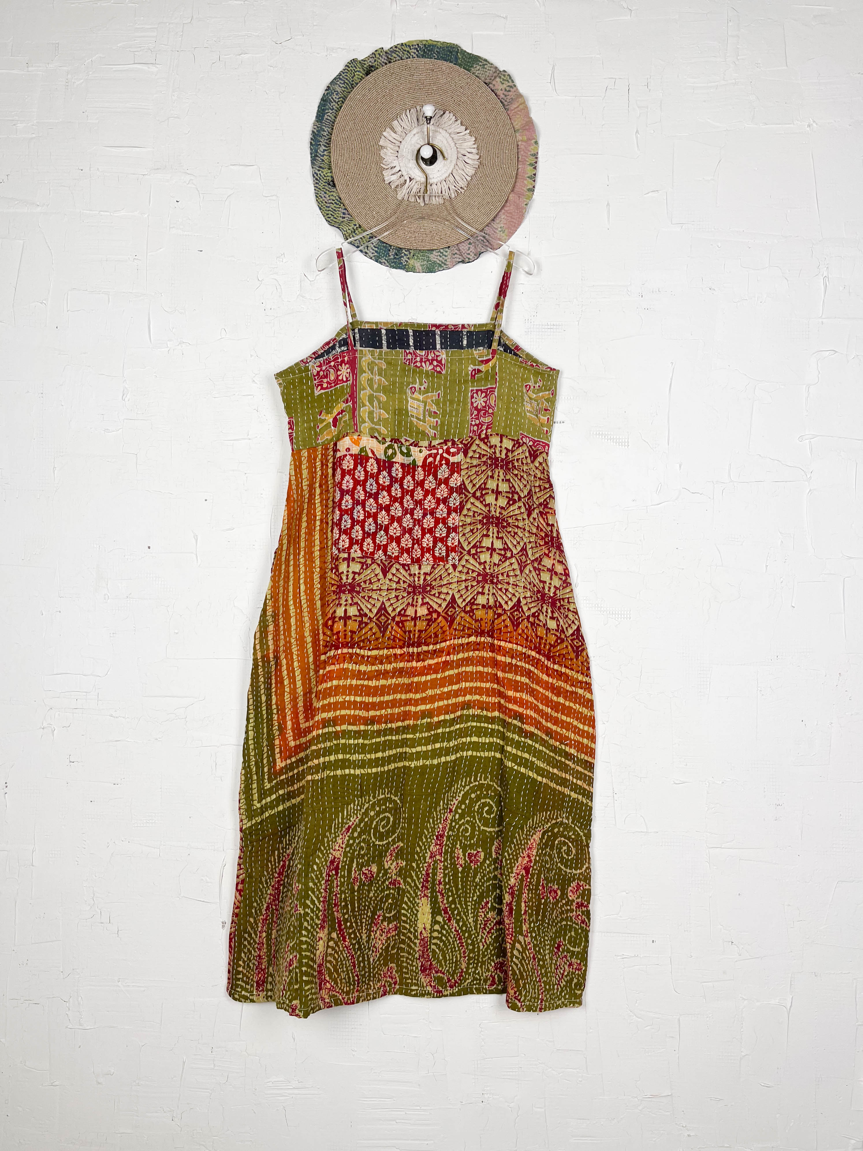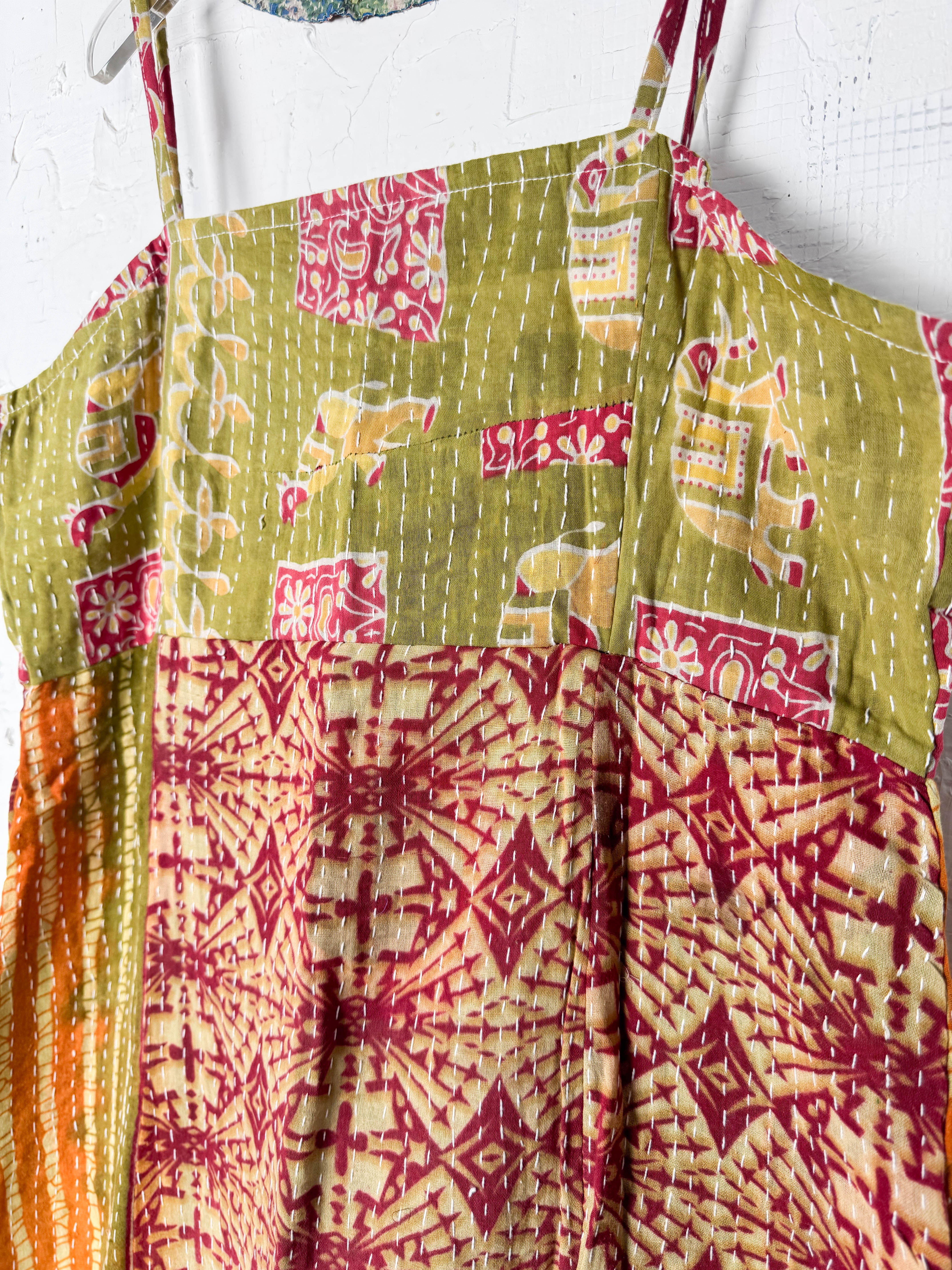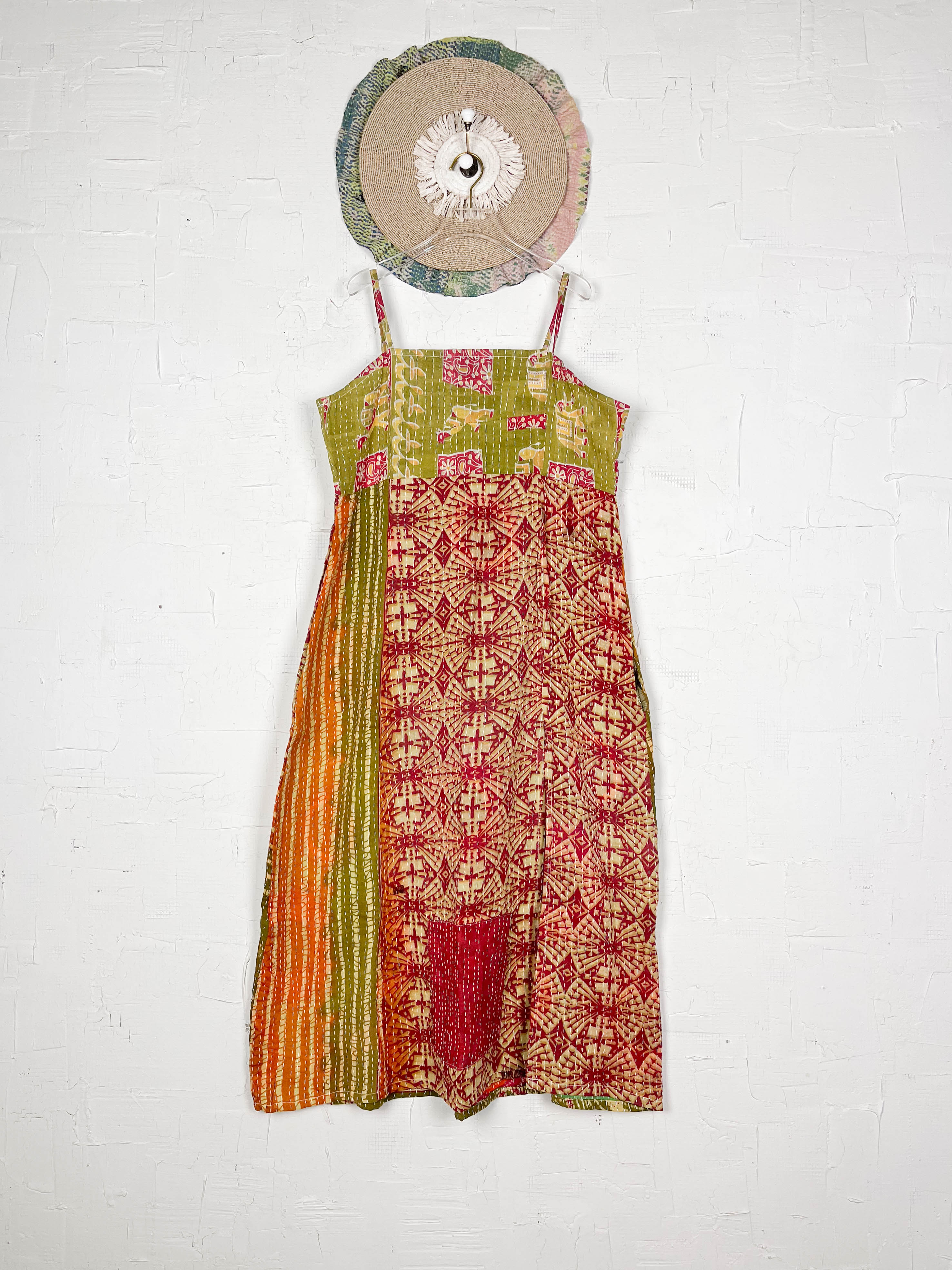 Designed to celebrate your silhouette, this midi-length Kantha dress drapes and flows with graceful movement. Crafted from carefully selected Kantha patchwork, each piece showcases a delightful variation in underlying prints and colours, making yours truly one-of-a-kind